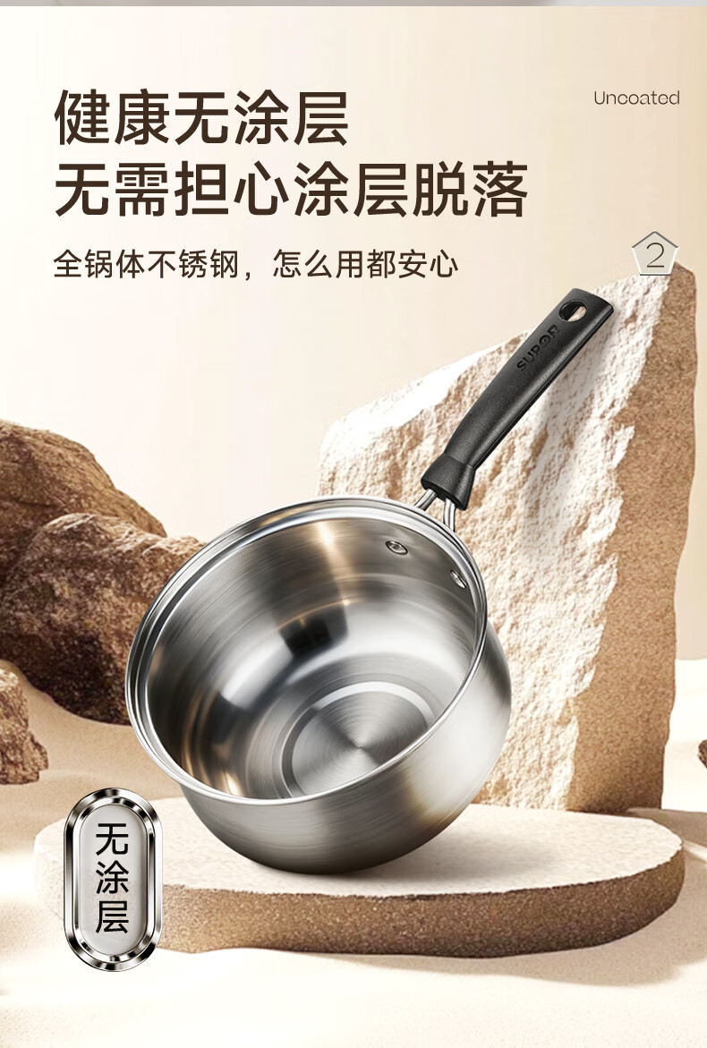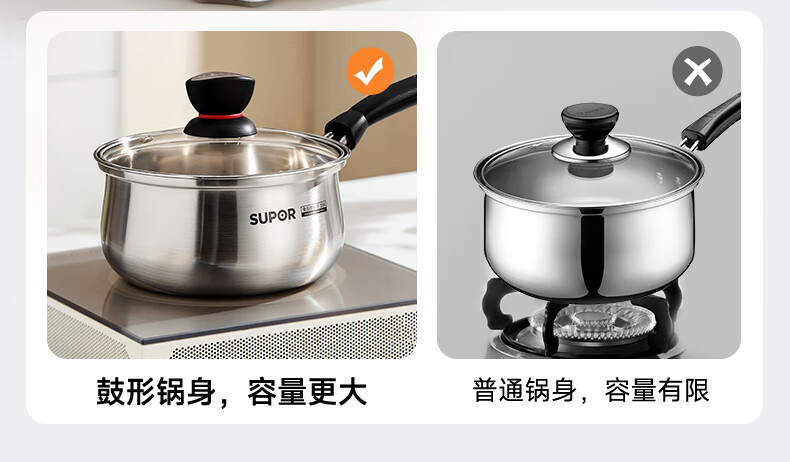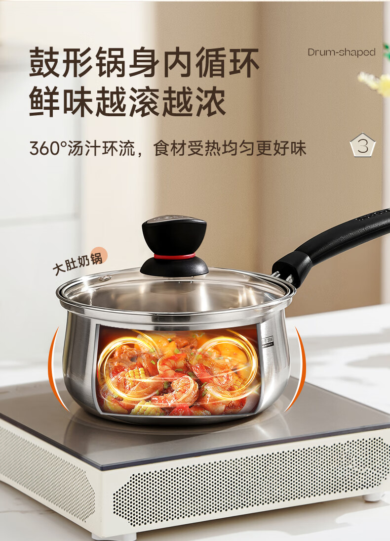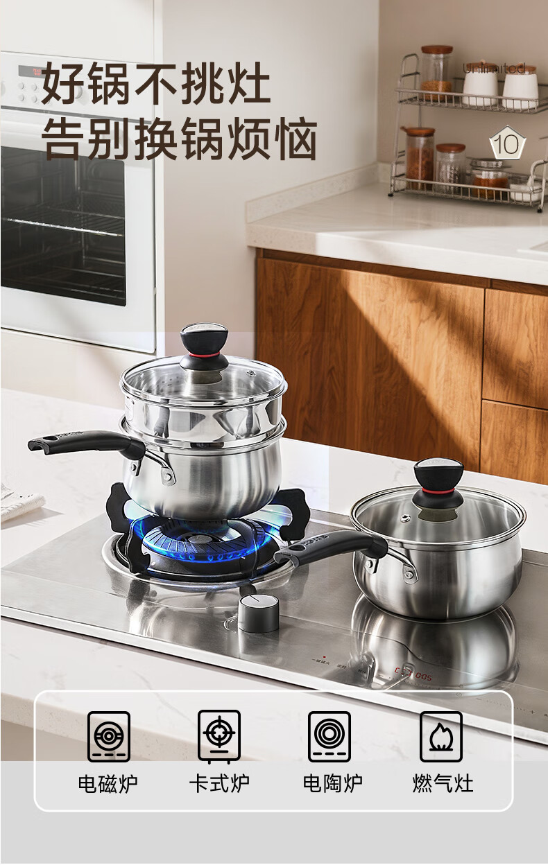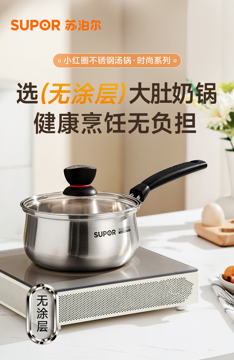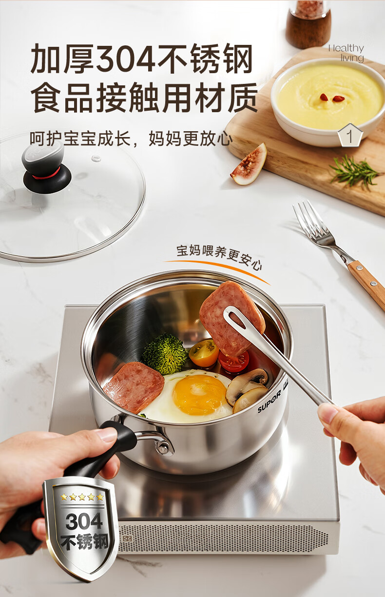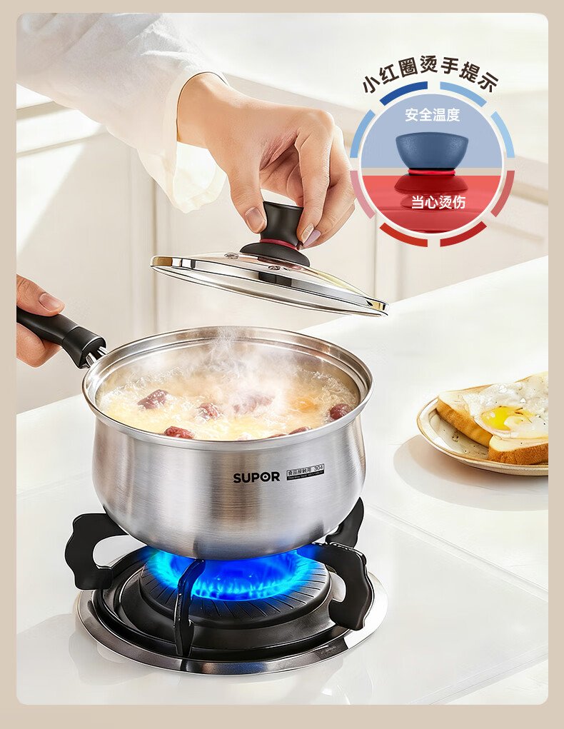 苏泊尔SUPOR小红圈304不锈钢汤锅奶锅煮面锅18cm明火专用ST18H1