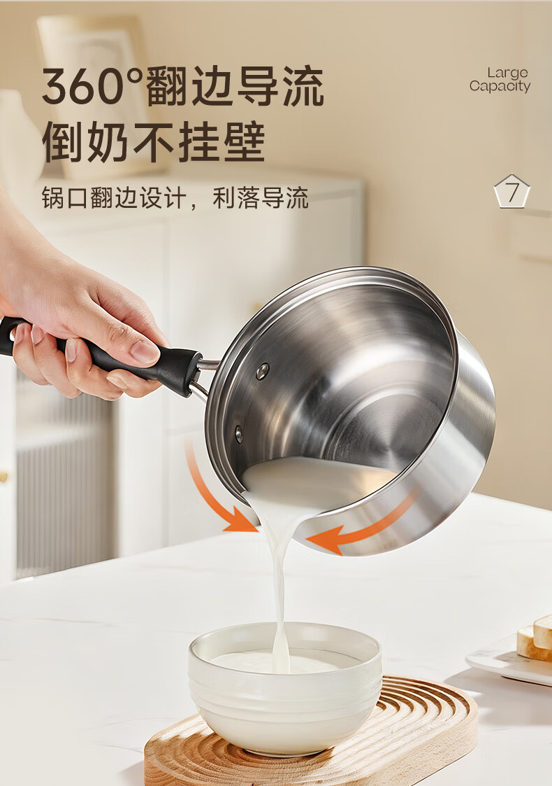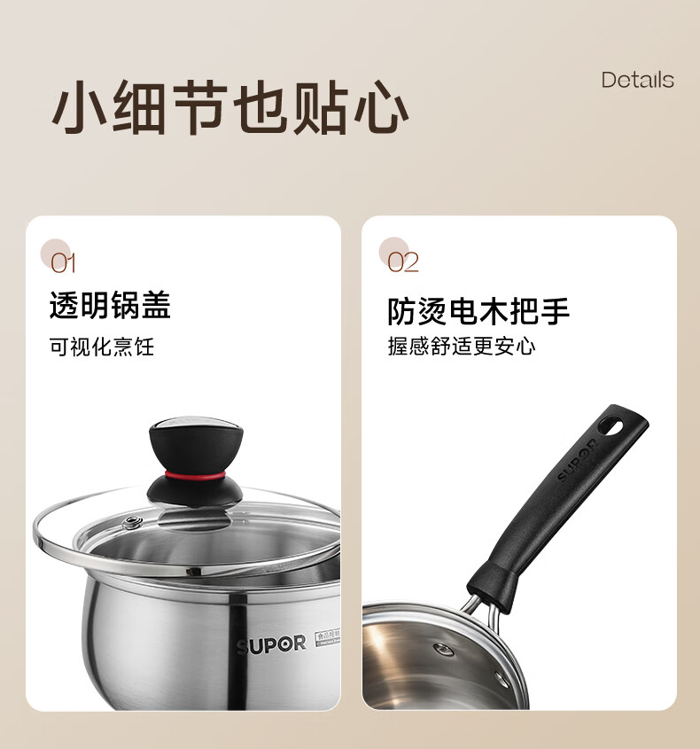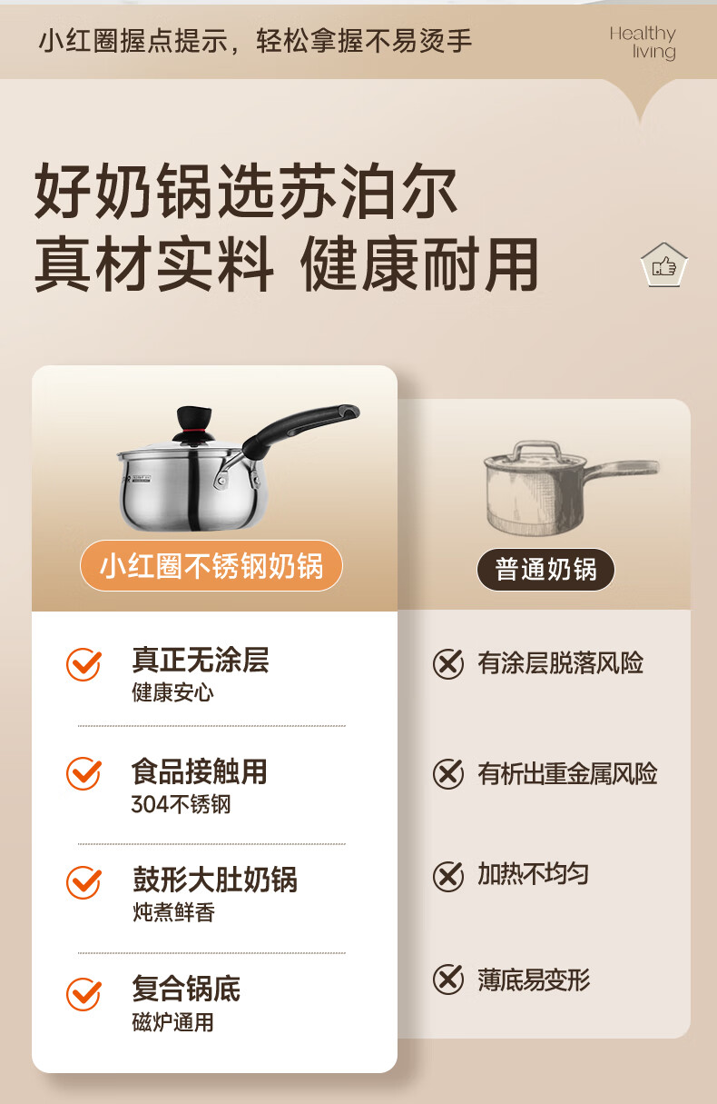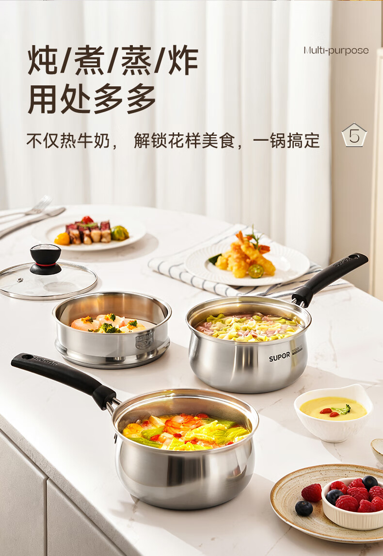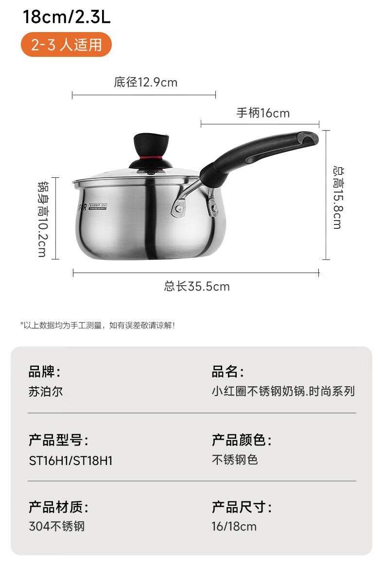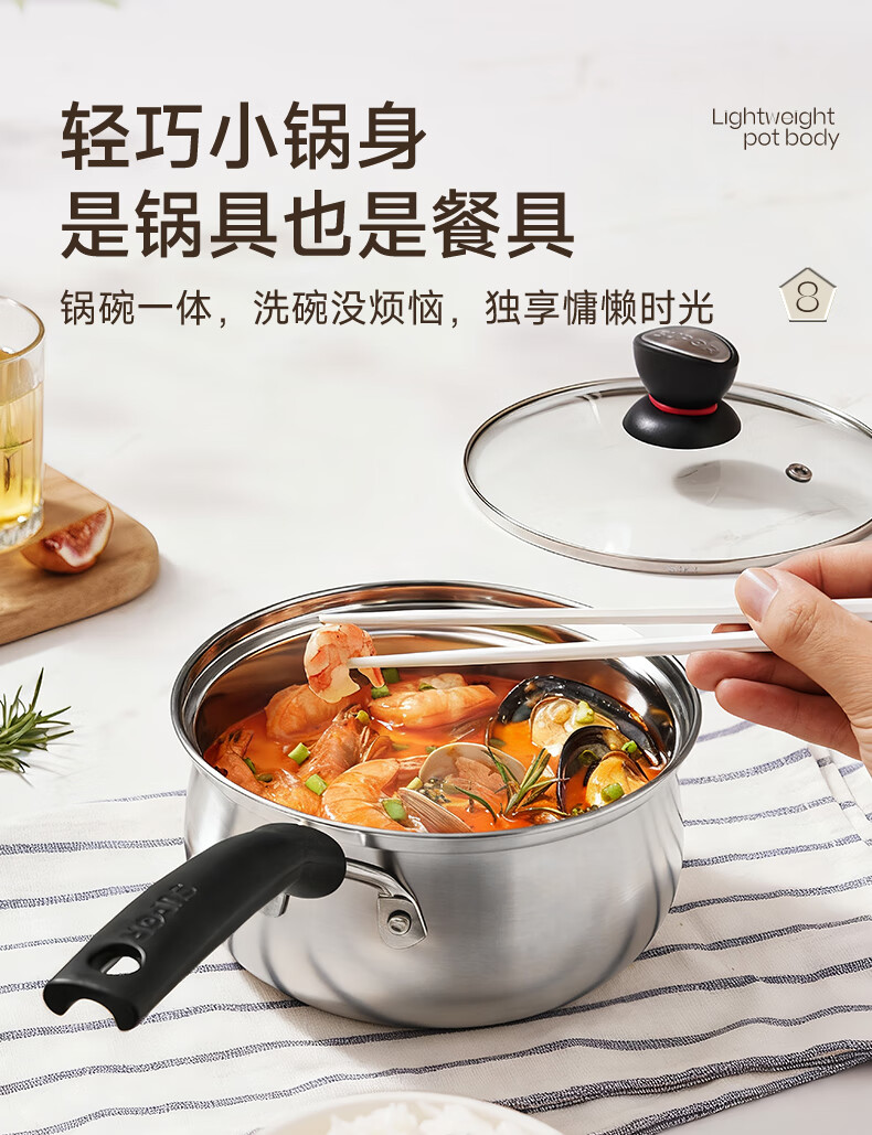 苏泊尔SUPOR小红圈304不锈钢汤锅奶锅煮面锅18cm明火专用ST18H1