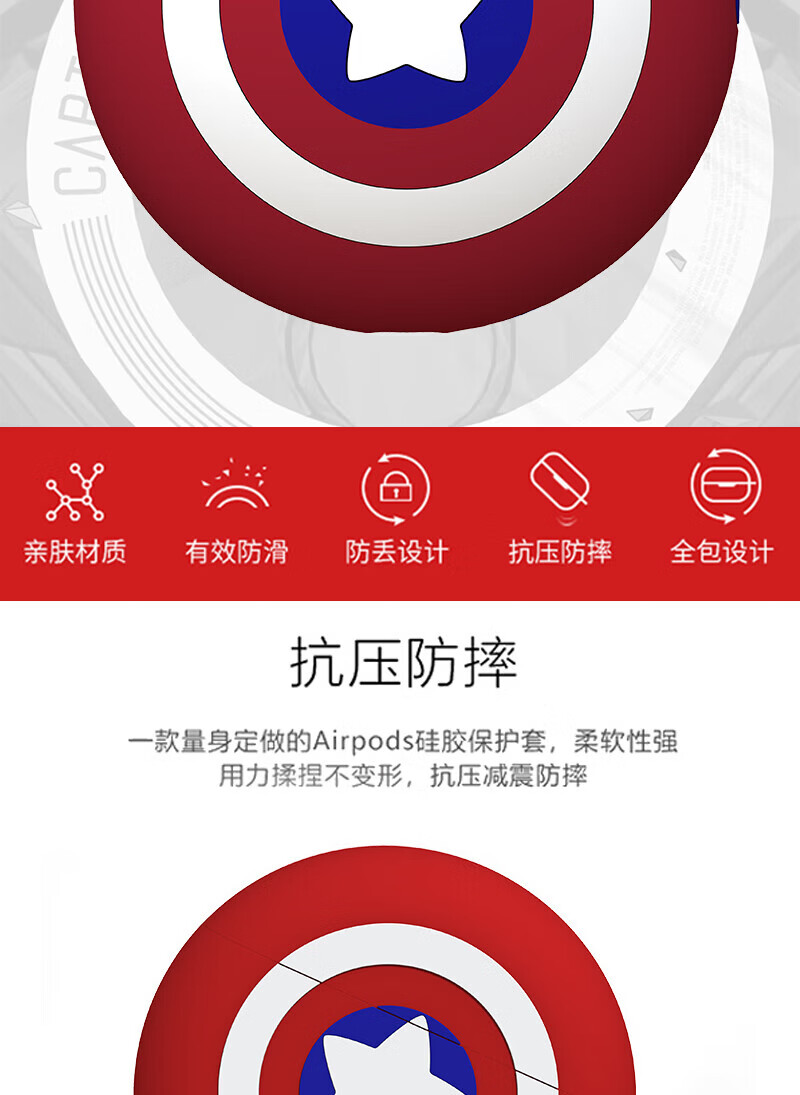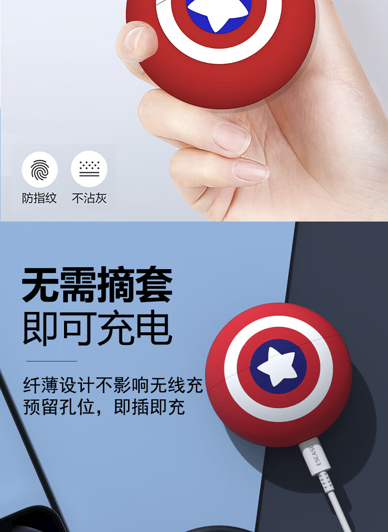 ESCASE适用华为FreeBuds pro保护套无线蓝牙耳机套硅胶不沾灰潮牌创意收纳盒 漫威正版潮流盾牌 华为FreebudsPro【漫威盾牌】