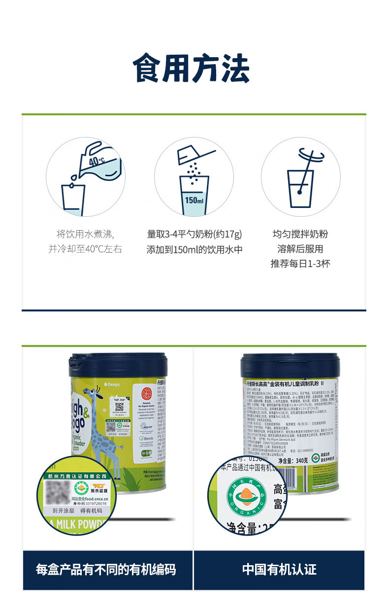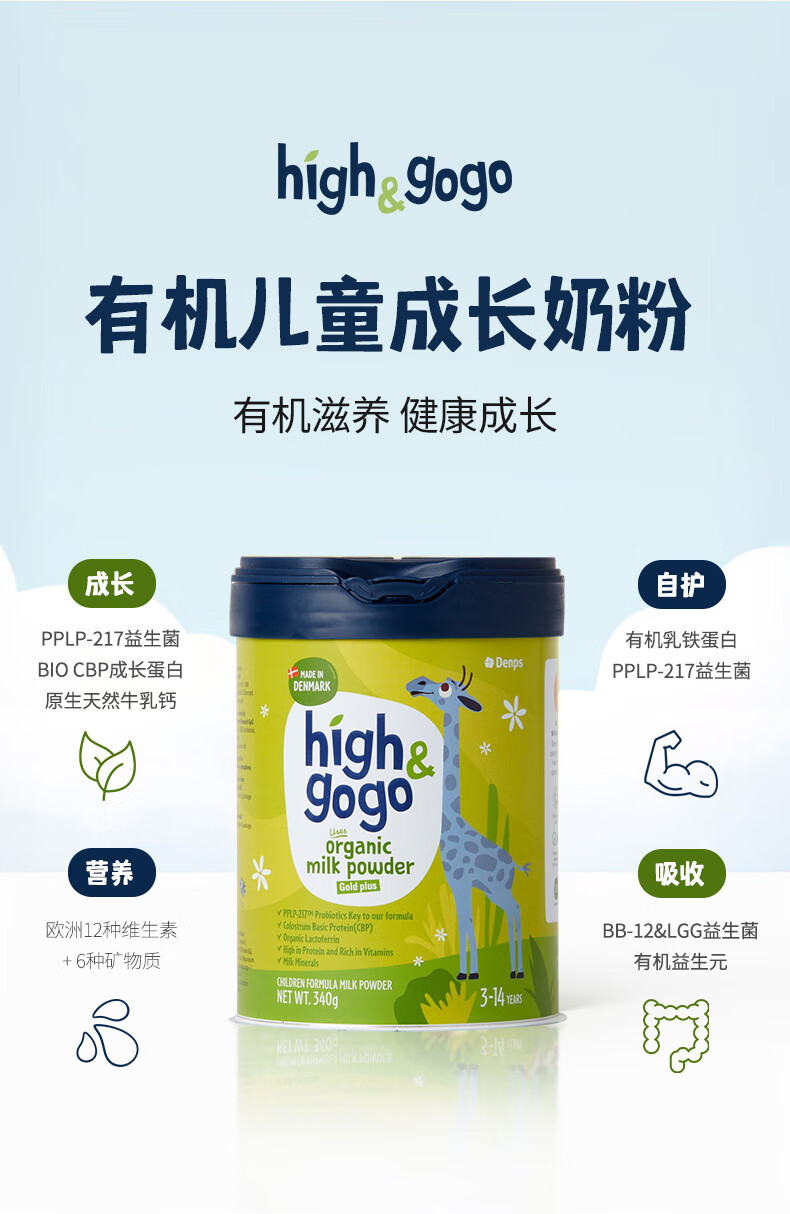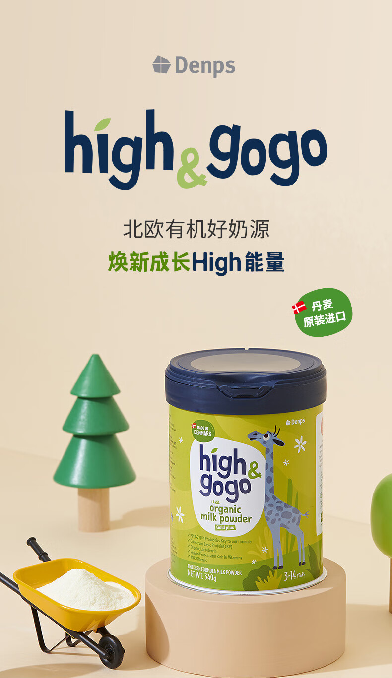DENPS丹普斯长高高有机儿童奶粉 3-14岁高钙奶粉 CBP乳铁蛋白 340g*6罐