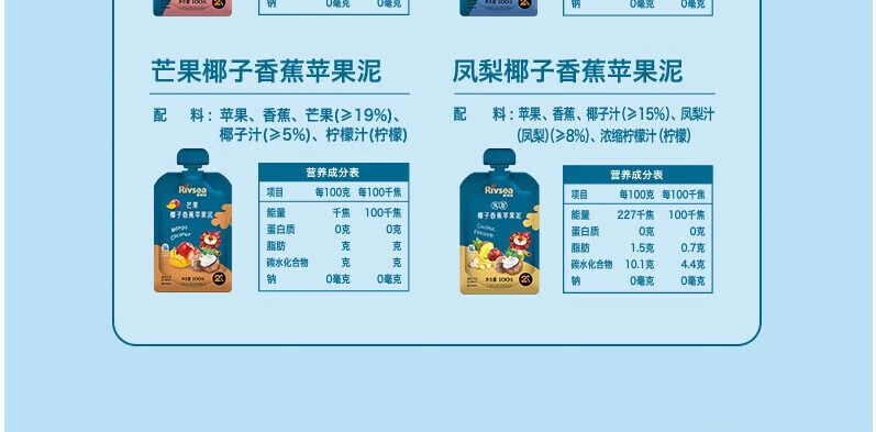 禾泱泱进口果泥 欧洲有机 婴幼儿6个月以上辅食水果泥泥 不添加白砂糖 凤梨椰子香蕉苹果泥 100g*1袋