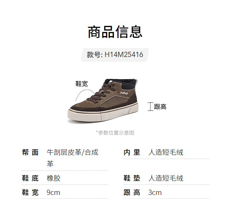 热风(Hotwind)【商场同款】男鞋2025年冬季新款时尚高帮鞋休闲板鞋运动慢跑鞋子 02棕色 38