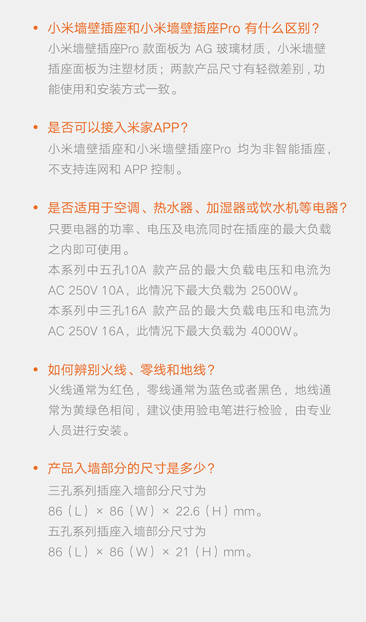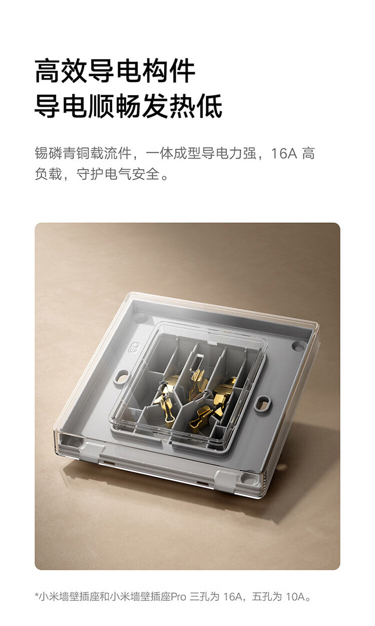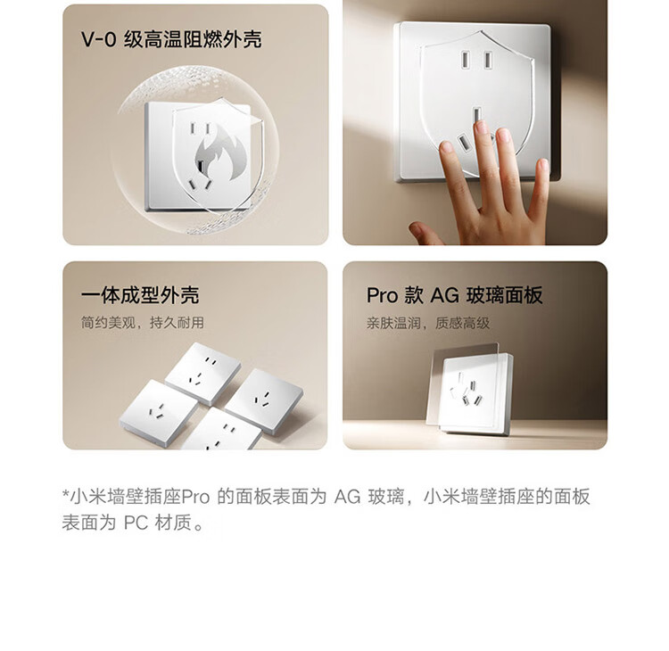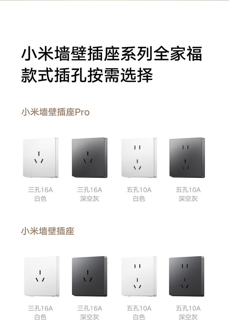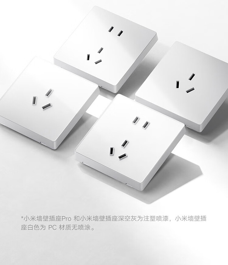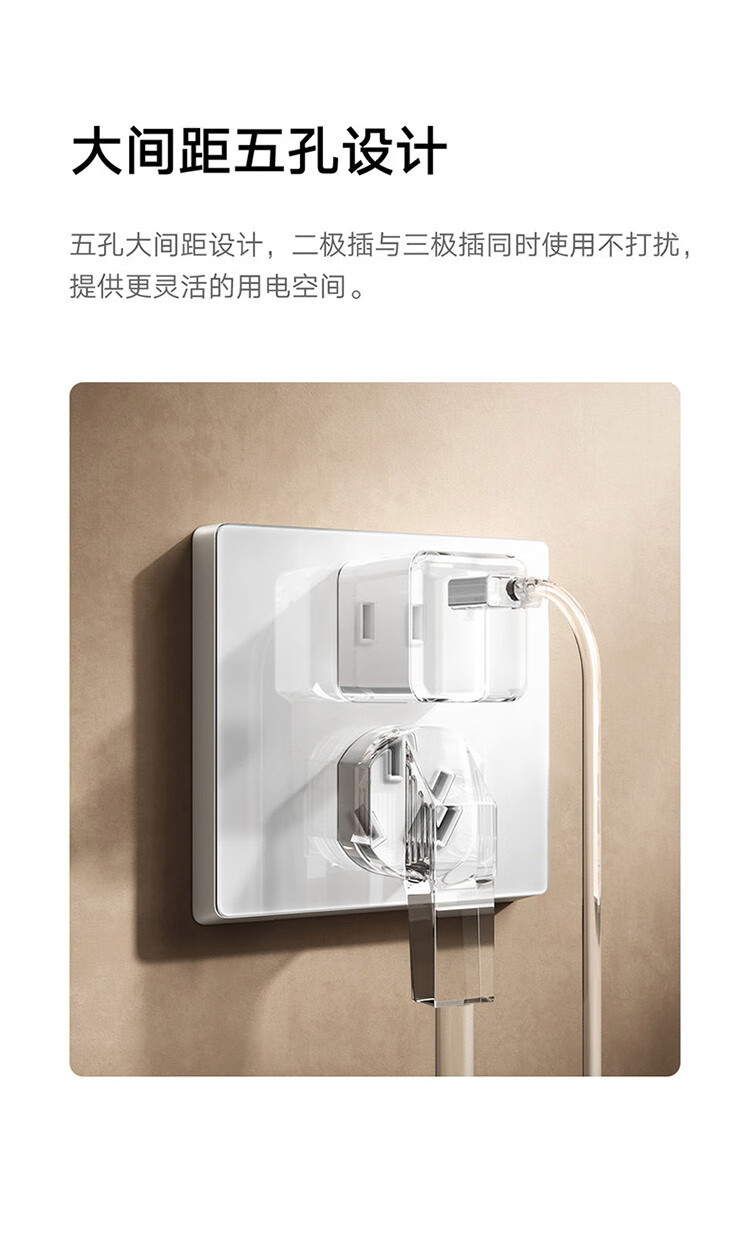 小米墙壁插座三孔16A五孔10A AG玻璃面板高温阻燃无框面板一体成型 小米墙壁插座 五孔10A 白色