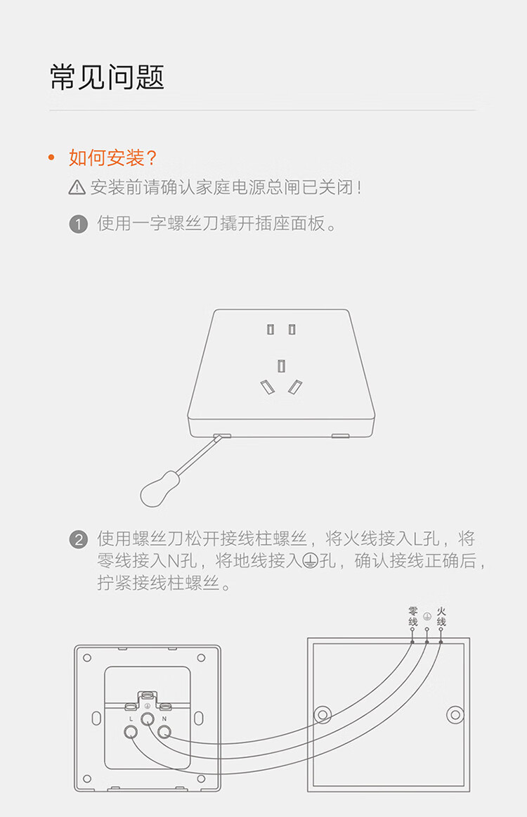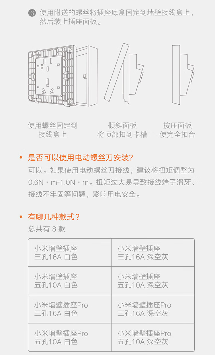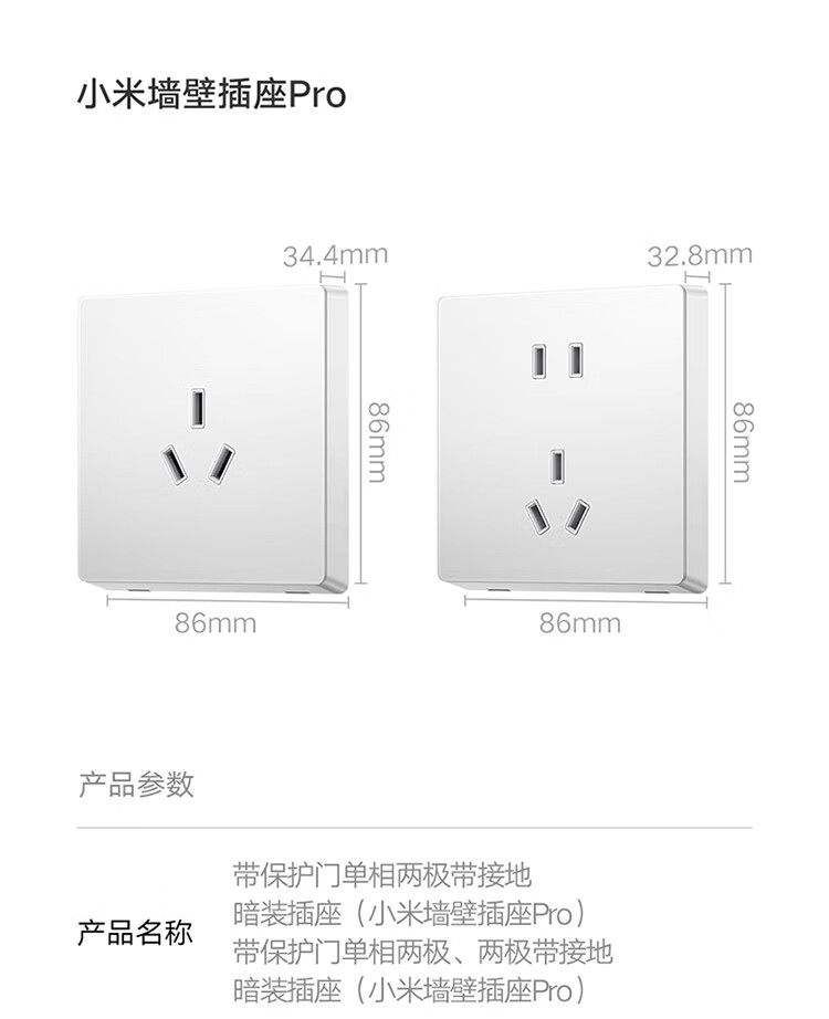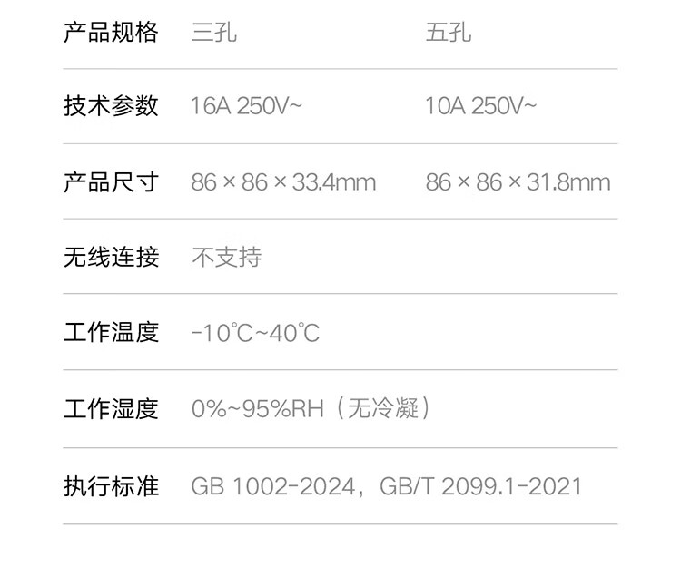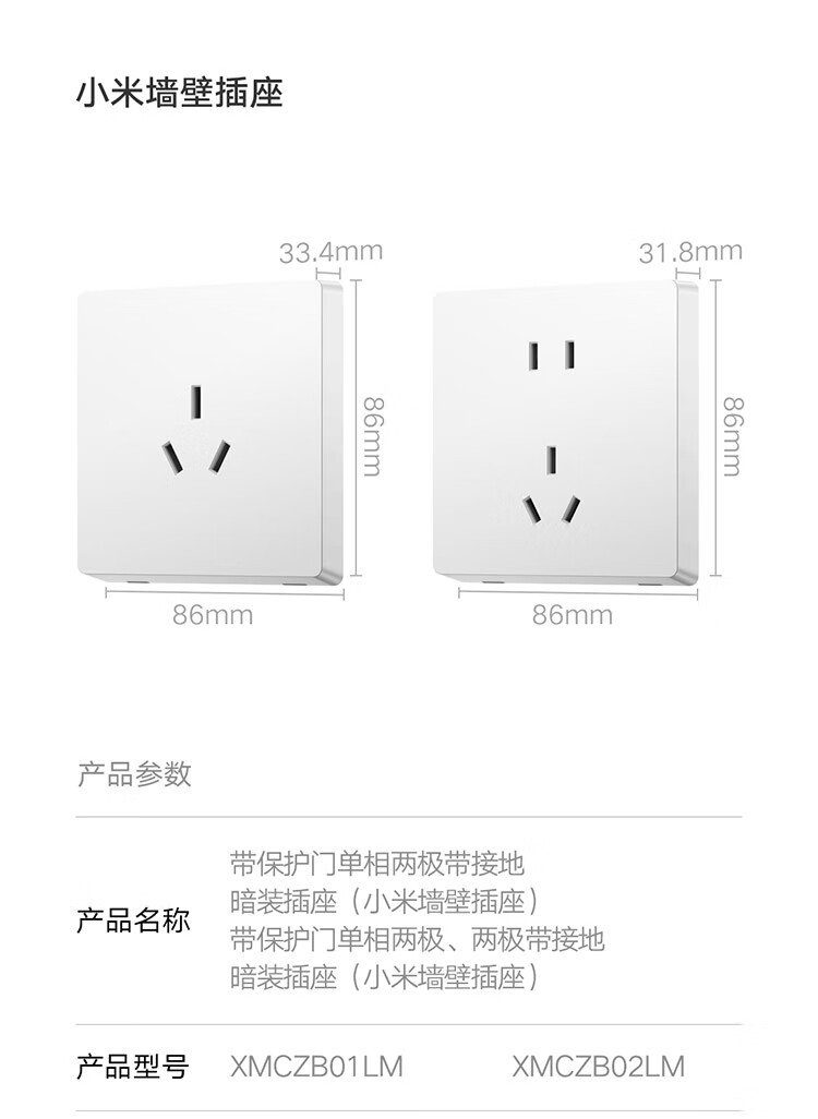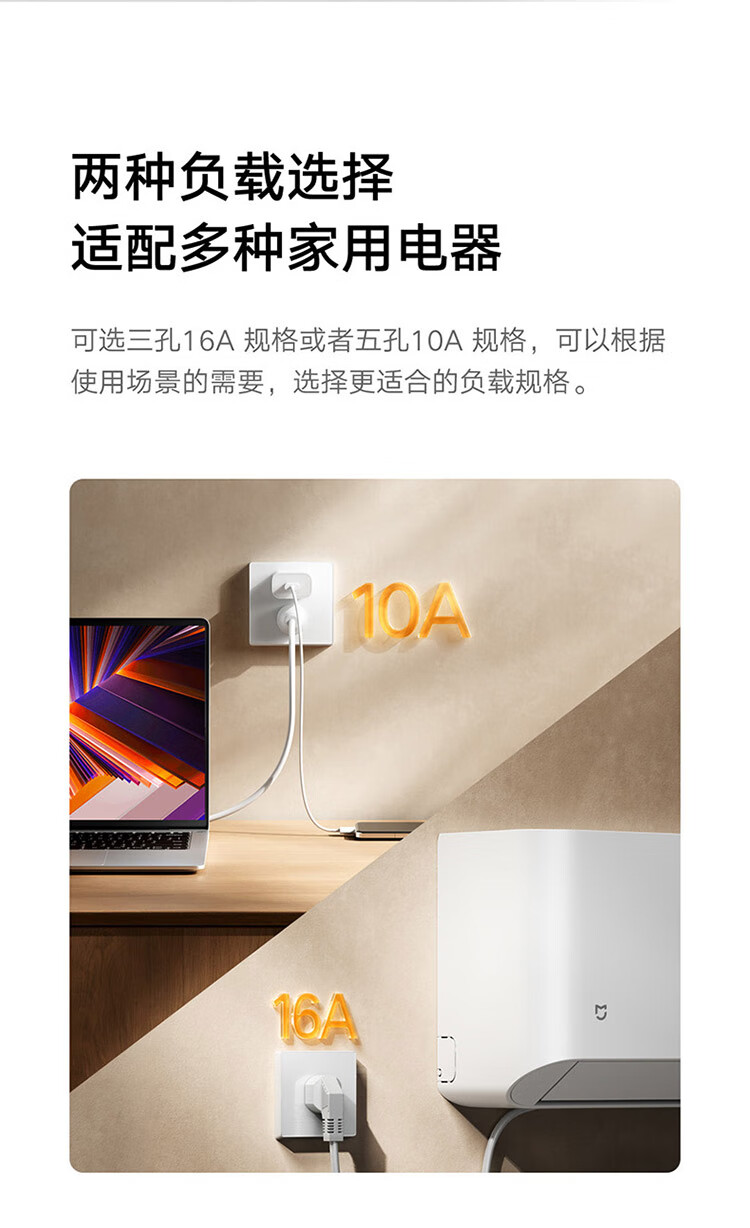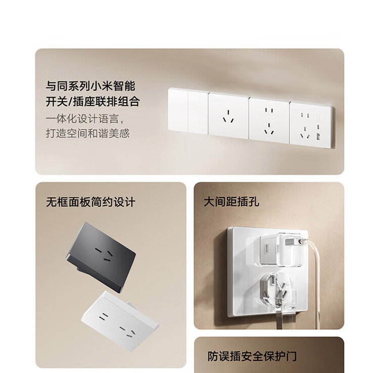 小米墙壁插座三孔16A五孔10A AG玻璃面板高温阻燃无框面板一体成型 小米墙壁插座 五孔10A 白色