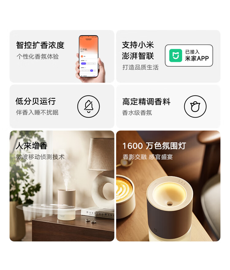 米家智能香氛机套装接入米家自动喷香室内卫生间香氛香薰米灰色