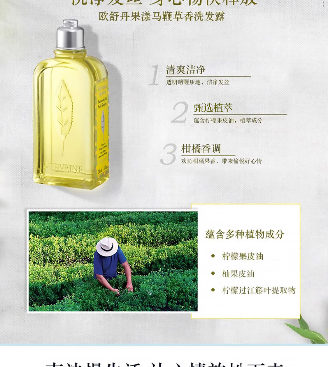 欧舒丹果漾马鞭草洗发水250ml礼盒装洗发露清洁发丝礼物蓬松滋养丰盈