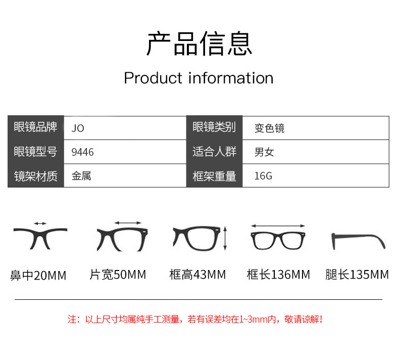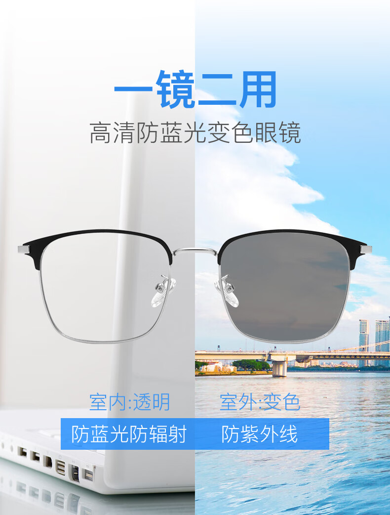 Jimmy Orange防蓝光辐射眼镜男女款办公变色眉形游戏护目户外平光眼镜框架