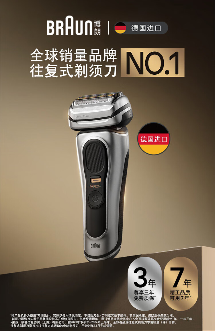 博朗9系巅峰版2.0整机德国进口往复式电动剃须刀刮胡刀送老公男朋友生日礼物 男
