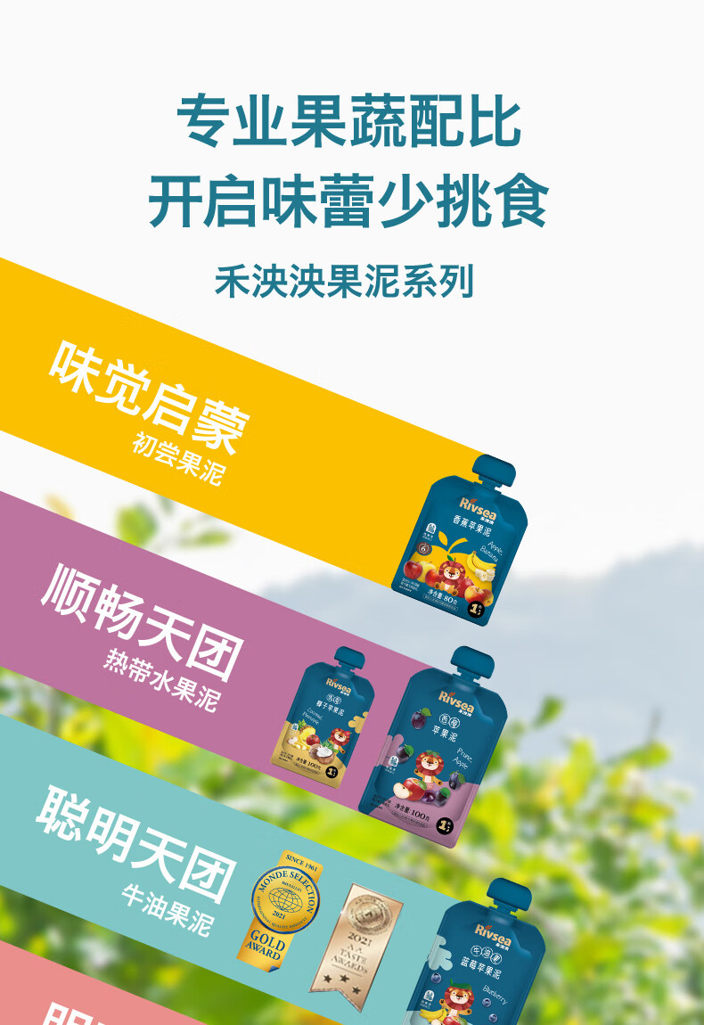 禾泱泱婴幼儿覆盆子蓝莓草莓香蕉苹果泥100g 进口宝宝果泥6月+