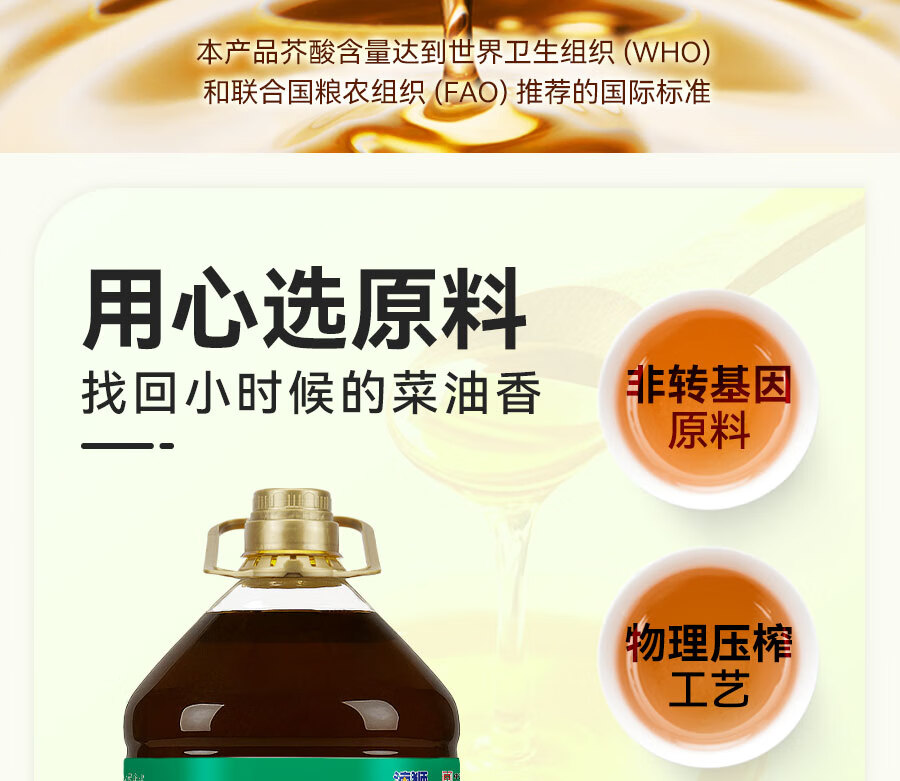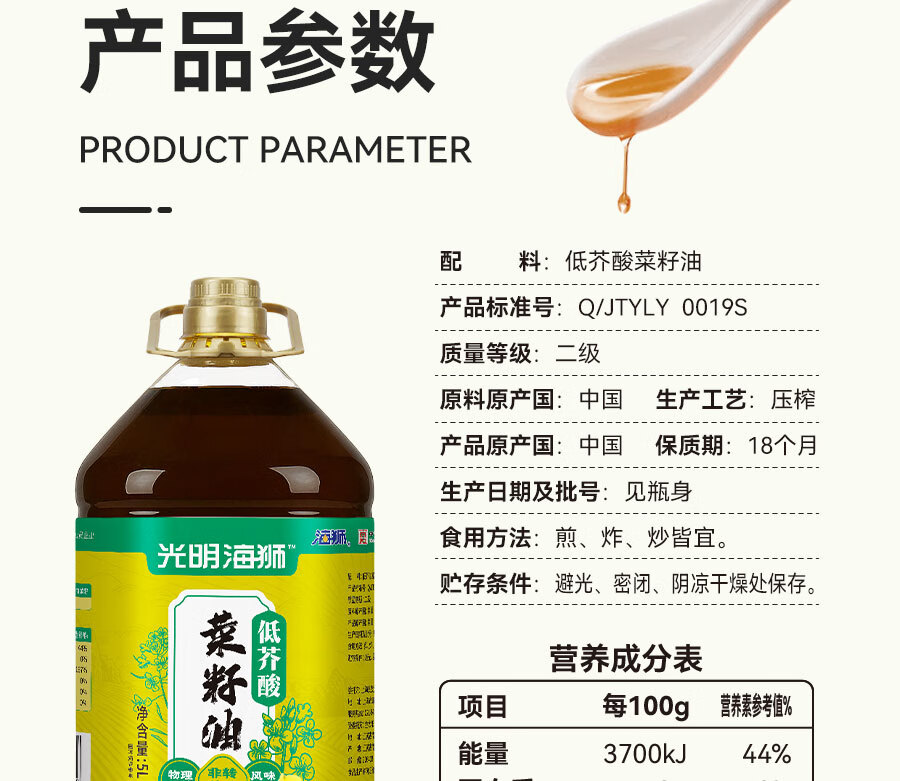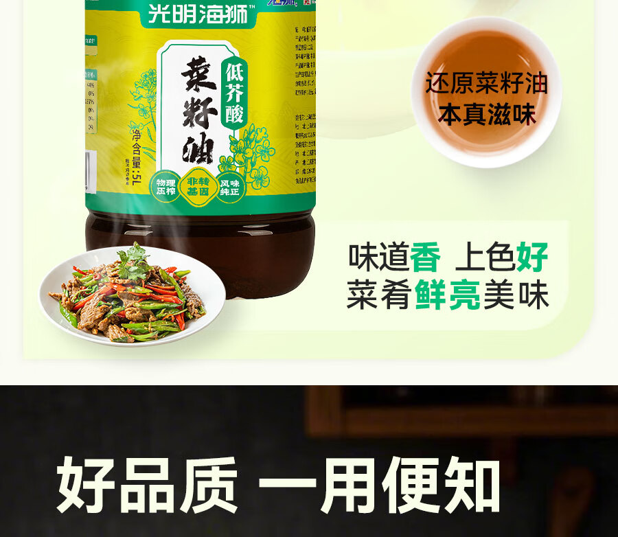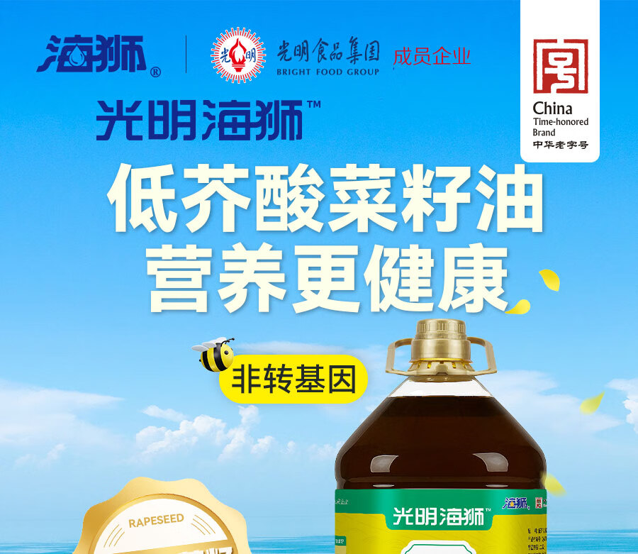 海狮菜籽油 低芥酸特香食用油5L 非转基因物理压榨