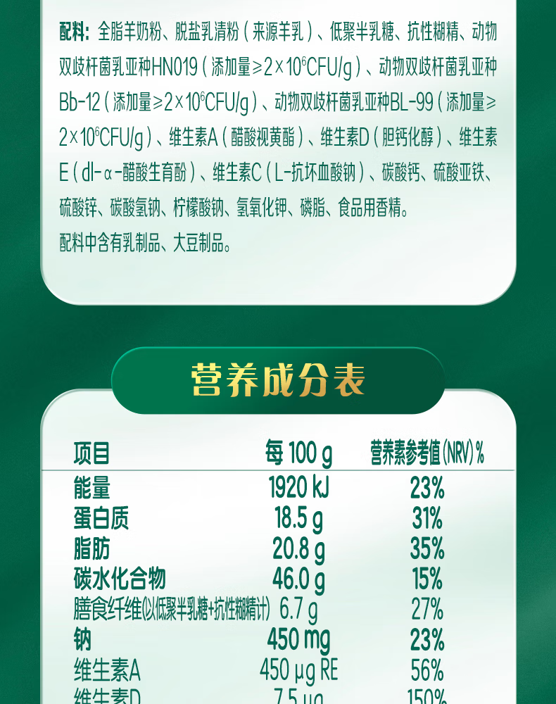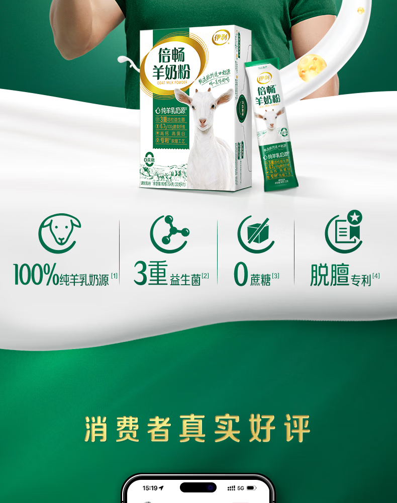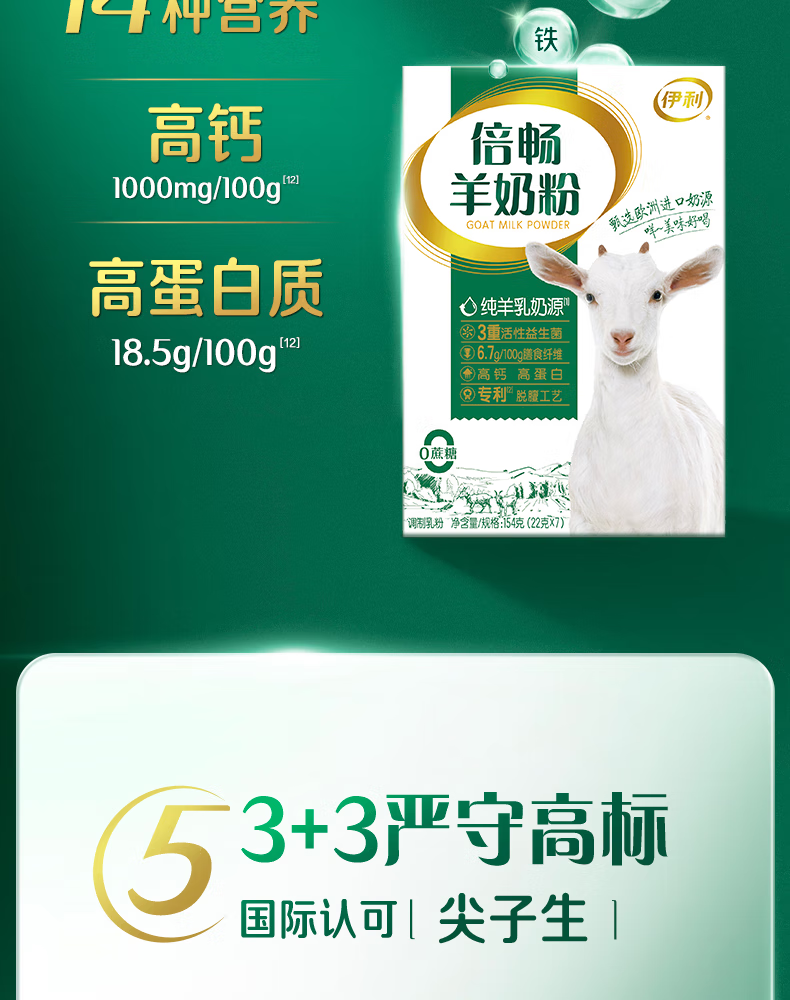 伊利倍畅羊奶粉154g盒装高钙高蛋白成人学生女士老人全家营养独立包装 154g盒装
