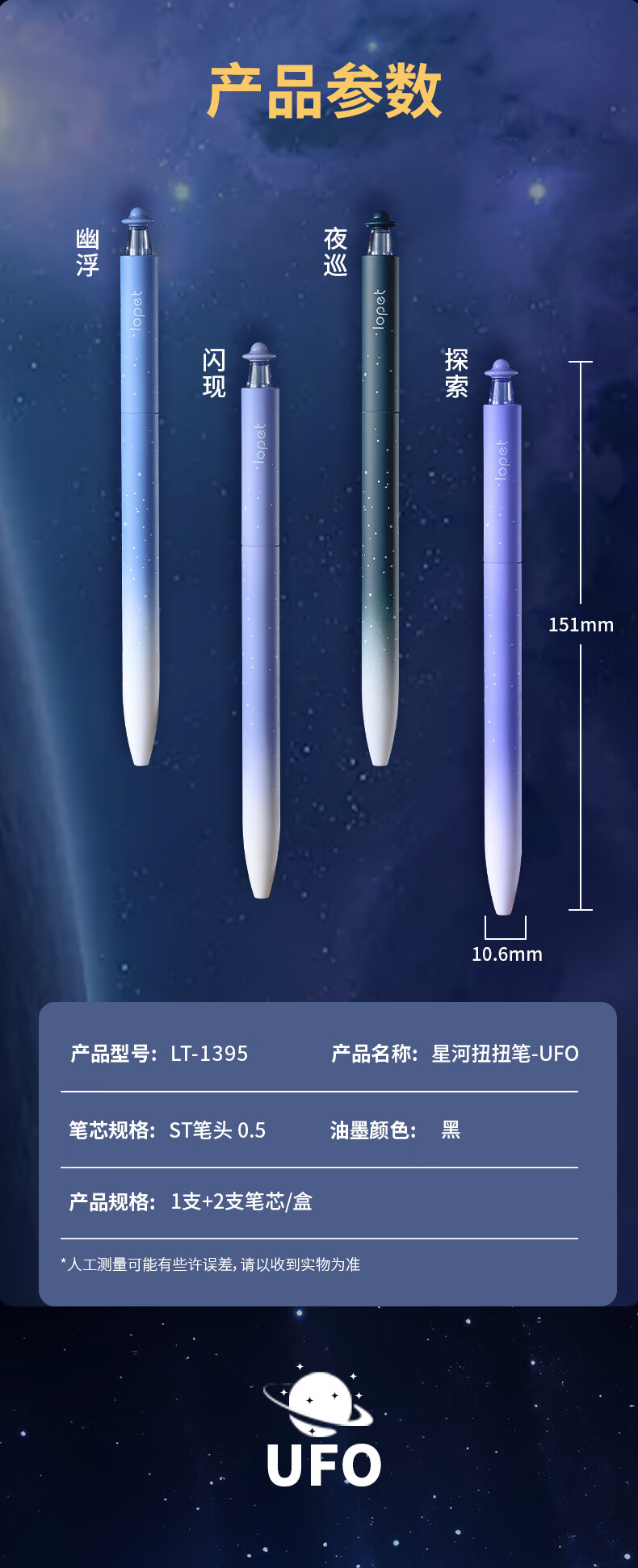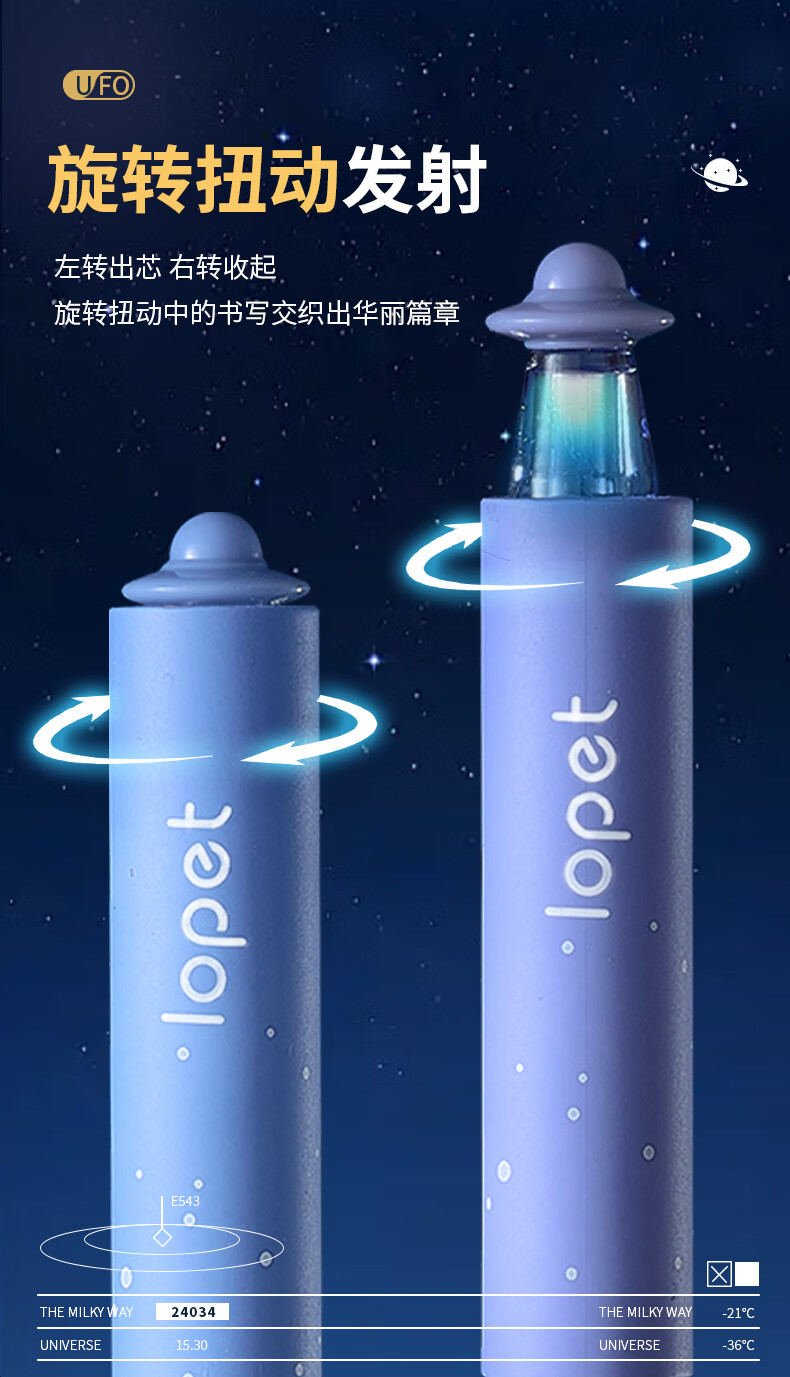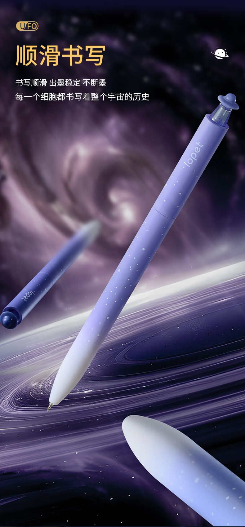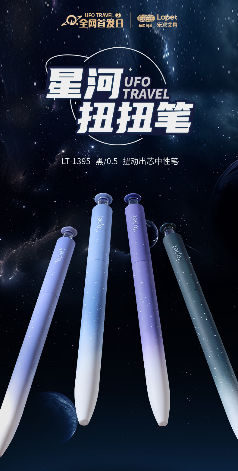 lopet UFO星河中性笔速干高颜值刷题笔学生考试专用0.5黑笔初中生顺滑黑色水笔签字笔圆珠笔LT-1395【探索】