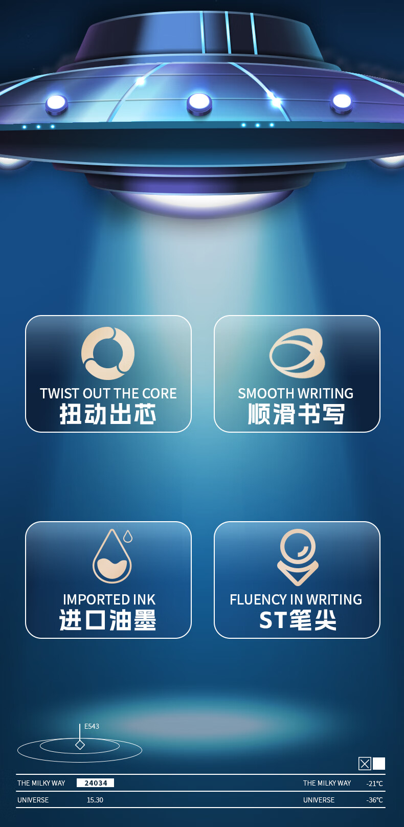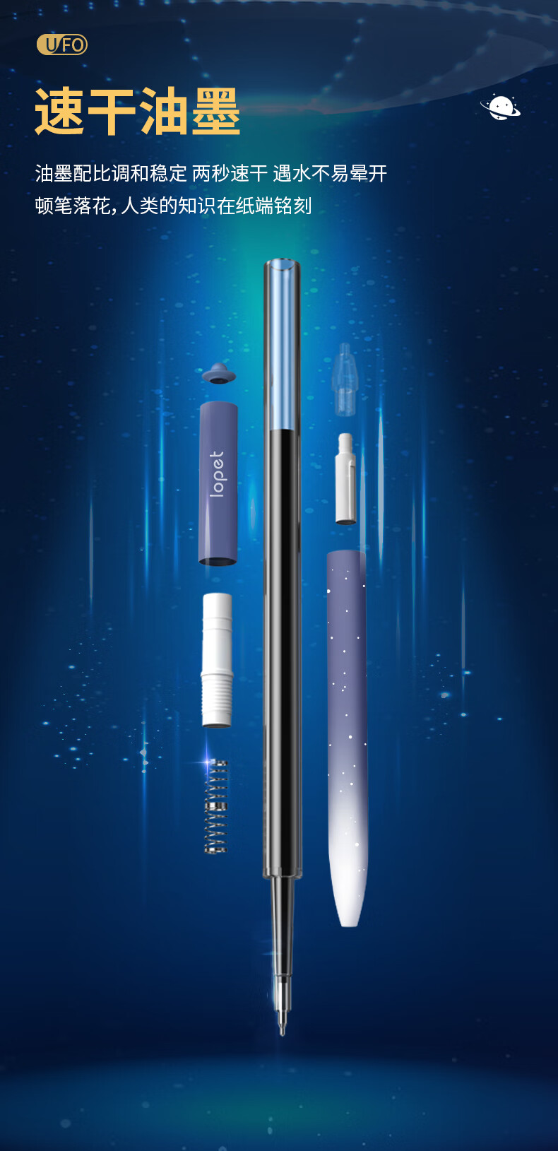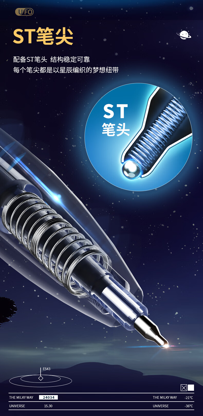 lopet UFO星河中性笔速干高颜值刷题笔学生考试专用0.5黑笔初中生顺滑黑色水笔签字笔圆珠笔LT-1395【探索】