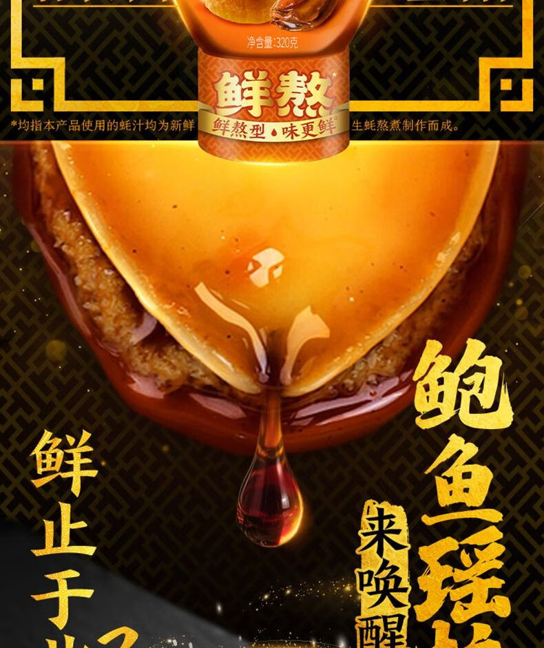 李锦记 鲍鱼瑶柱蚝油320g 奢享海味 三重鲜香 丰润醇厚 鲜熬型 蘸拌炖