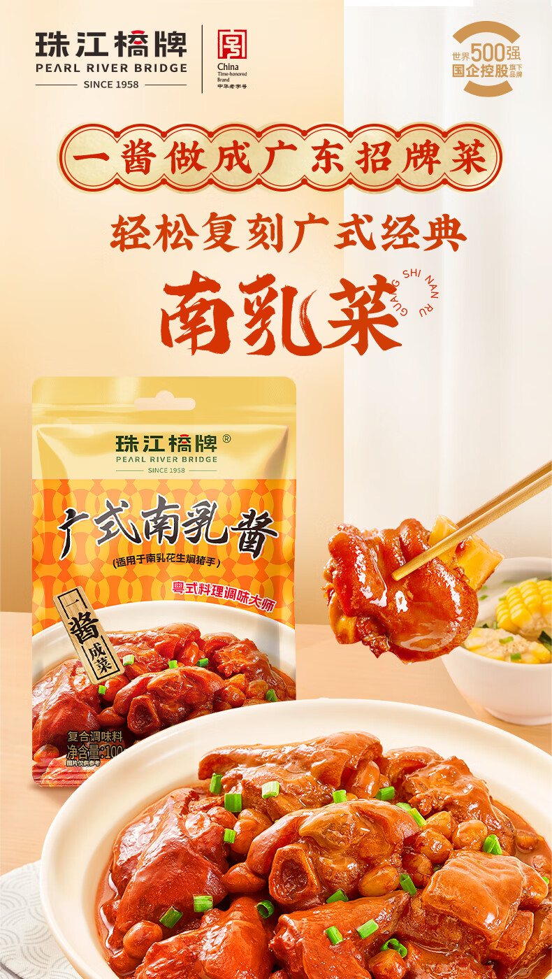 珠江桥牌广东南乳300g 南乳汁 红腐乳 南乳猪手红烧肉东坡肉调味 火锅蘸料 【店长推荐】广东南乳300g*2瓶