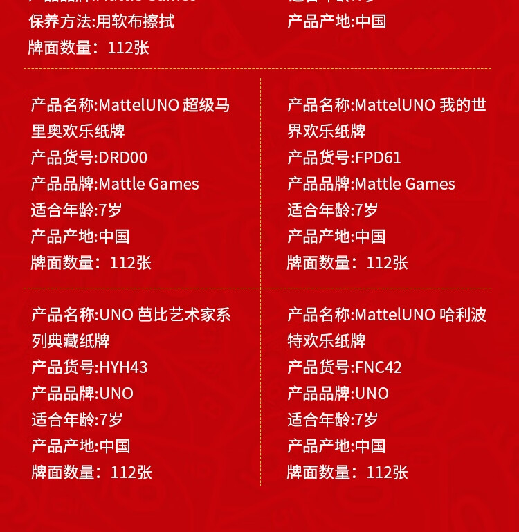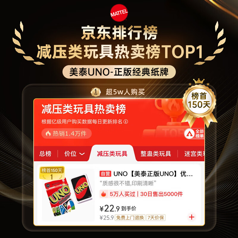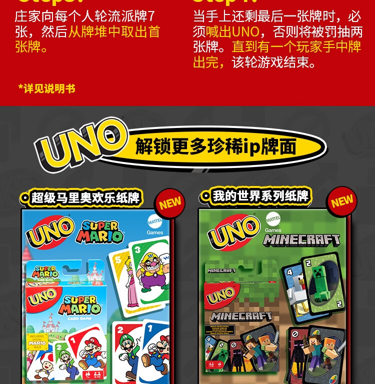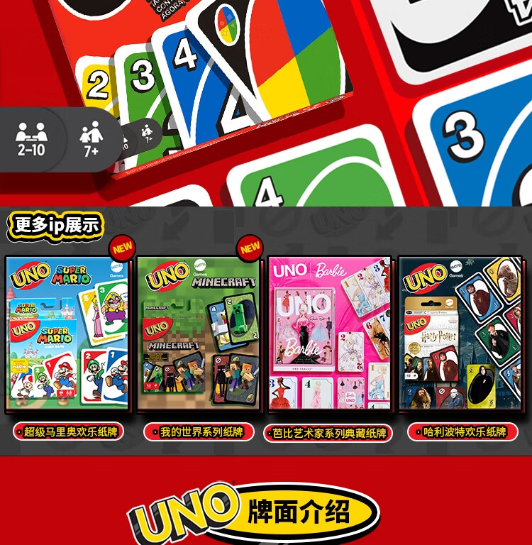 UNO【美泰正版UNO】优诺生日礼物聚会玩具多人正版互动扑克牌W2085