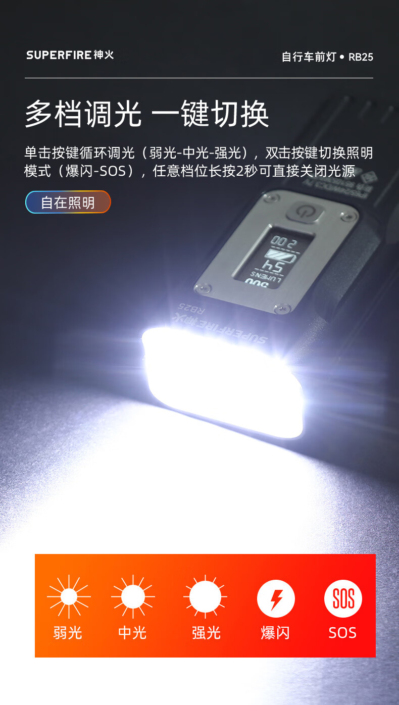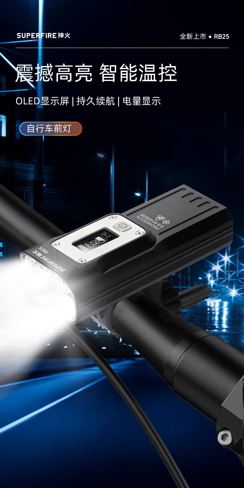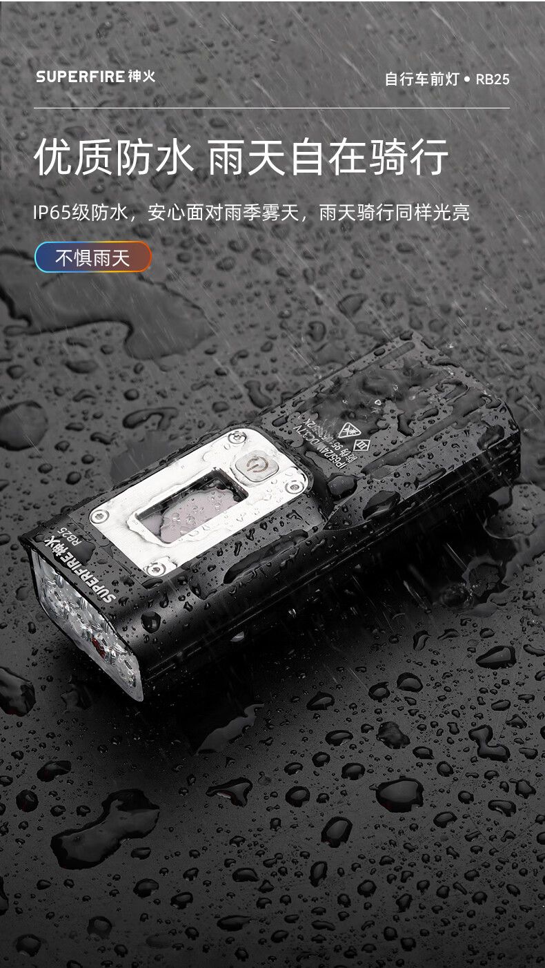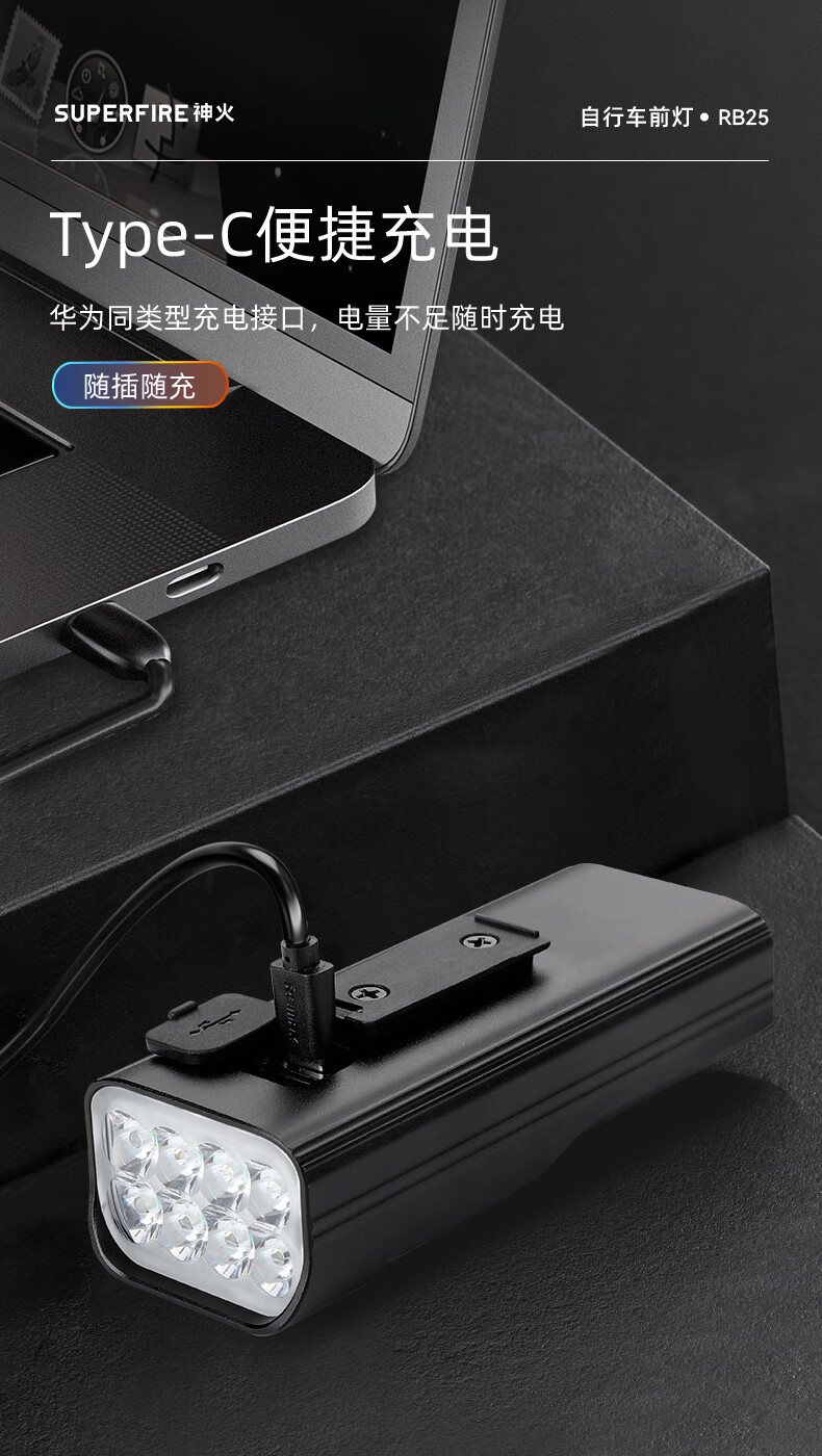 神火(SupFire)RB25自行车灯前灯充电强光手电筒骑行装备单车夜骑配件灯山地车灯
