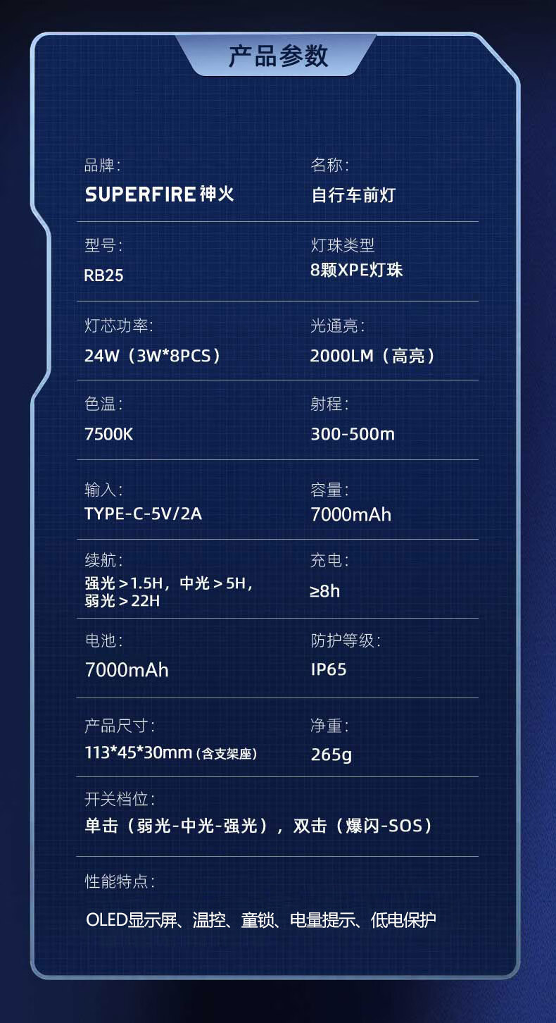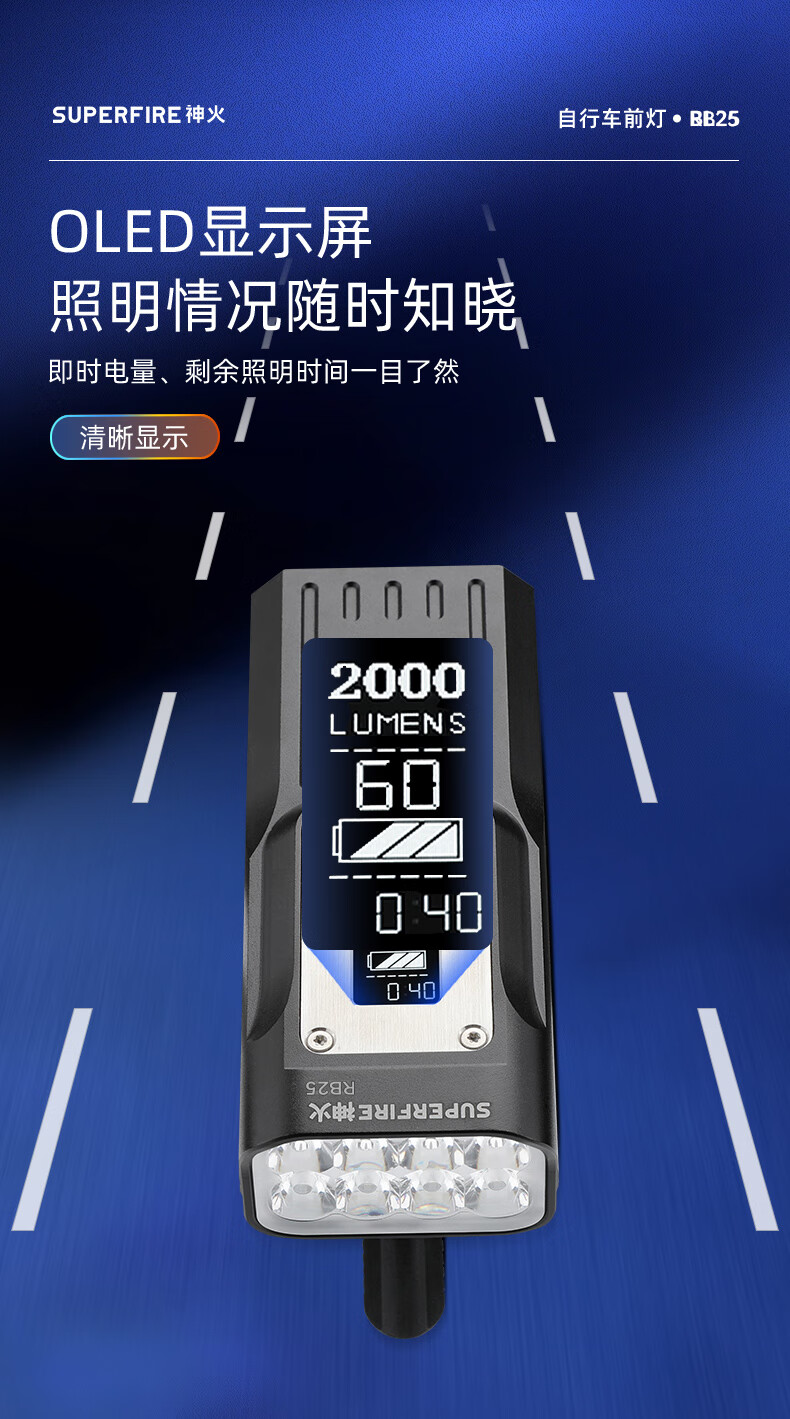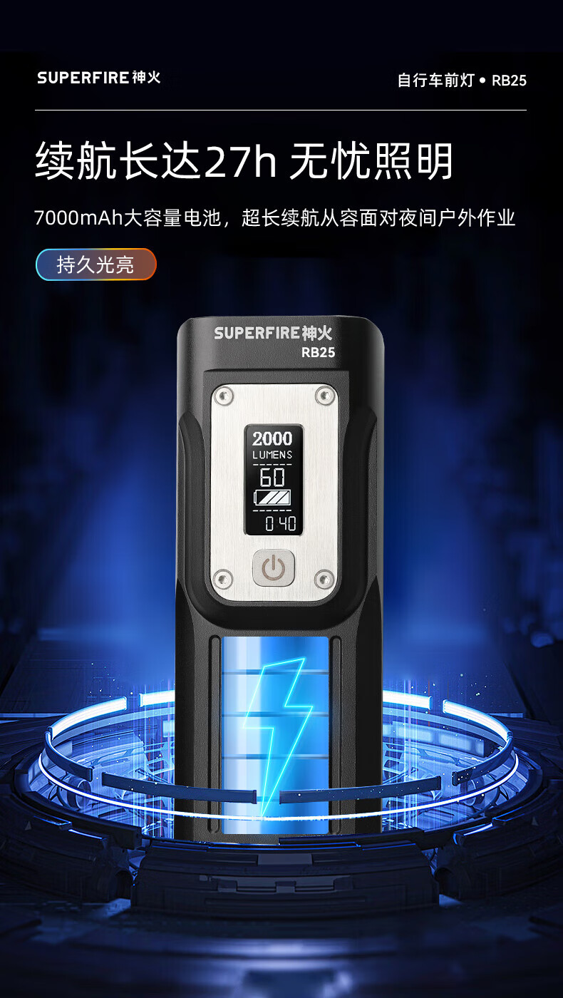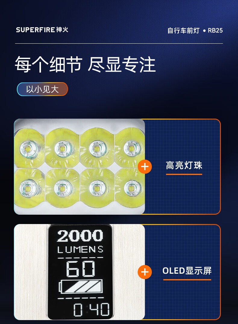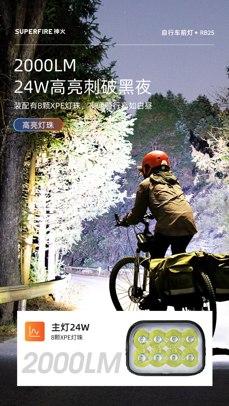 神火(SupFire)RB25自行车灯前灯充电强光手电筒骑行装备单车夜骑配件灯山地车灯