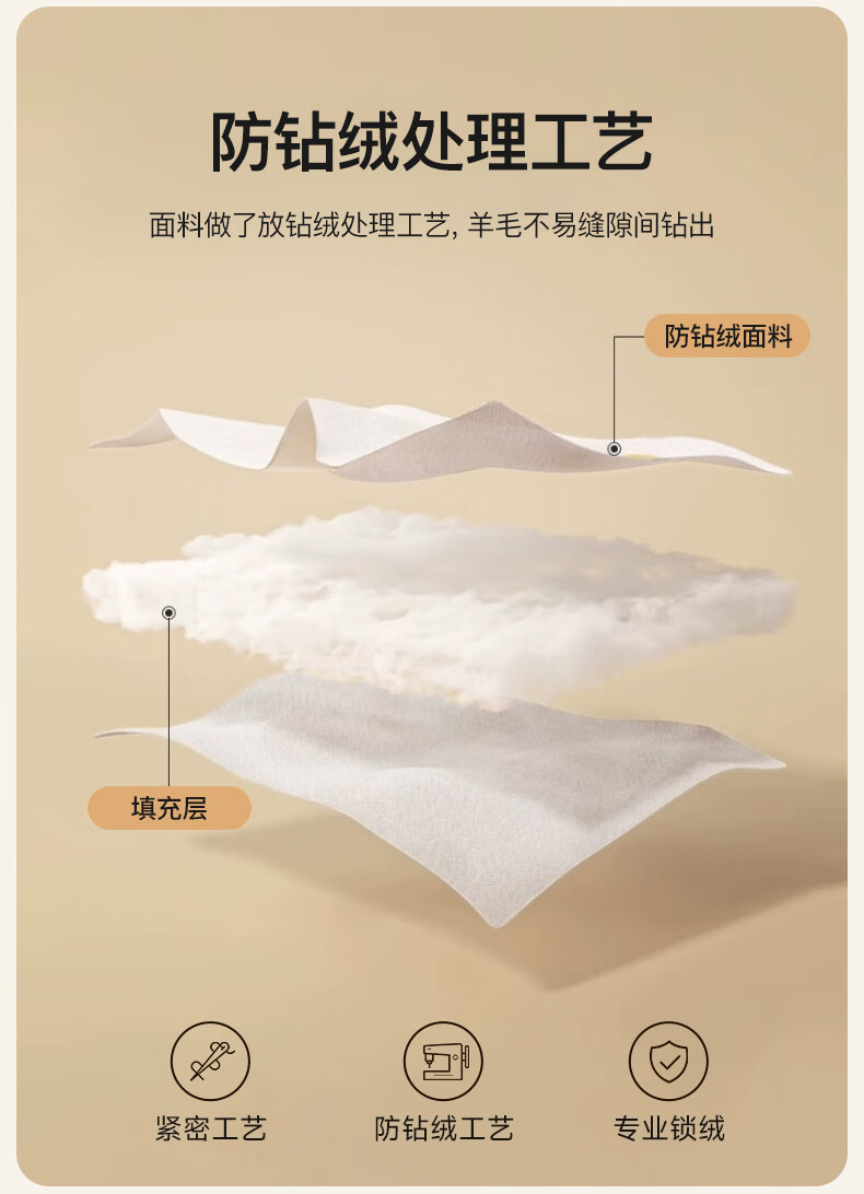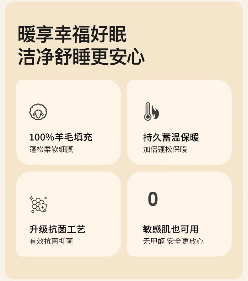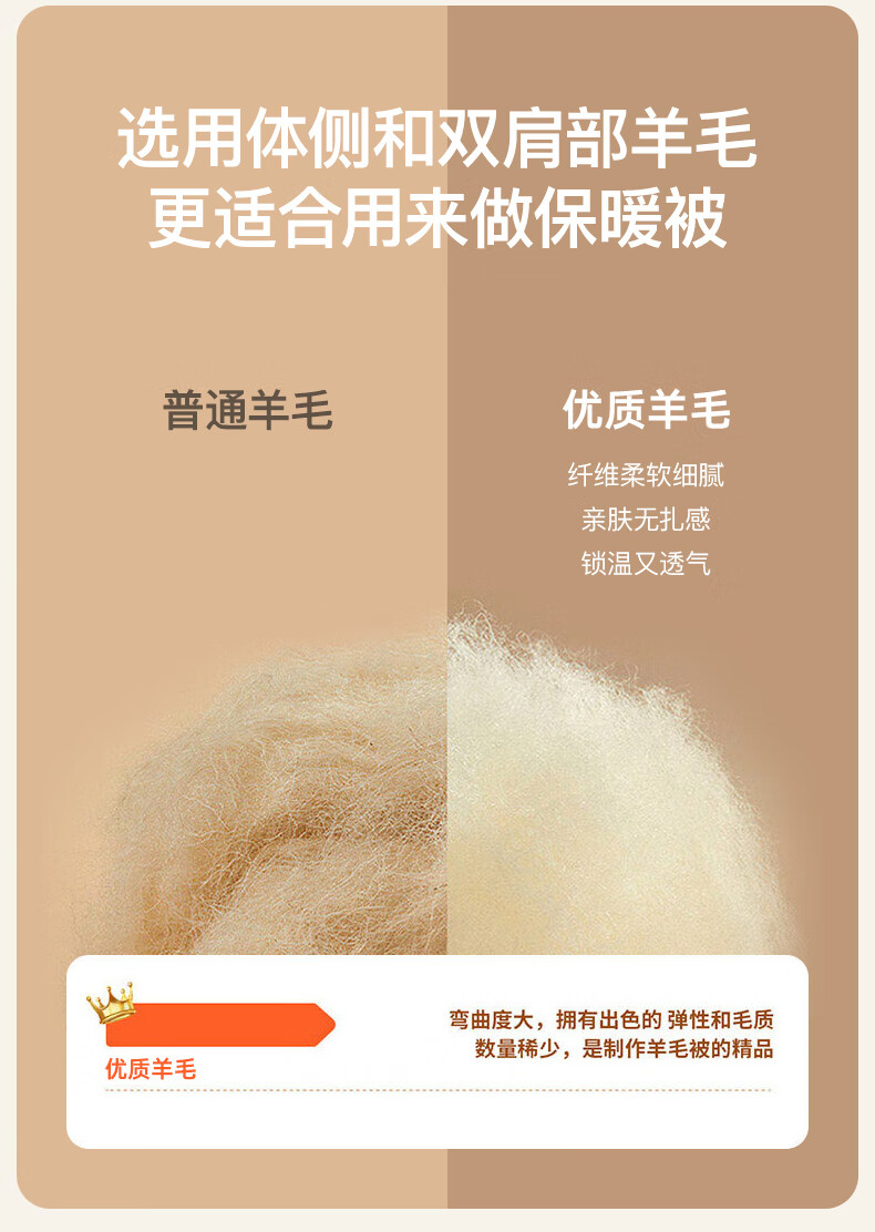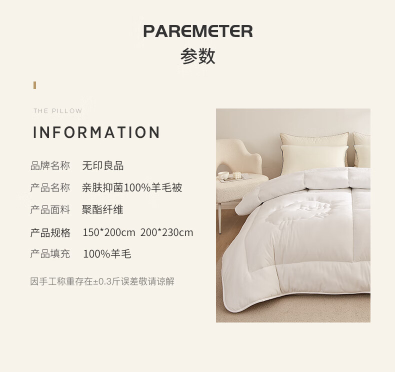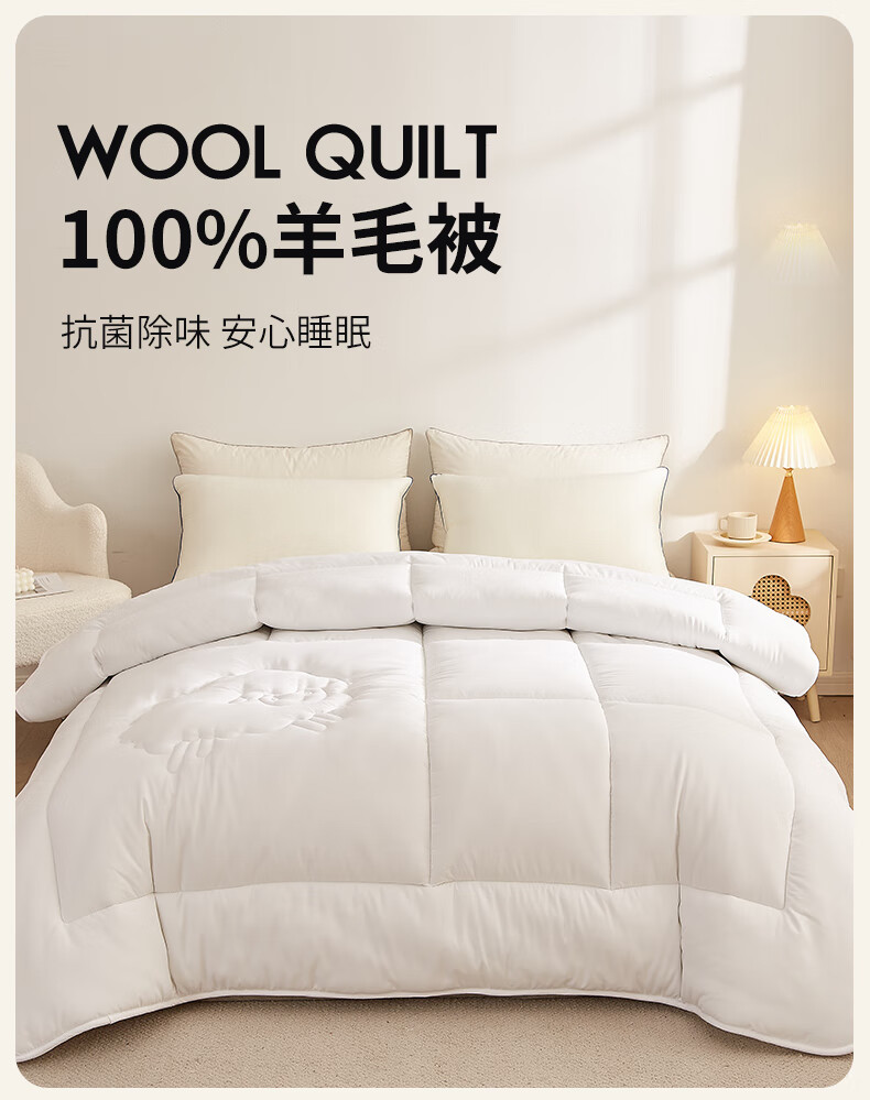 无印良品100%羊毛被子200*230cm秋冬加厚被褥纯色抑菌双人羊毛被芯 7斤