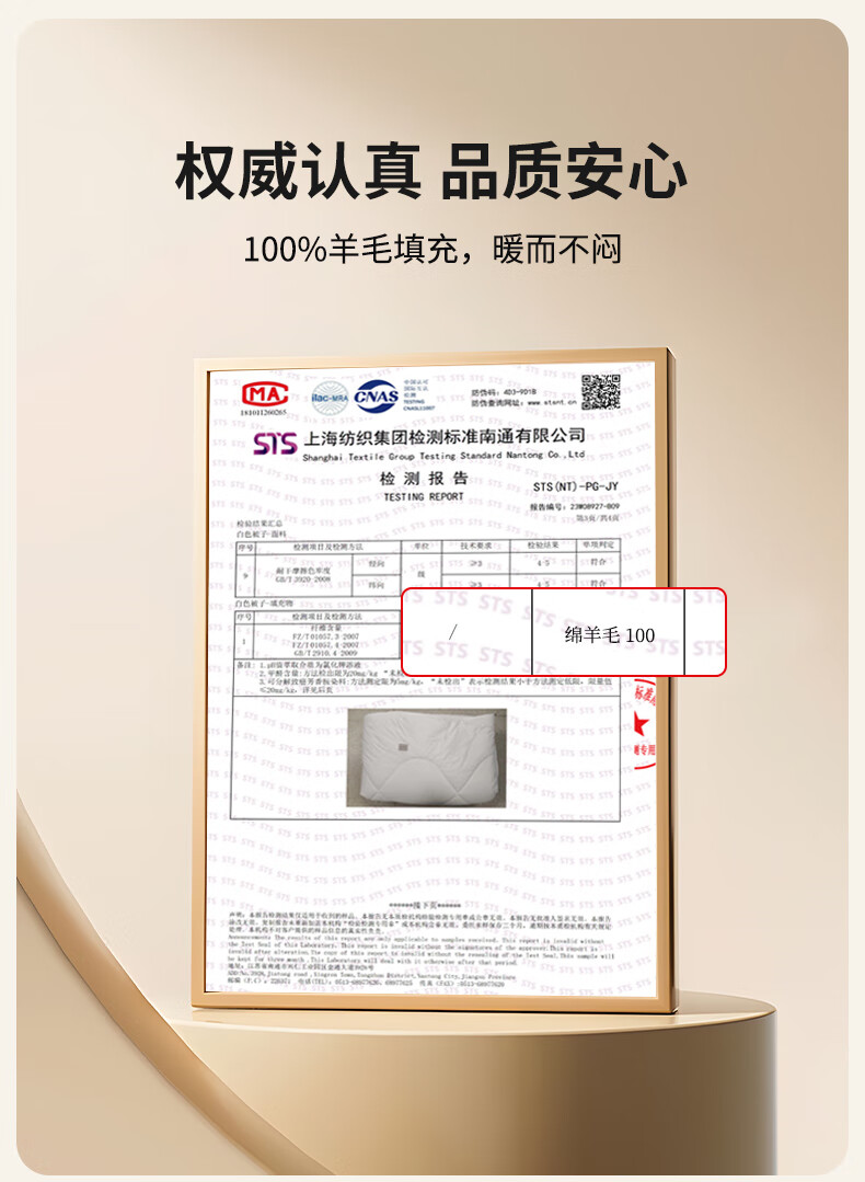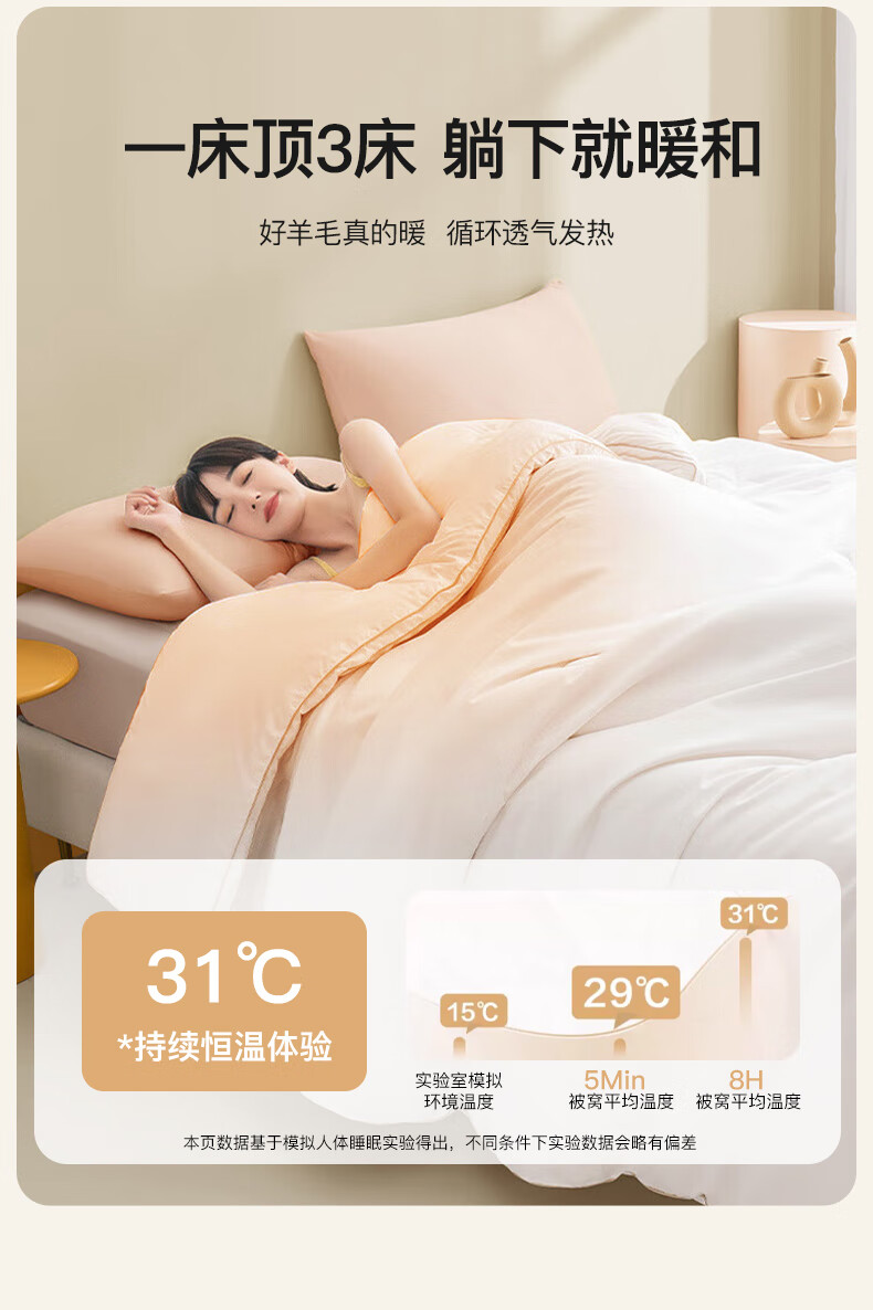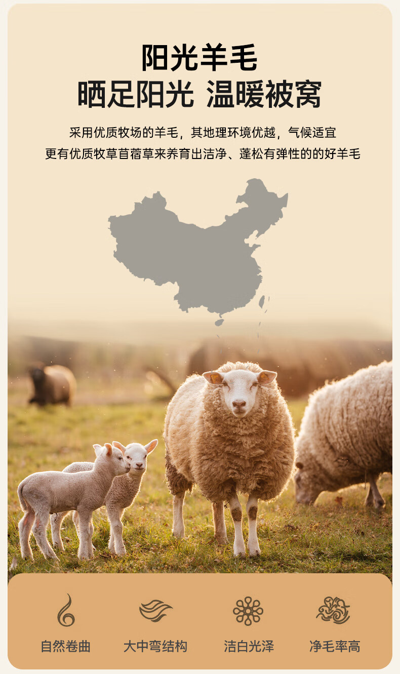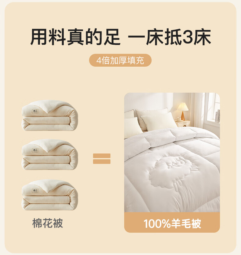 百丽丝水星家纺出品被子100%纯羊毛被子冬季冬被芯加厚被子被芯约7.8斤