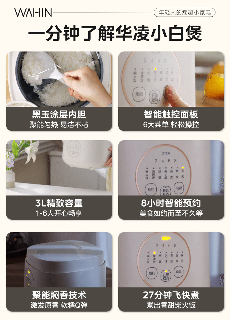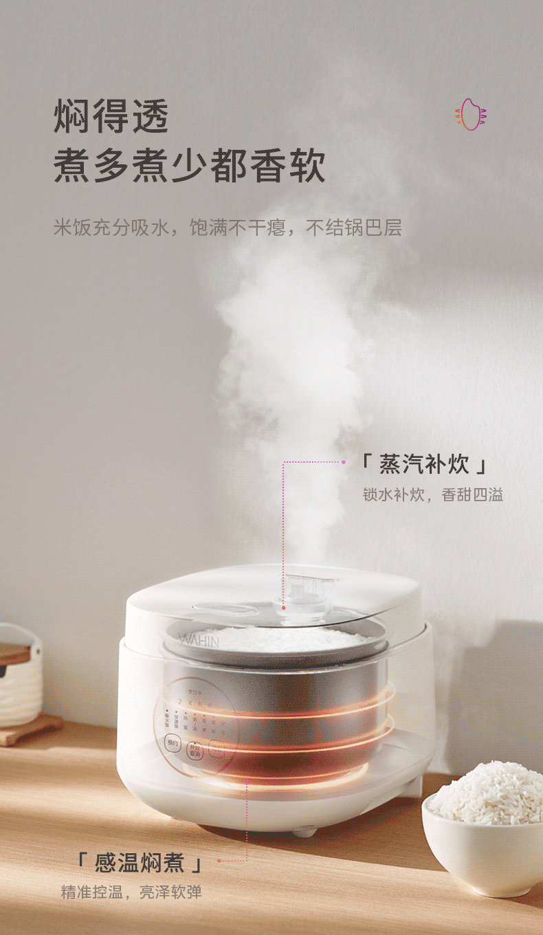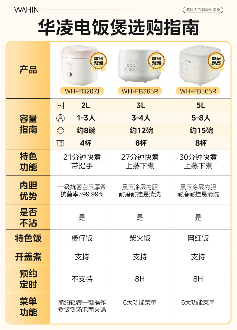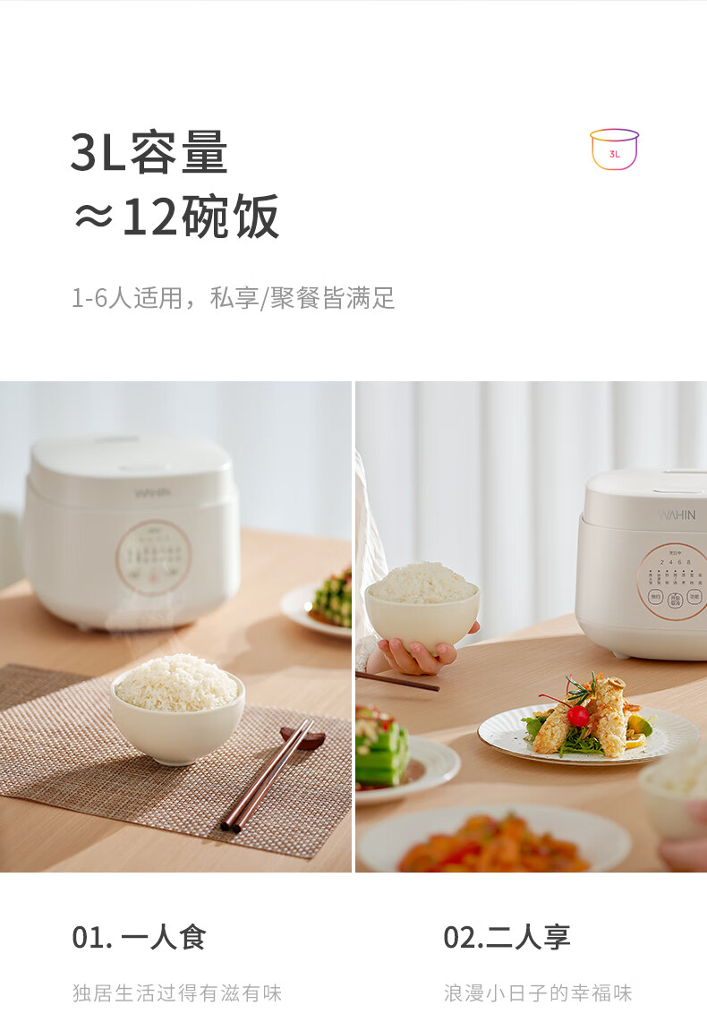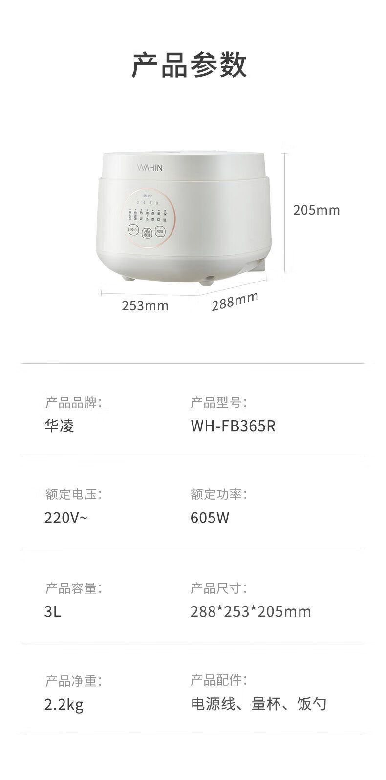 华凌美的出品 3L电饭煲电饭锅 家用3-4人黑玉聚能釜多功能微压可煮小米粥 大火压力电饭煲WH-FB365R