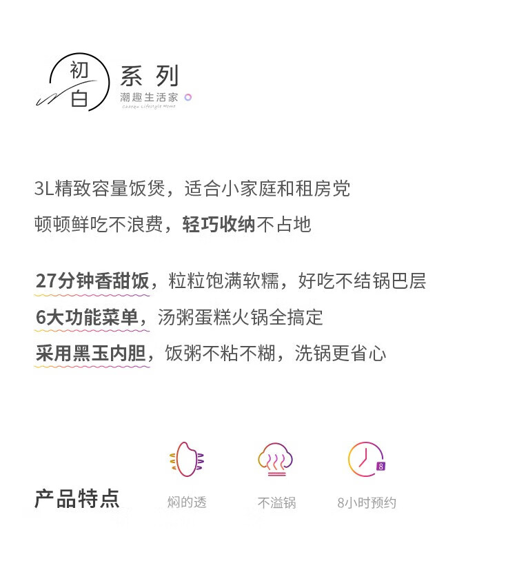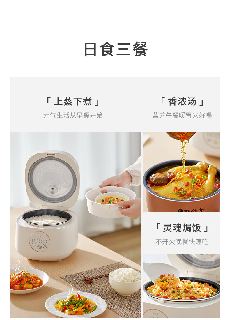 善思(Soseki)电压力锅3L家用全自动风冷泄压 多功能小容量高压锅 煲汤煮饭煮粥电饭锅电饭煲象牙白