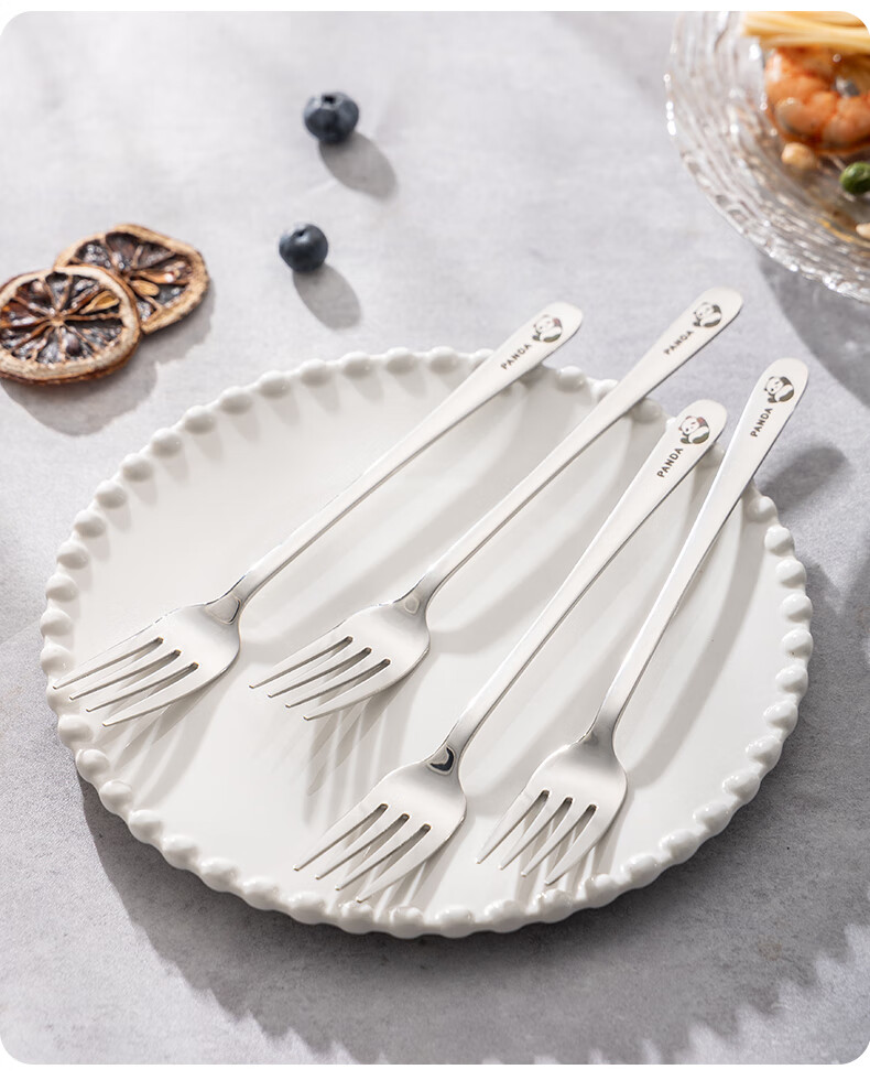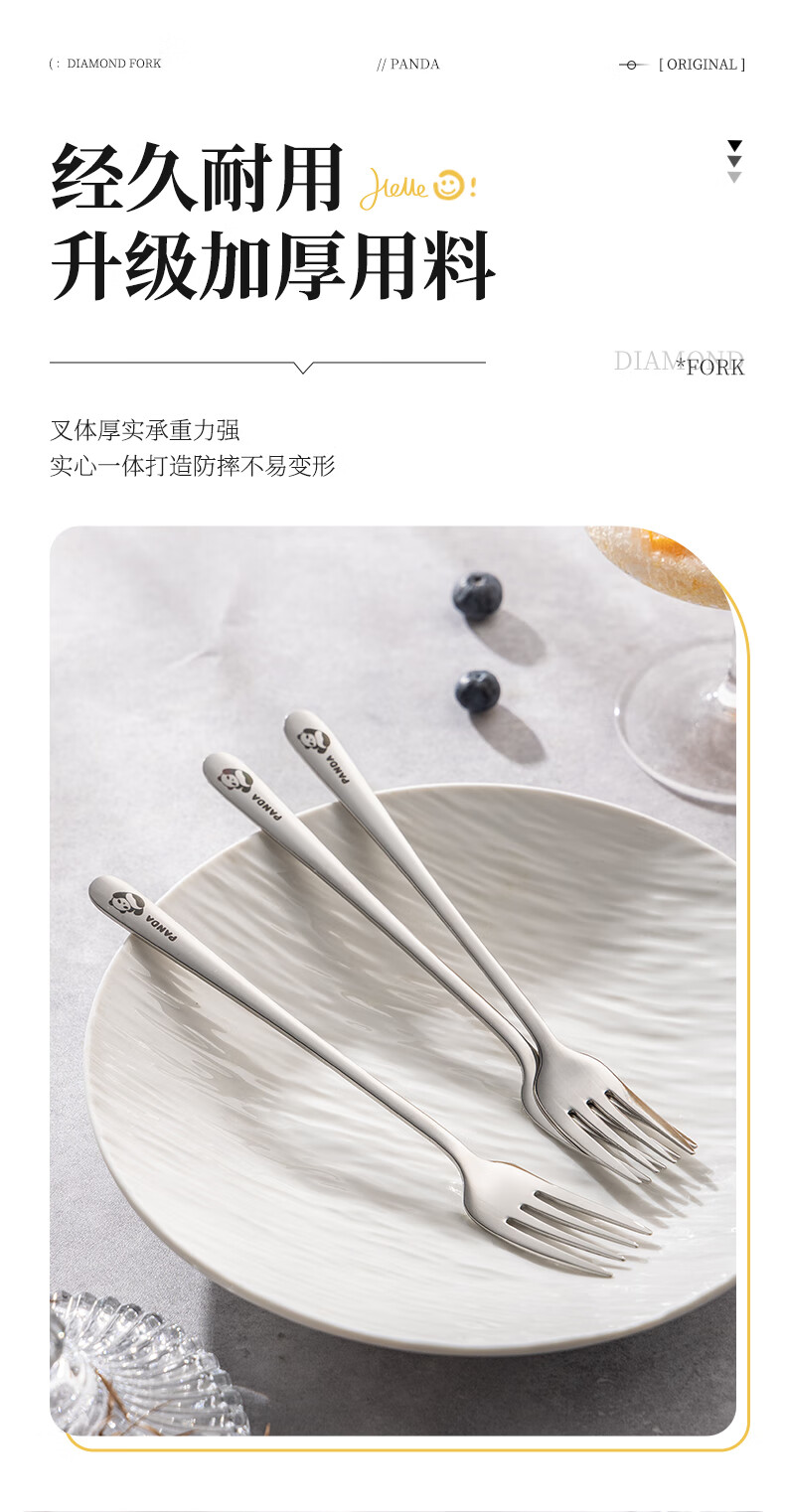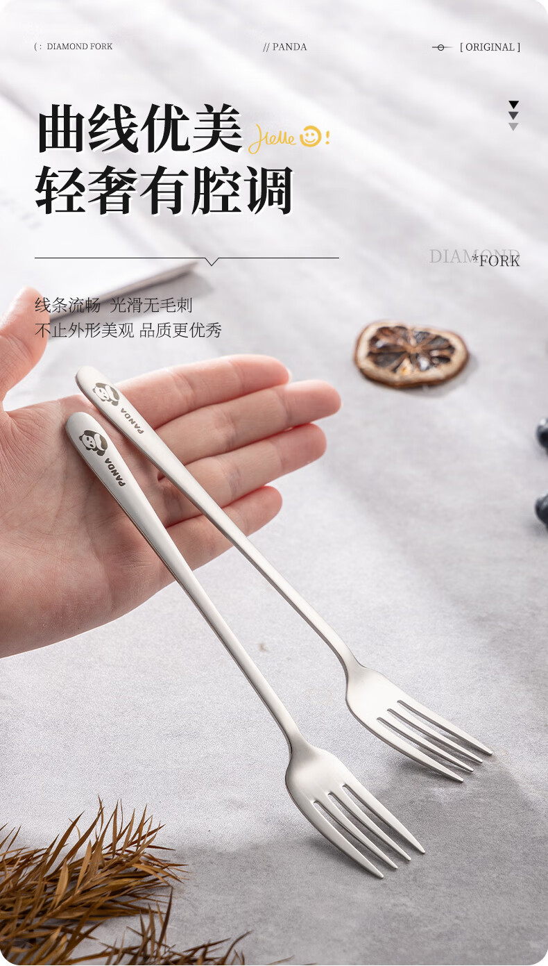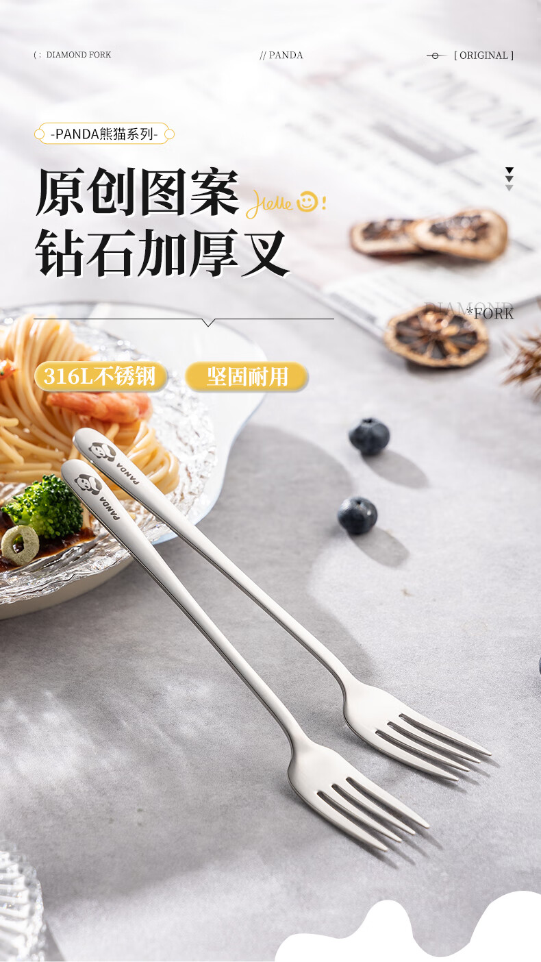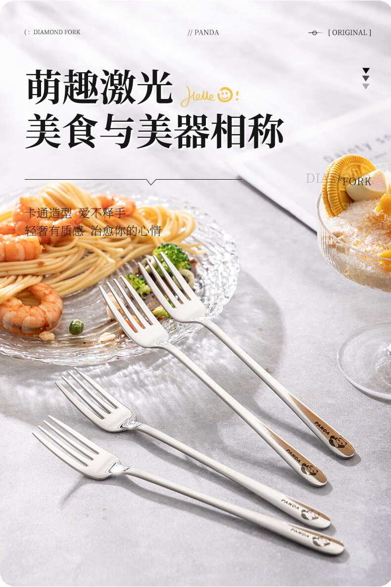 广意 316L不锈钢叉子甜品叉水果叉沙拉泡面叉餐具熊猫2支装 GY1441