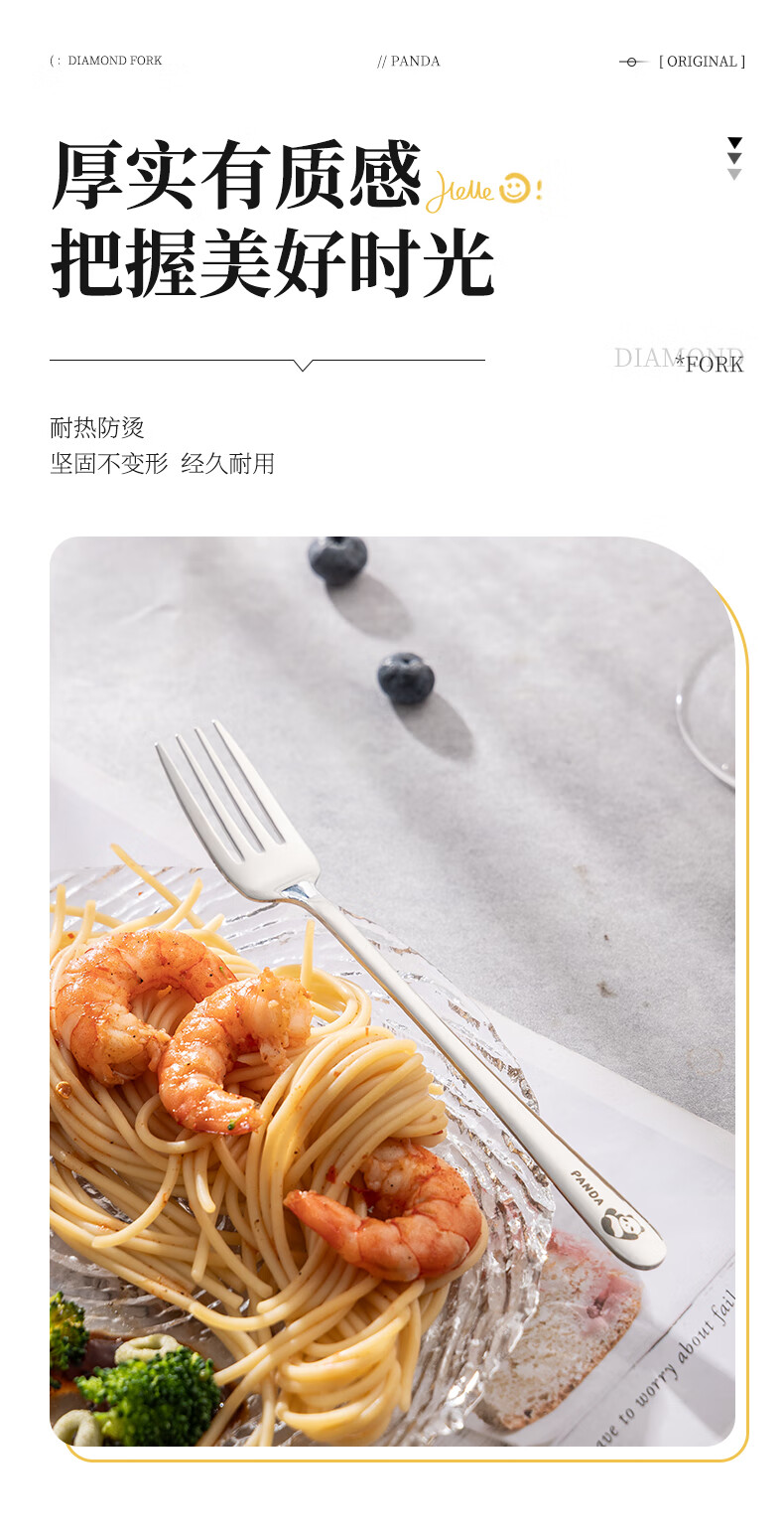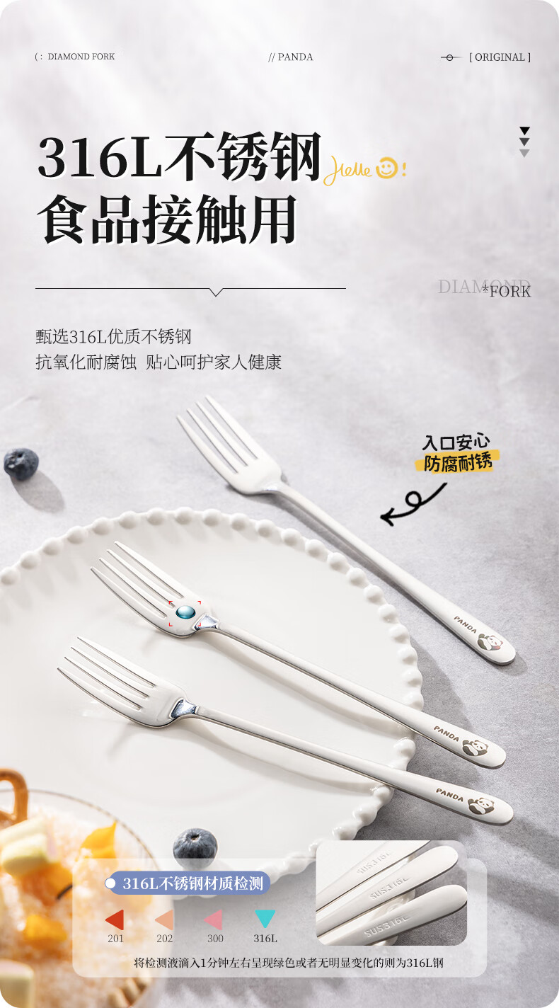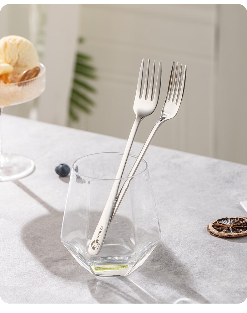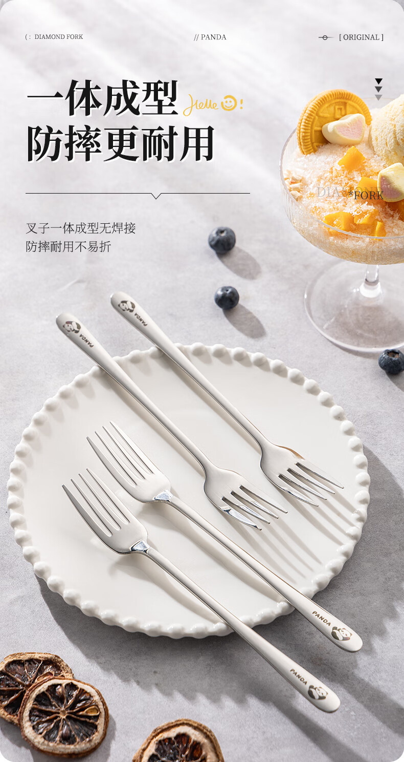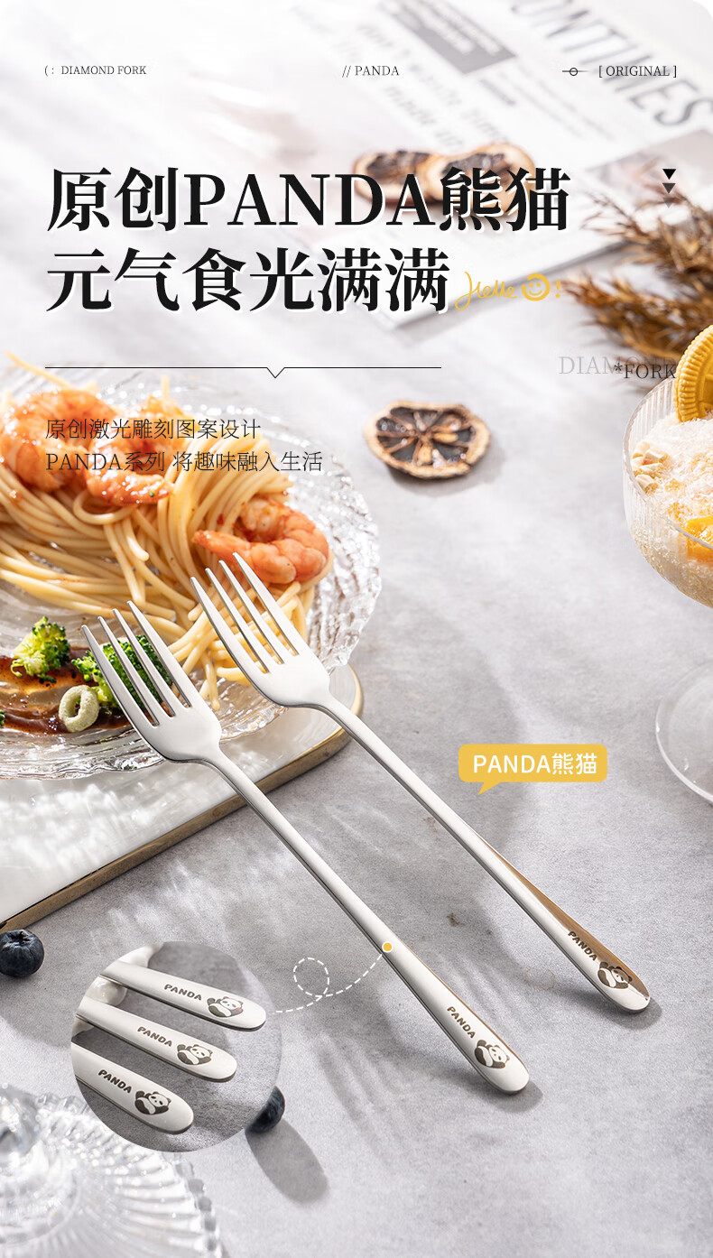 广意 316L不锈钢叉子甜品叉水果叉沙拉泡面叉餐具熊猫2支装 GY1441