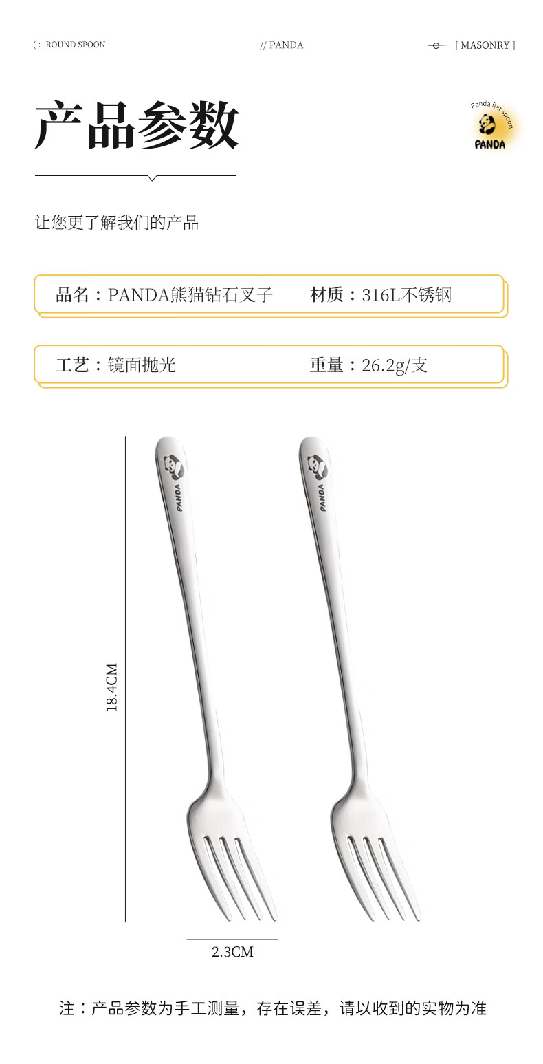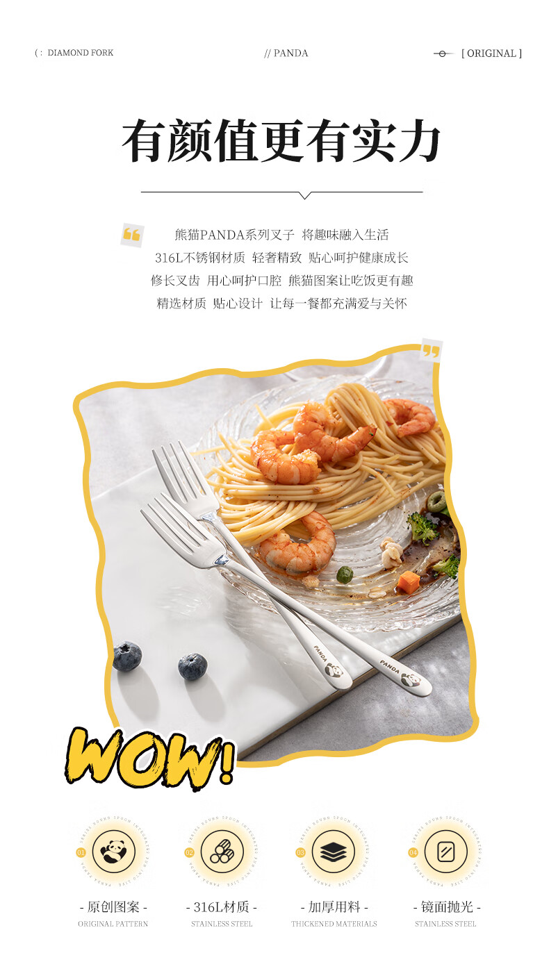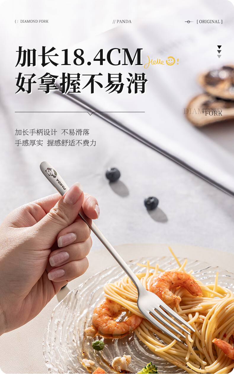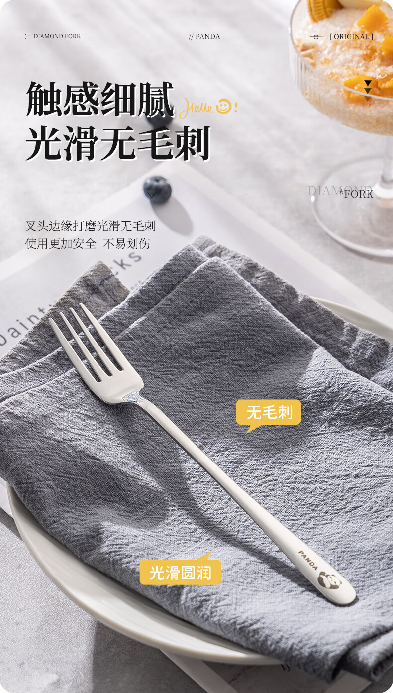 广意 316L不锈钢叉子甜品叉水果叉沙拉泡面叉餐具熊猫2支装 GY1441