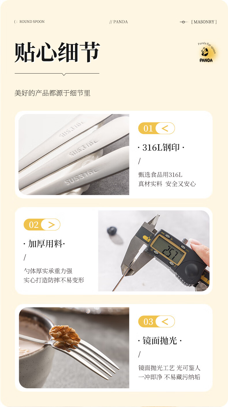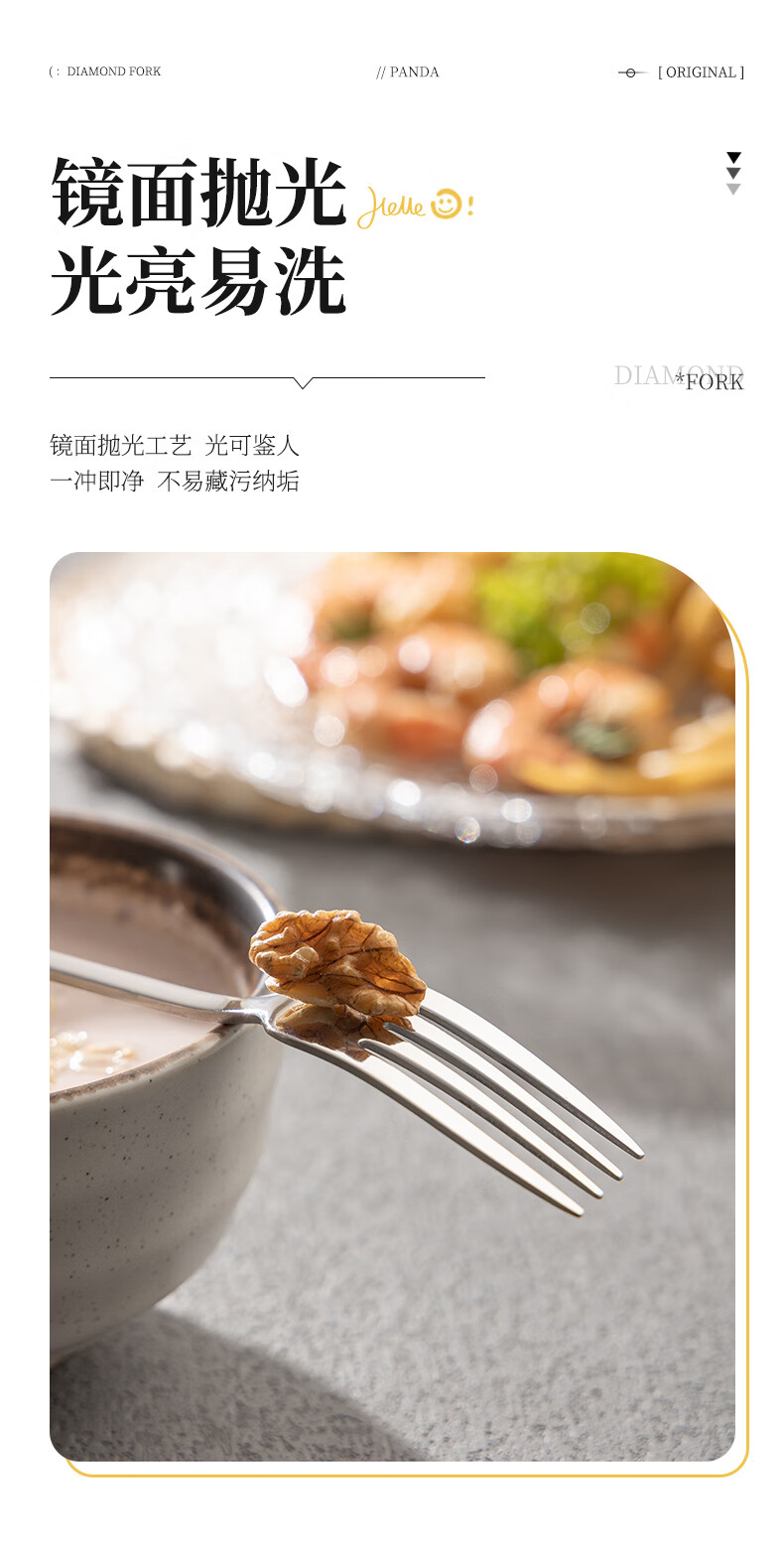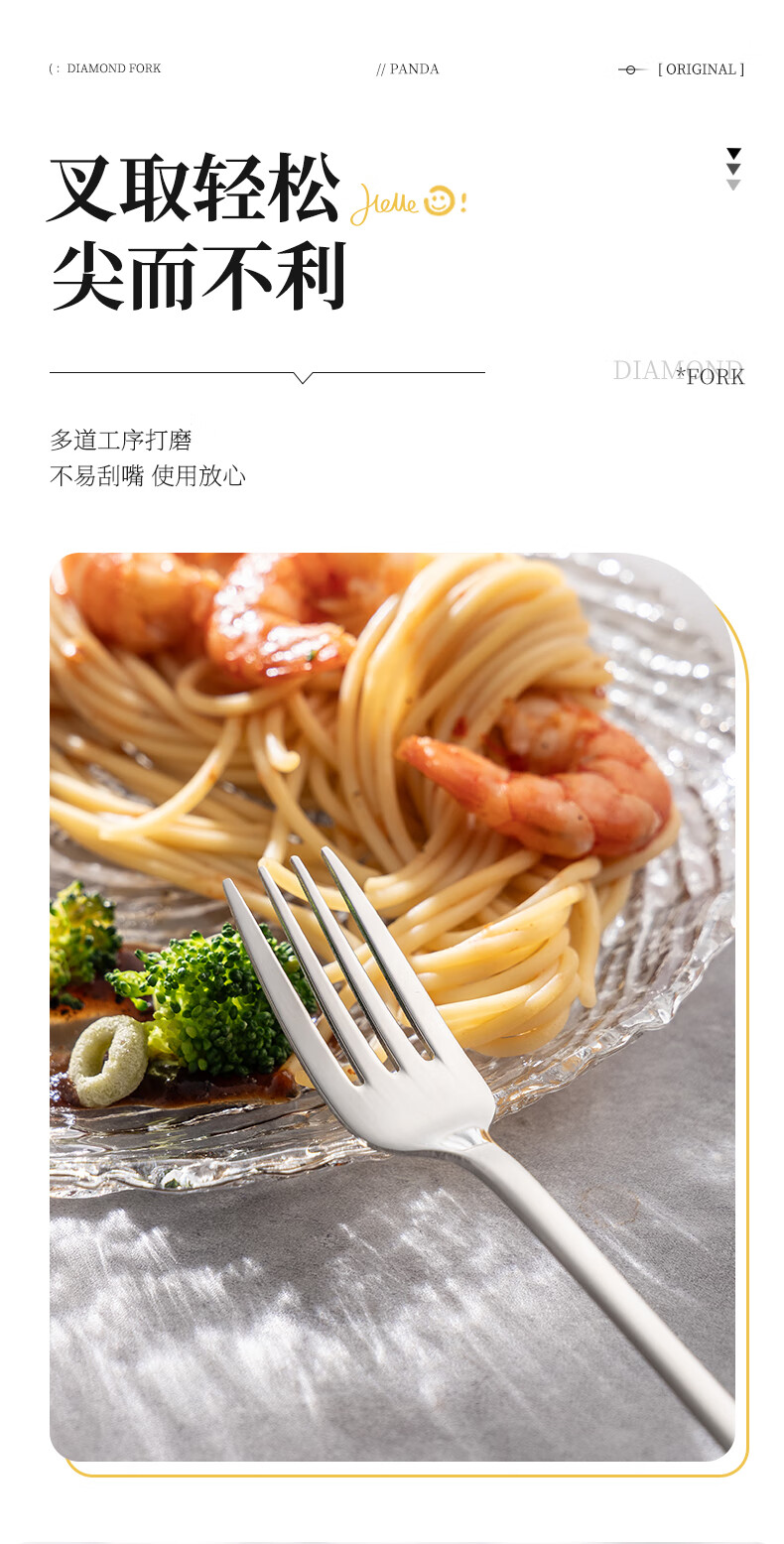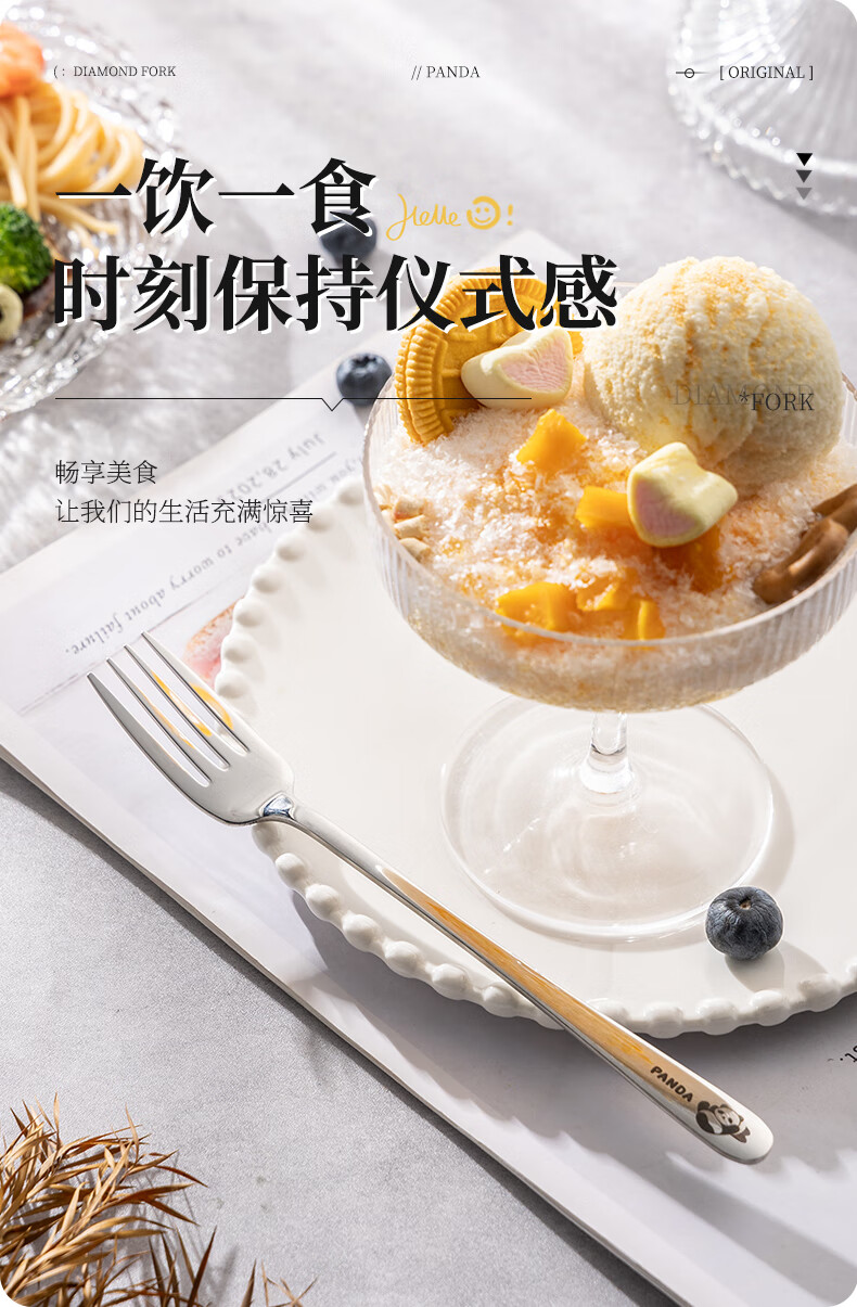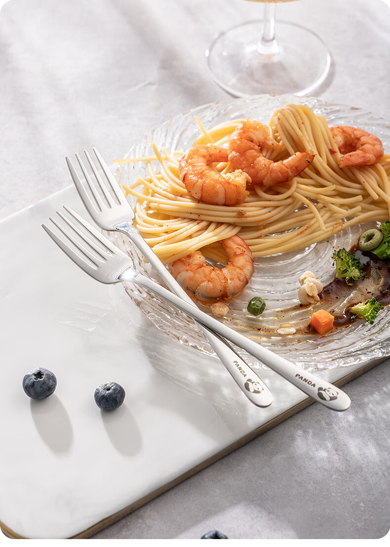 广意 316L不锈钢叉子甜品叉水果叉沙拉泡面叉餐具熊猫2支装 GY1441