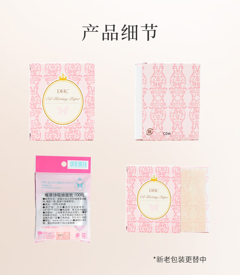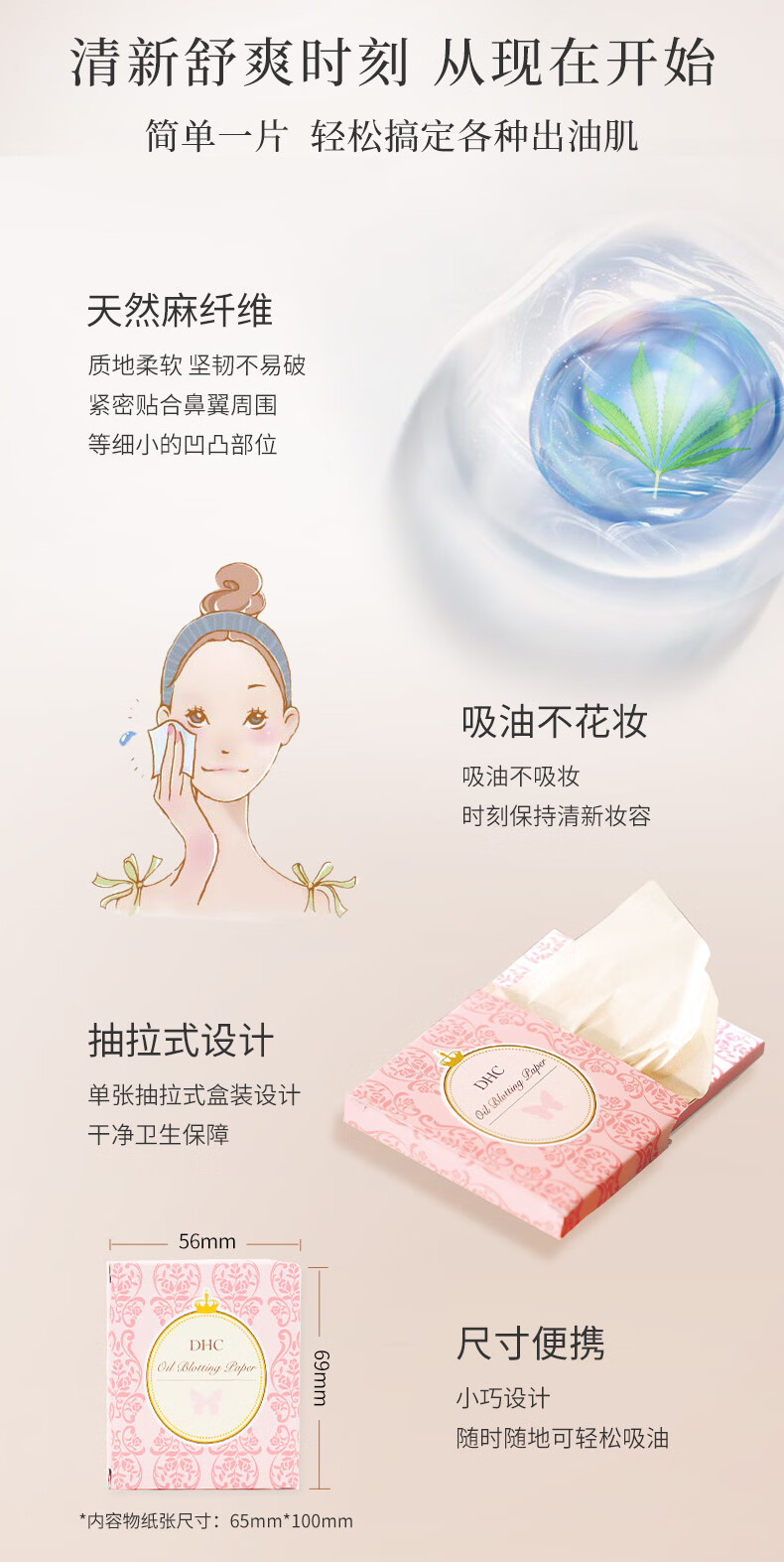 DHC 吸油面纸 携带型100张*65*100mm控油补妆清爽妆面便携油性肌肤