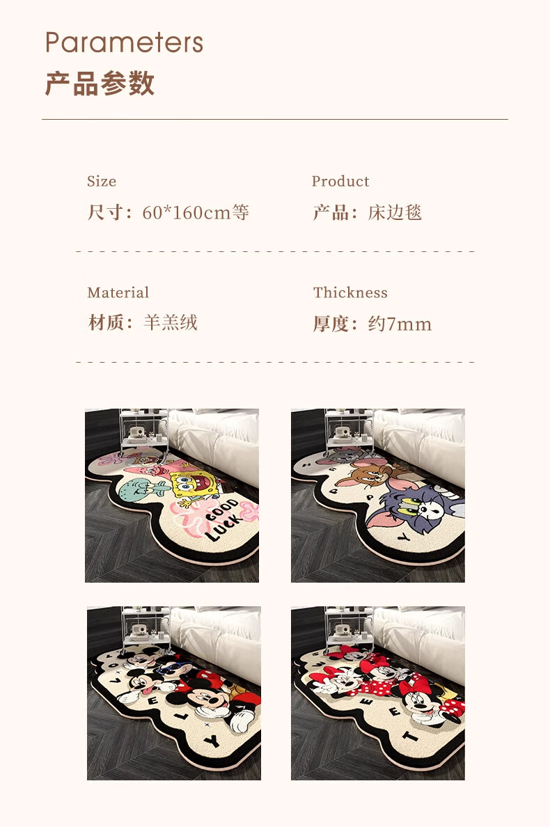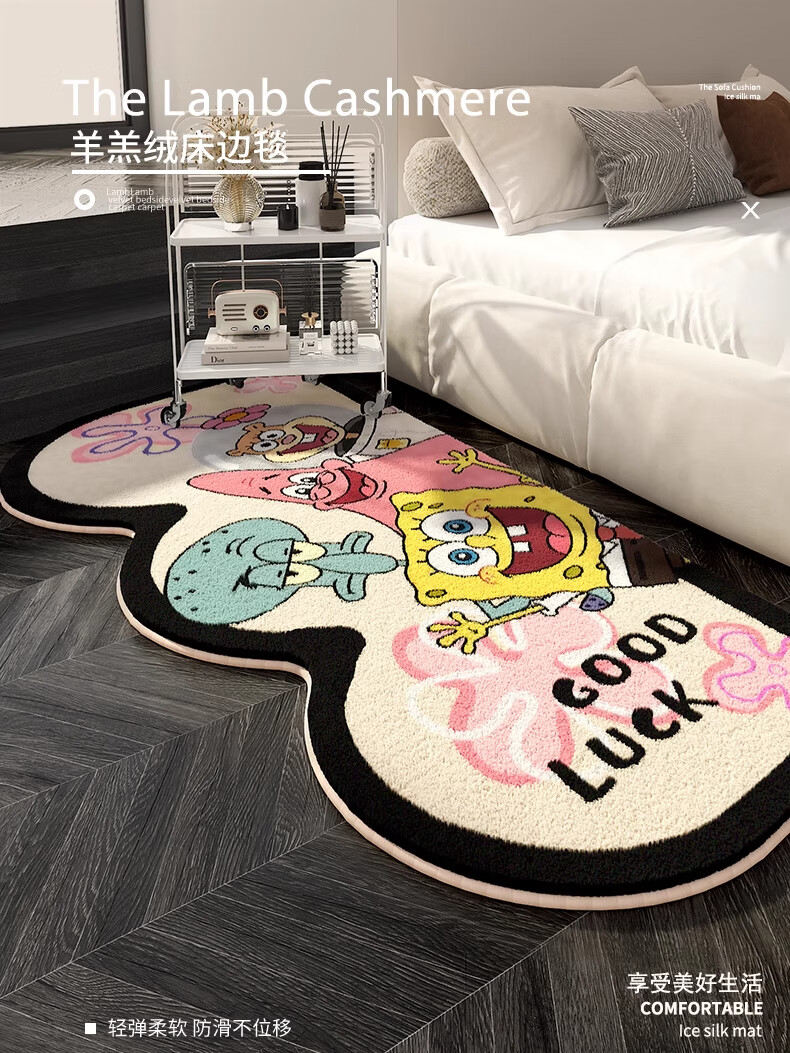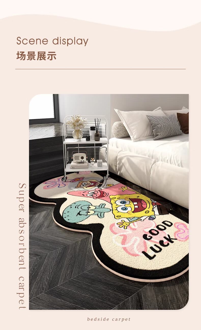 KAYE卡通床边地毯仿羊绒女孩儿童房间加厚地垫家用客厅卧室公主床边毯 FYR-海绵宝宝家族 50X140cm