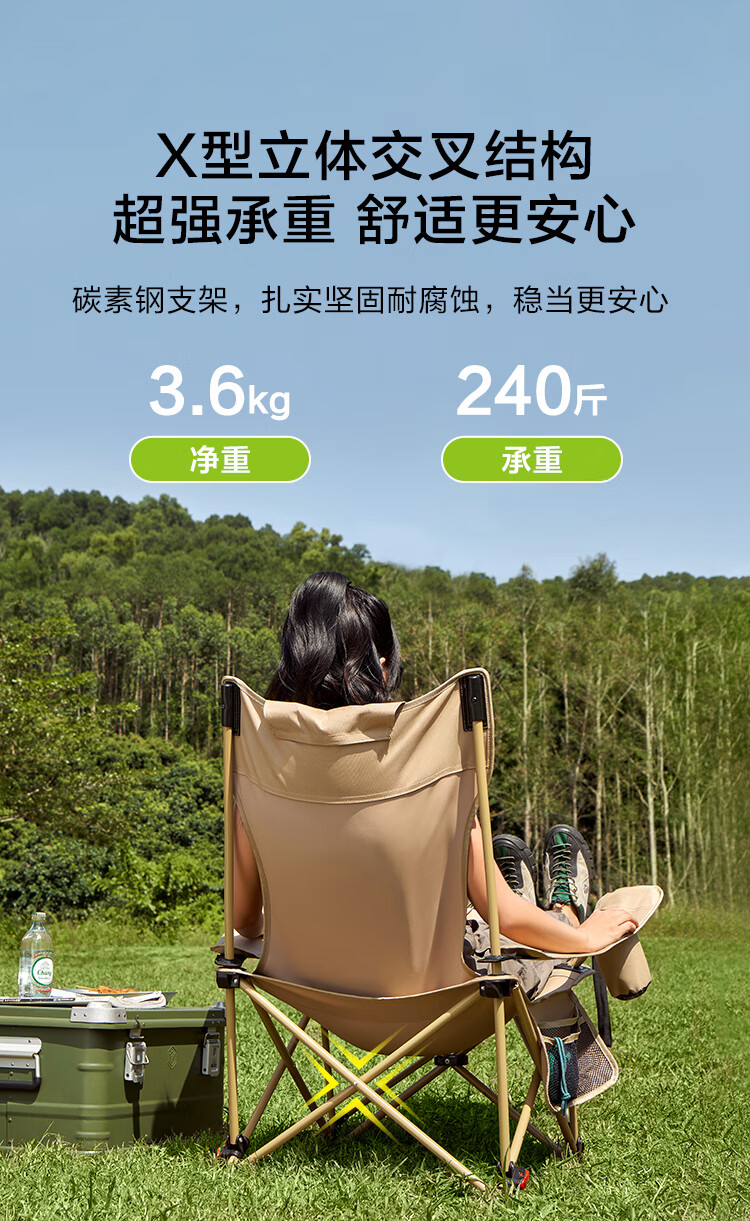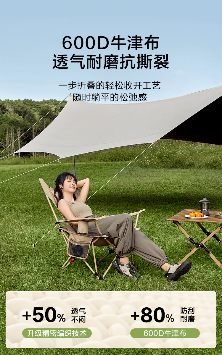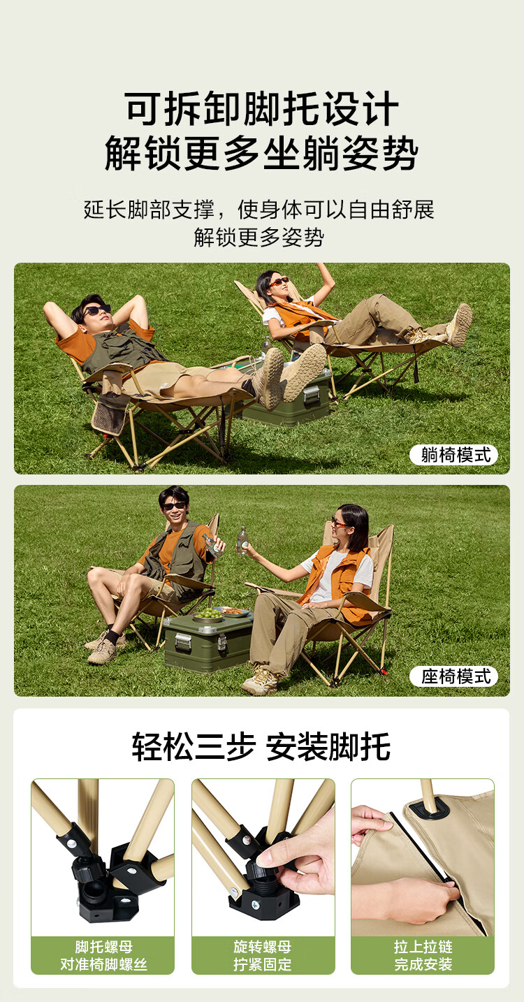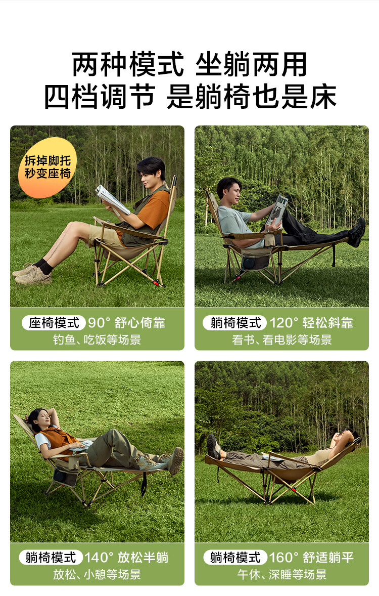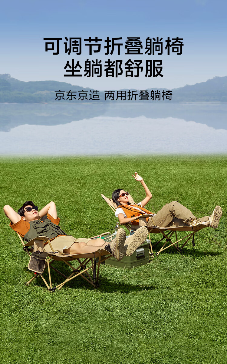 京东京造 坐躺两用折叠躺椅轻简版 户外折叠椅露营椅子可调节带脚托午休椅