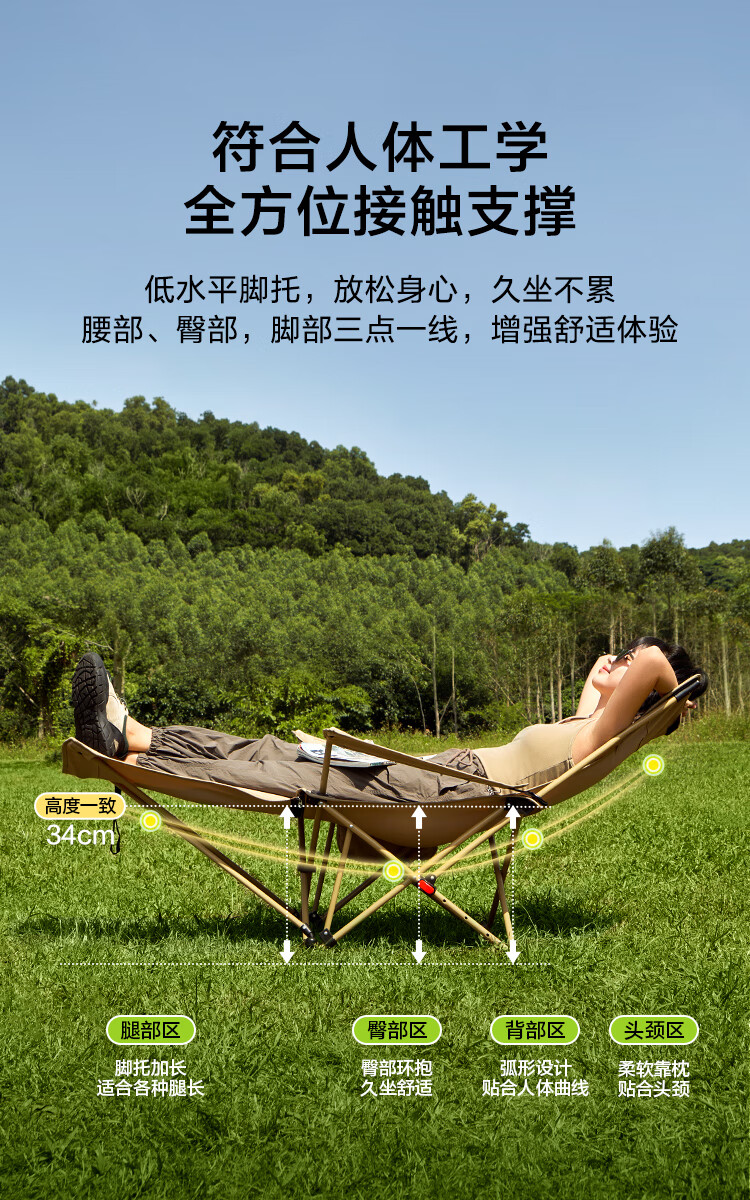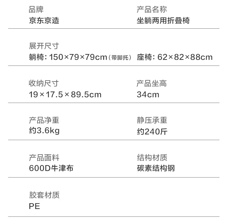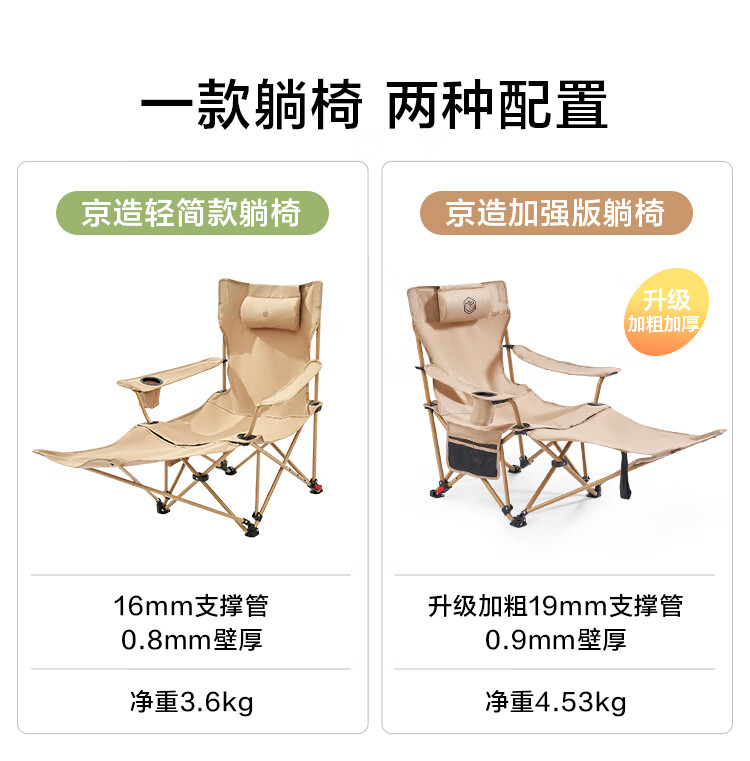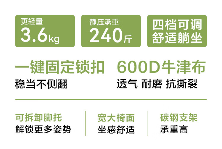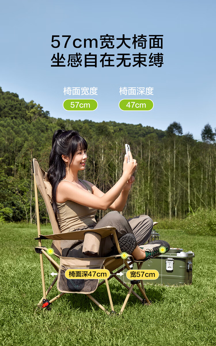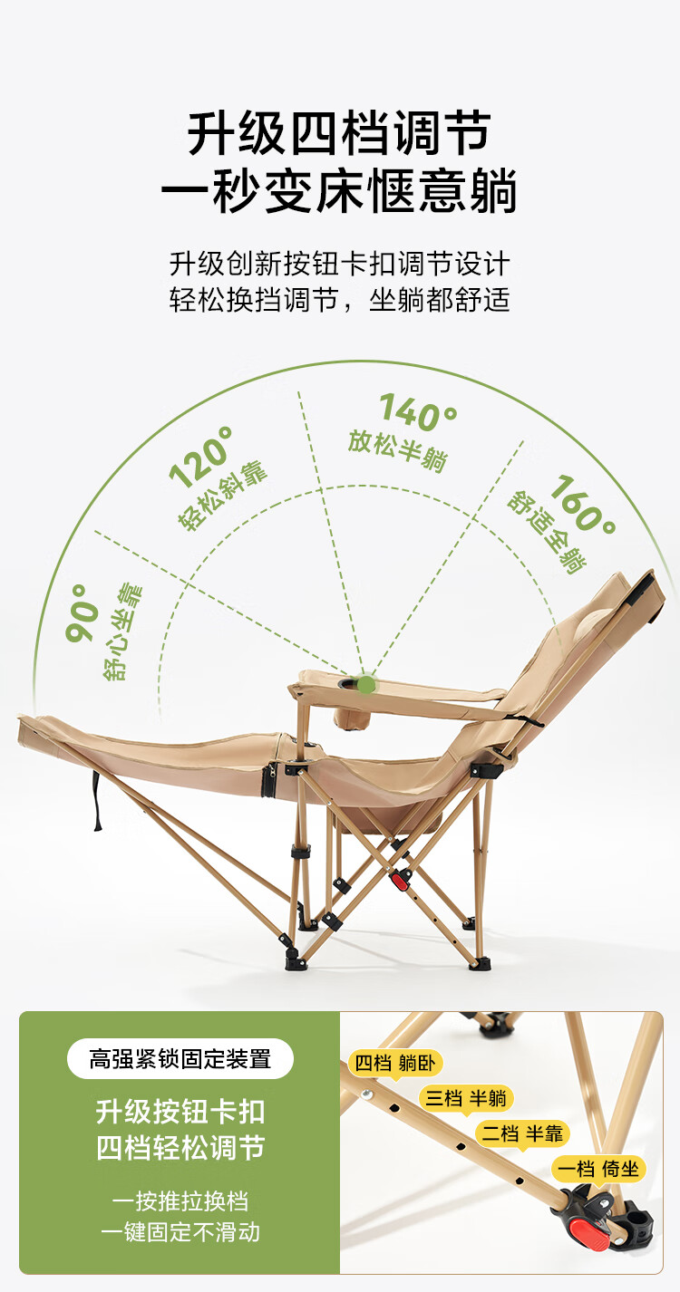 京东京造 坐躺两用折叠躺椅轻简版 户外折叠椅露营椅子可调节带脚托午休椅