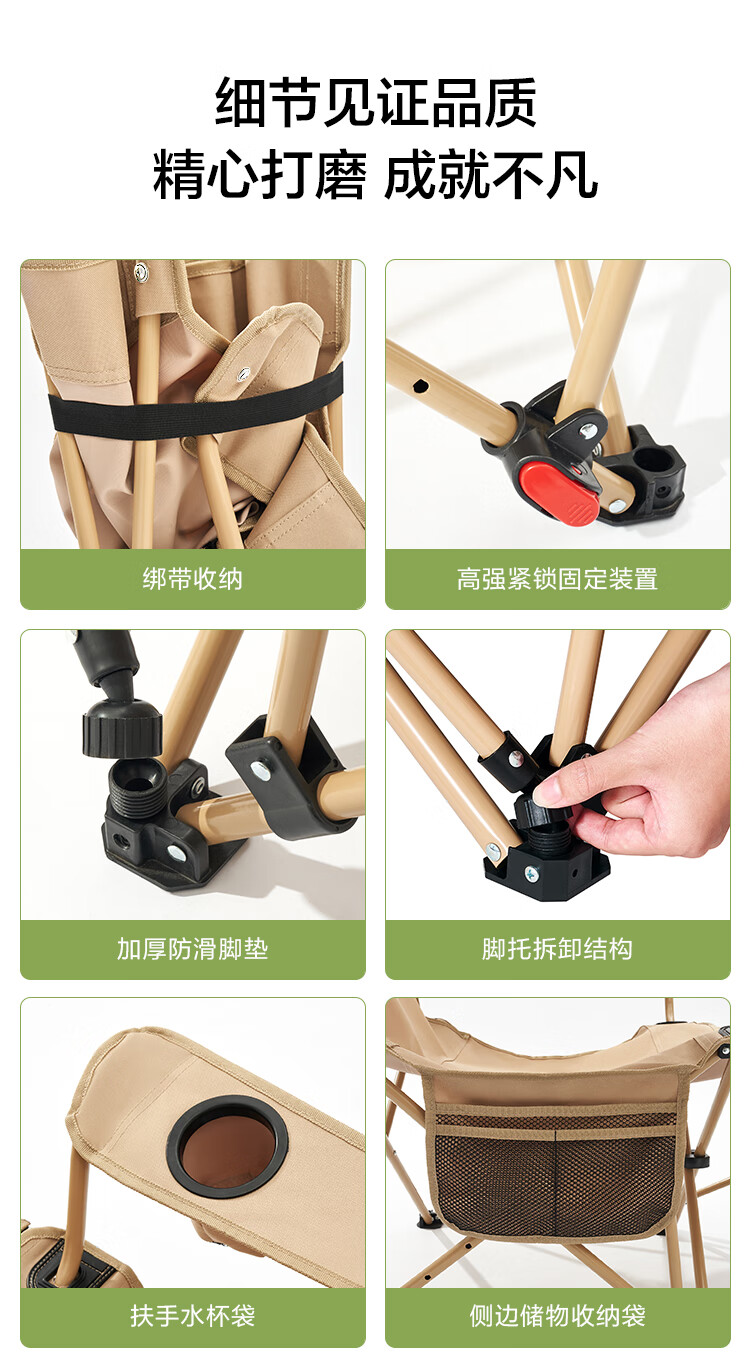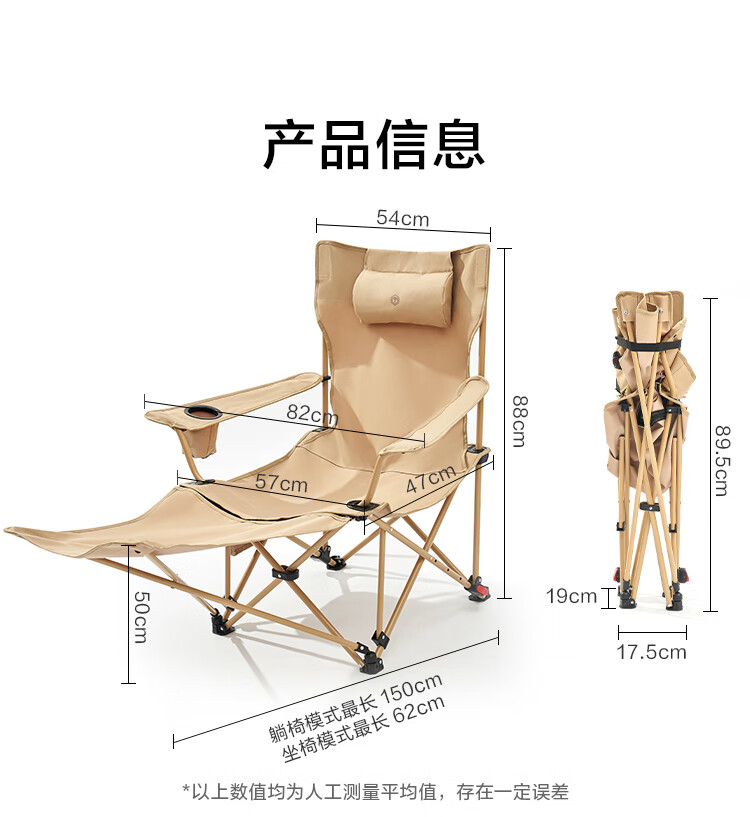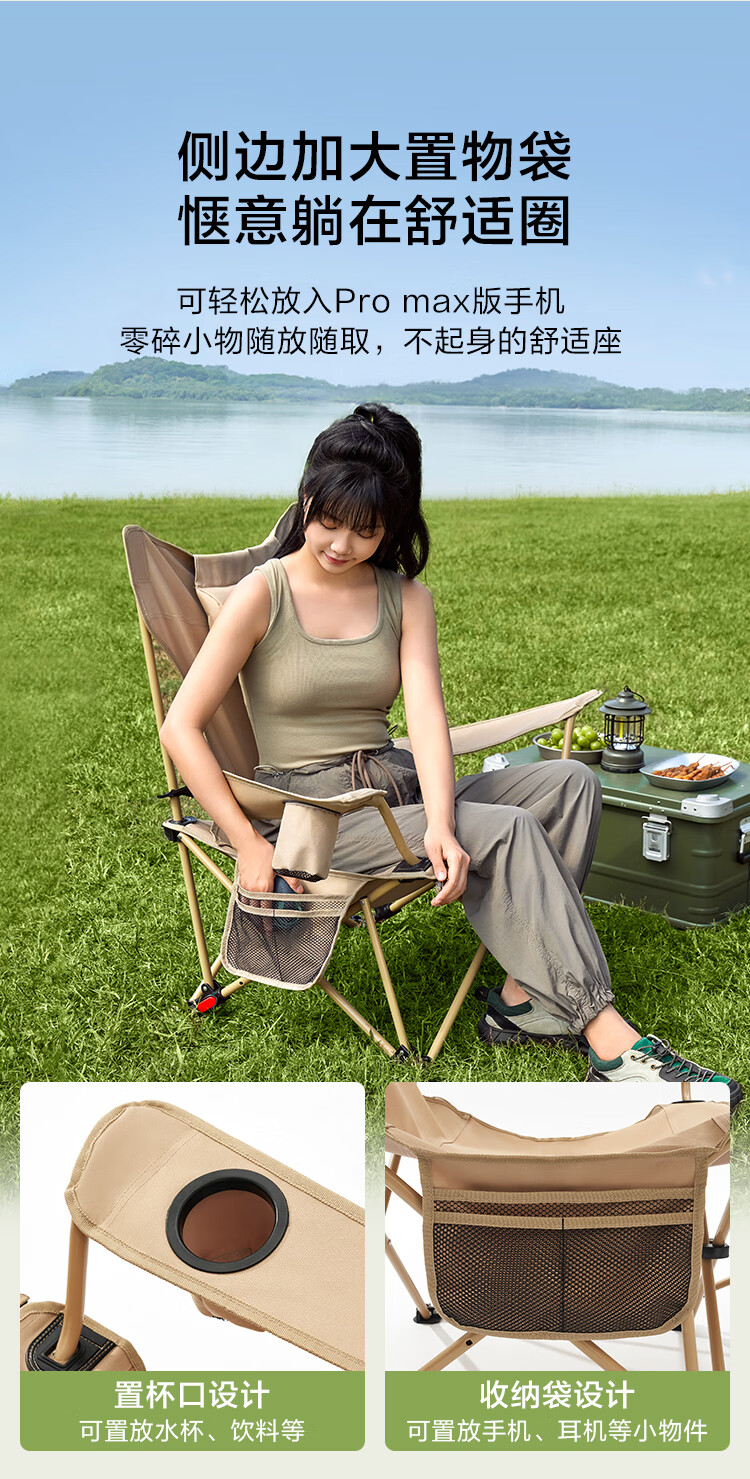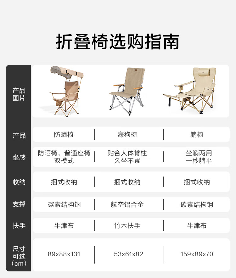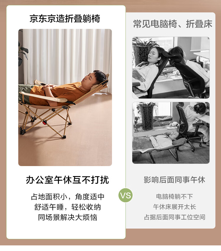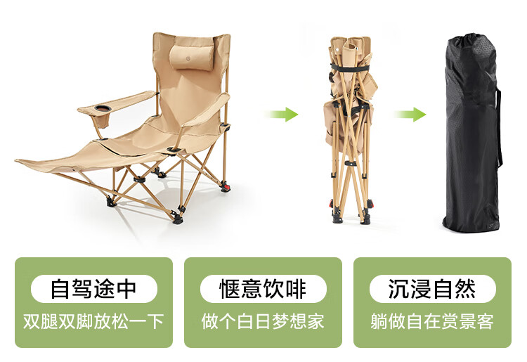 京东京造 坐躺两用折叠躺椅轻简版 户外折叠椅露营椅子可调节带脚托午休椅