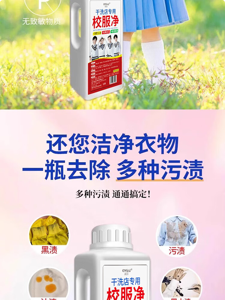 拥彩校服净1000g 强力去顽固污渍学生衣物发黄去油渍增艳亮白清洗剂