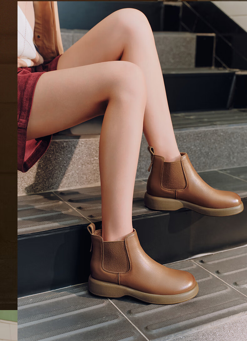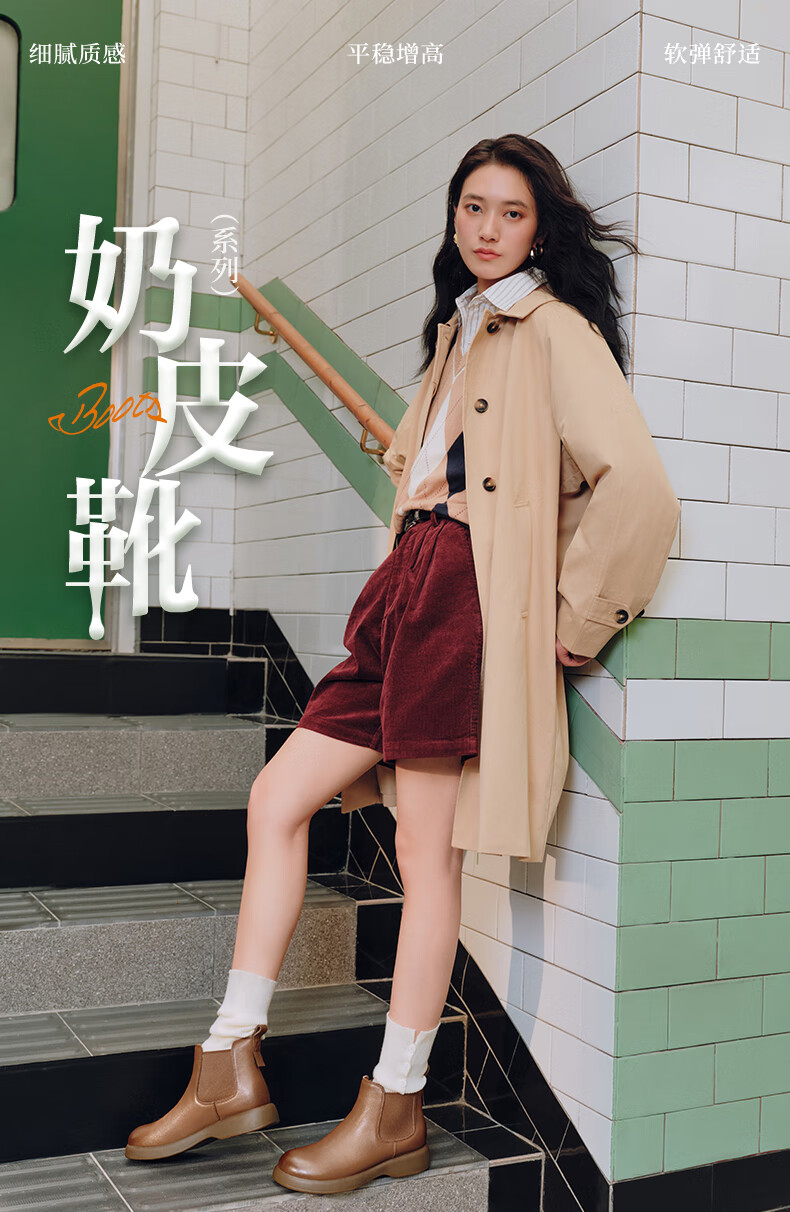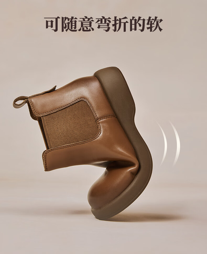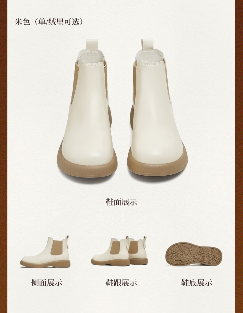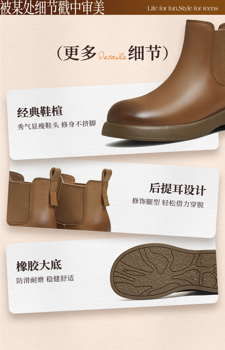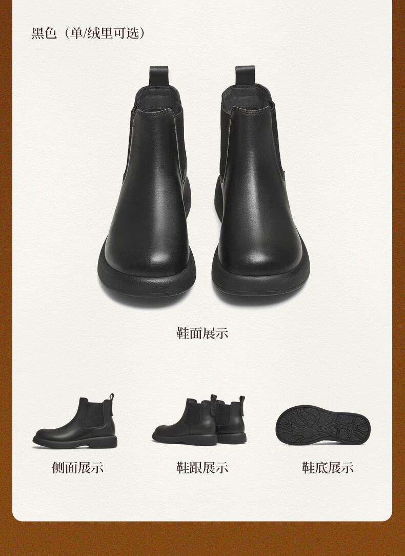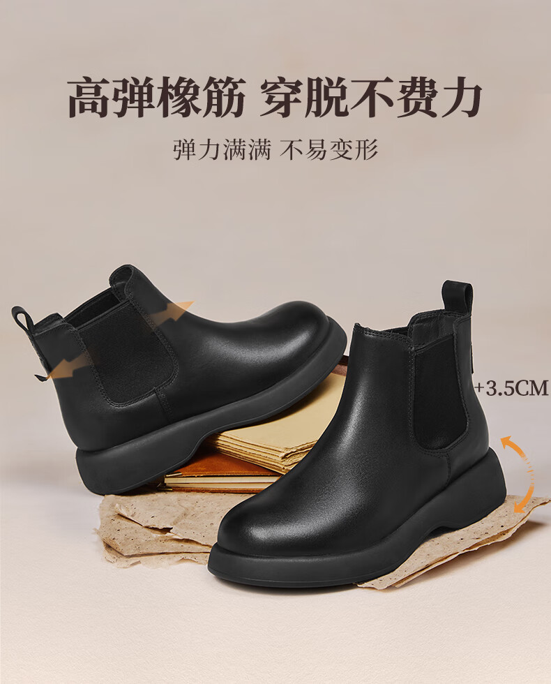 天美意切尔西靴厚底百搭短靴一脚蹬潮流女靴2025新款KQX18DD5 黑色 37