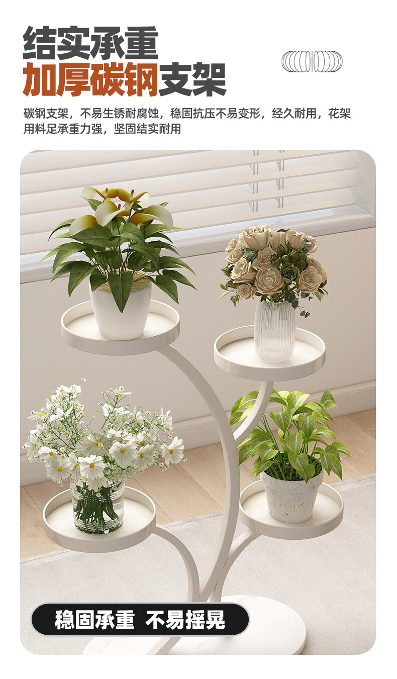 顾家家居(KUKA)奶油风客厅搭配花架DS3468XJ HJ-004富贵树花架奶白色四层45*70