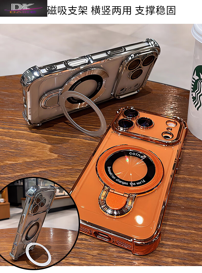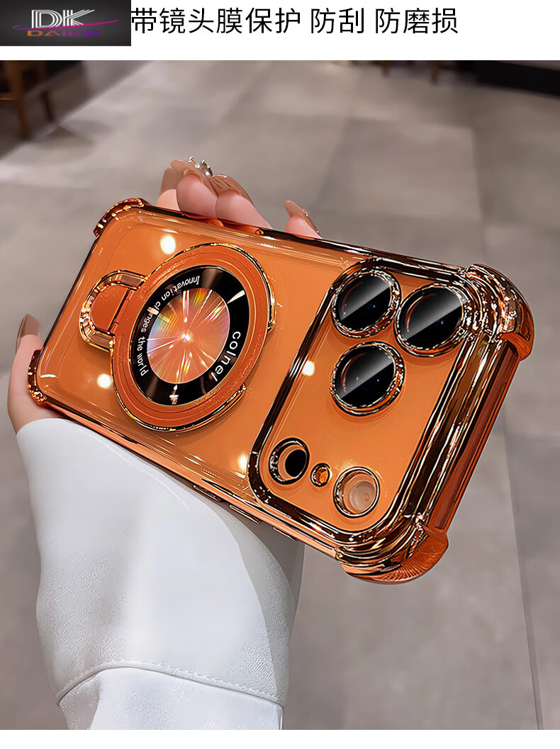 呆壳磁吸支架【四角气囊】星宇橙适用苹果17promax手机壳iphone17pro新款16高级15pm镜头全包14防摔套 【星宇橙】U盾长支架 气囊防摔 iPhone 17 Pro Max