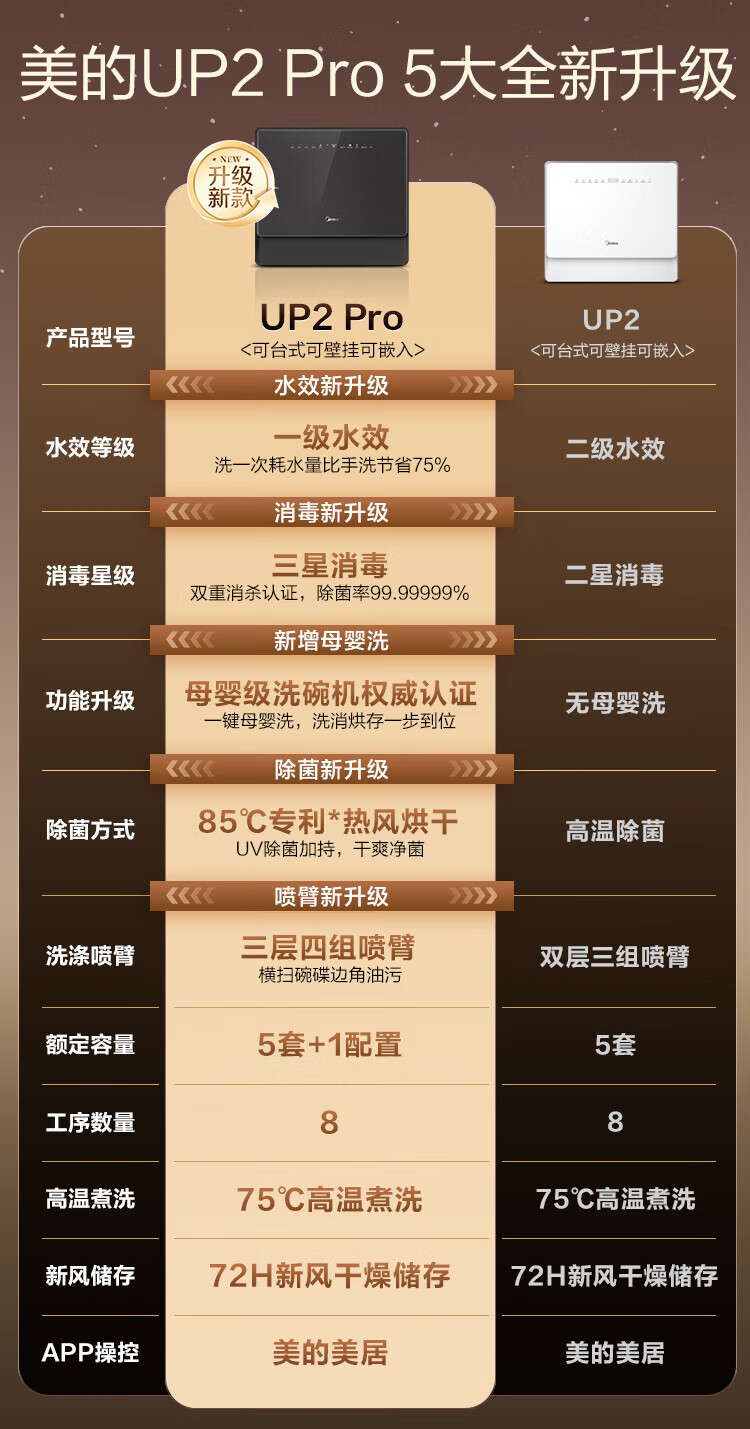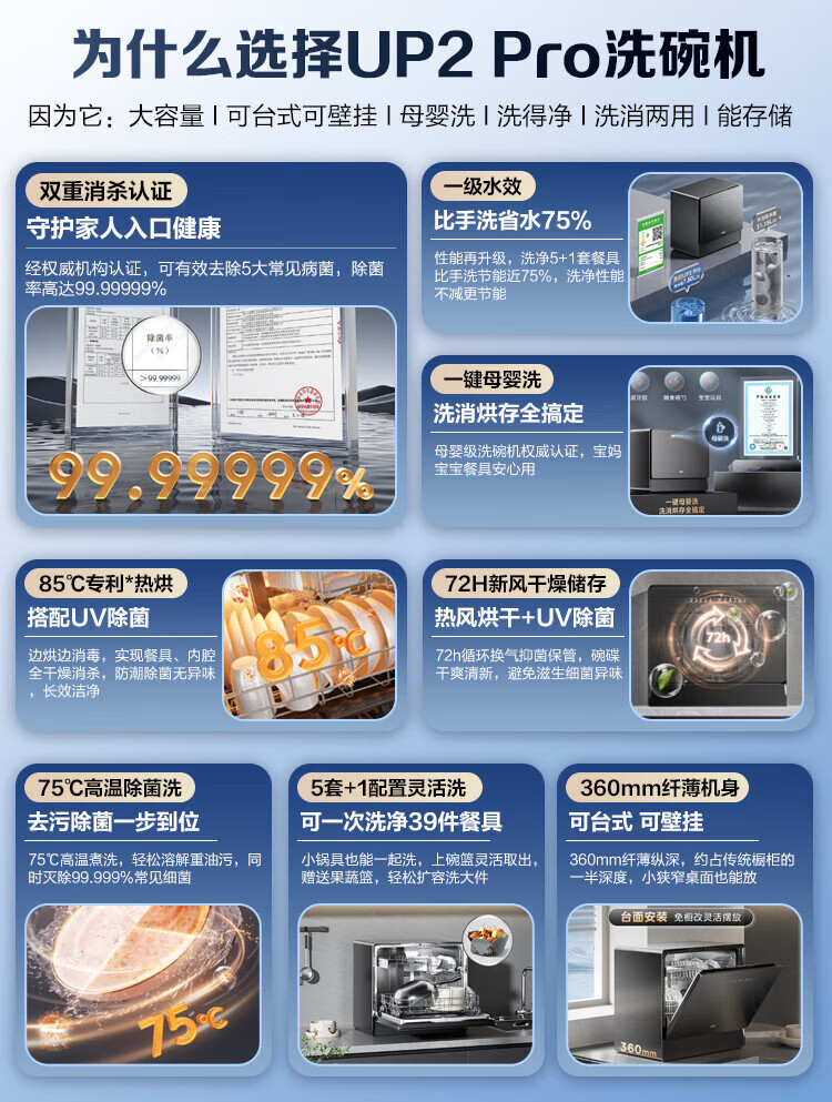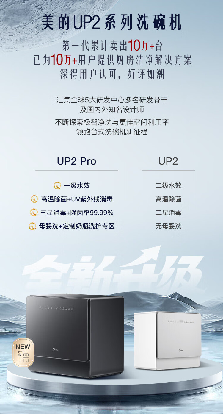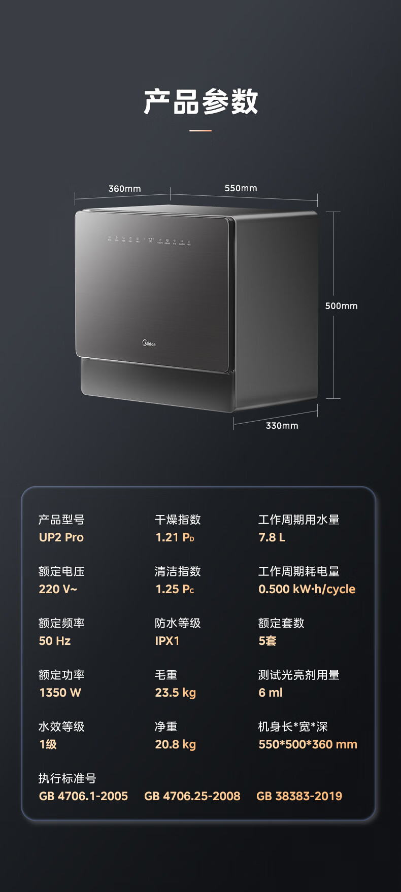 美的(Midea)【UP2 Pro】台式洗碗机5+1套壁挂式嵌入式家用一级水效三星消毒专利母婴洗热风烘干洗烘消存一体机 【国家补贴20%】【六年包修】