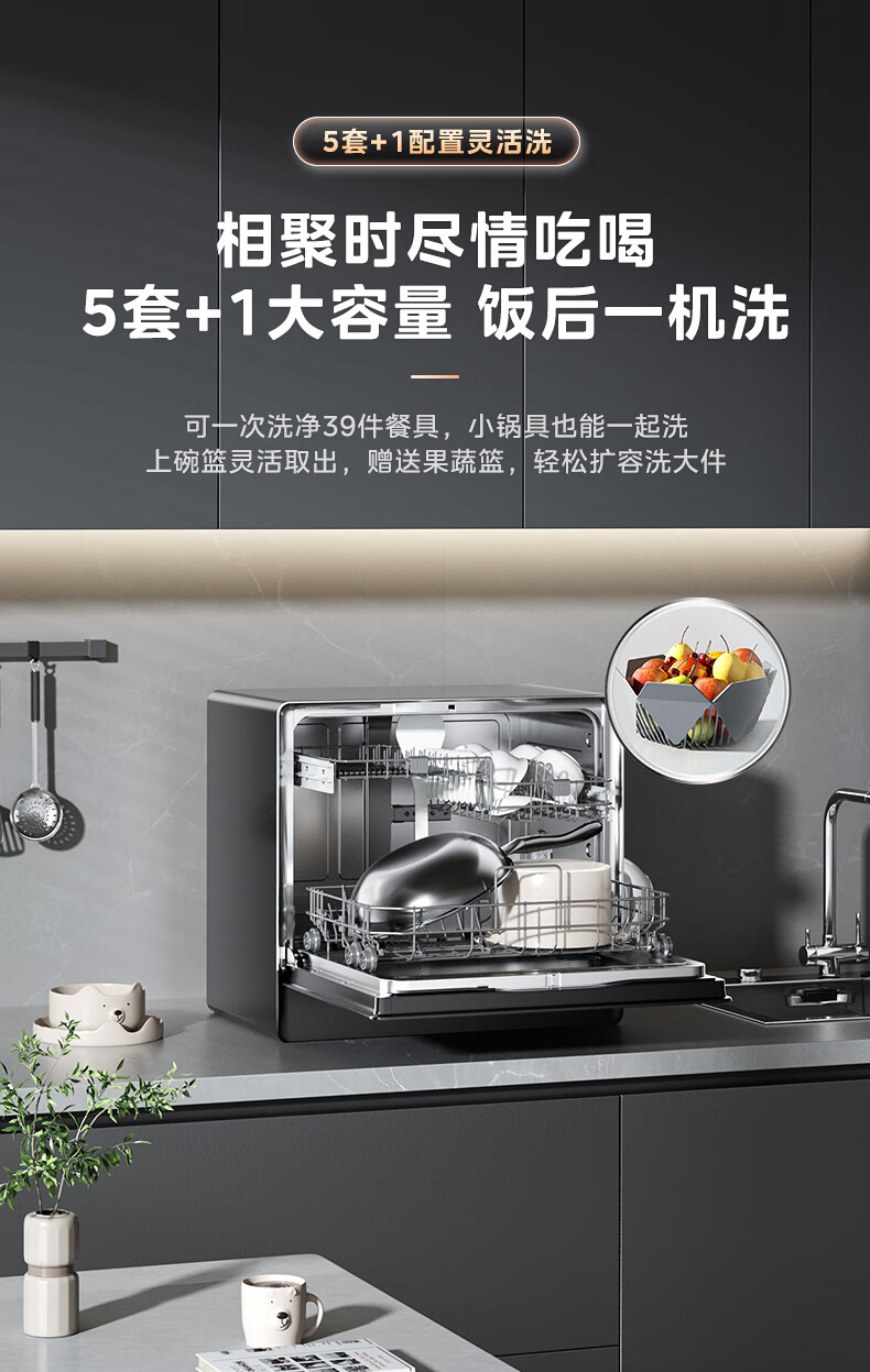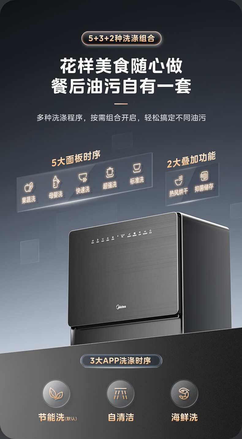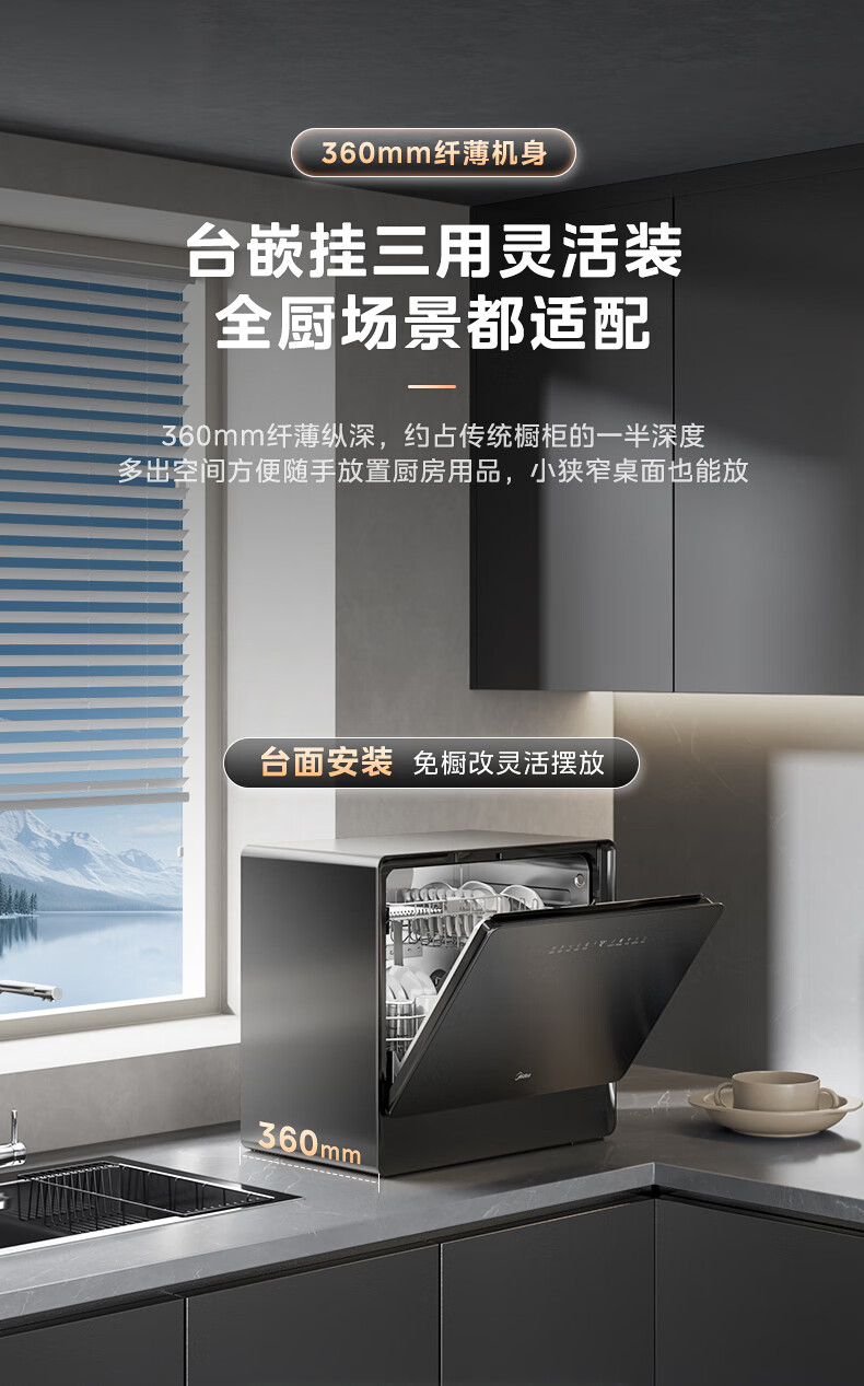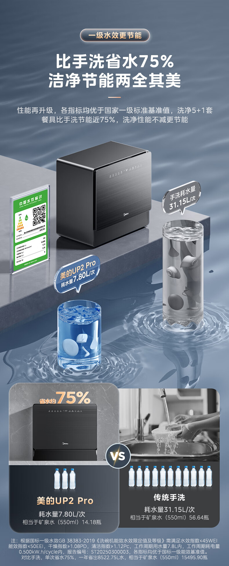 美的(Midea)【UP2 Pro】台式洗碗机5+1套壁挂式嵌入式家用一级水效三星消毒专利母婴洗热风烘干洗烘消存一体机 【国家补贴20%】【六年包修】