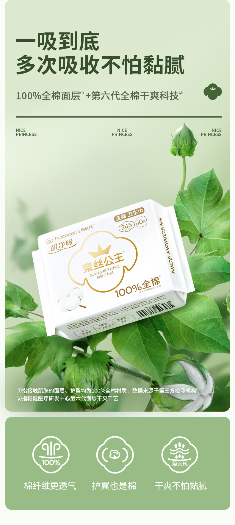 全棉时代【优于新国标】医护级超净吸干爽透气全棉表层卫生巾日夜用组合 超净吸日夜用46片(245*40+420*6) -