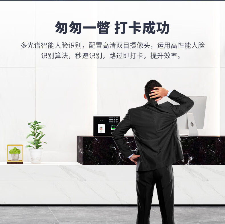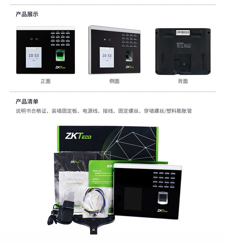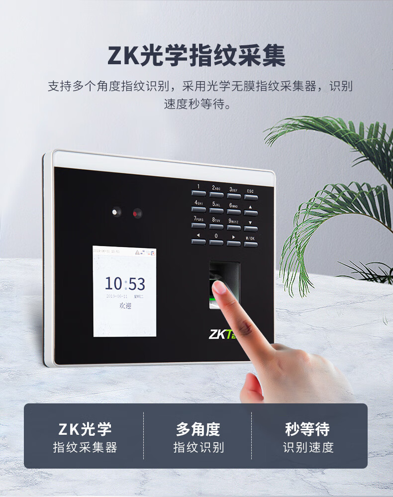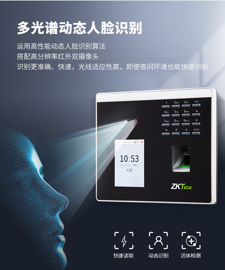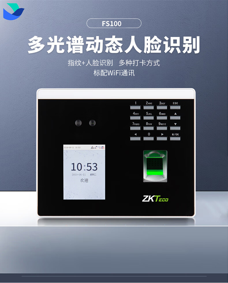 ZKTECO 熵基科技FS100飞书动态人脸+指纹识别考勤机指纹打卡机智能刷脸面部识别混合签到机 FS100 标配