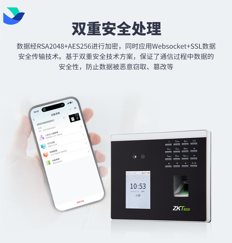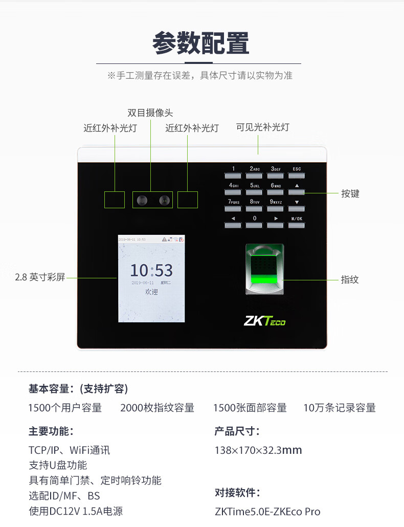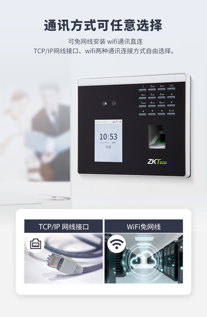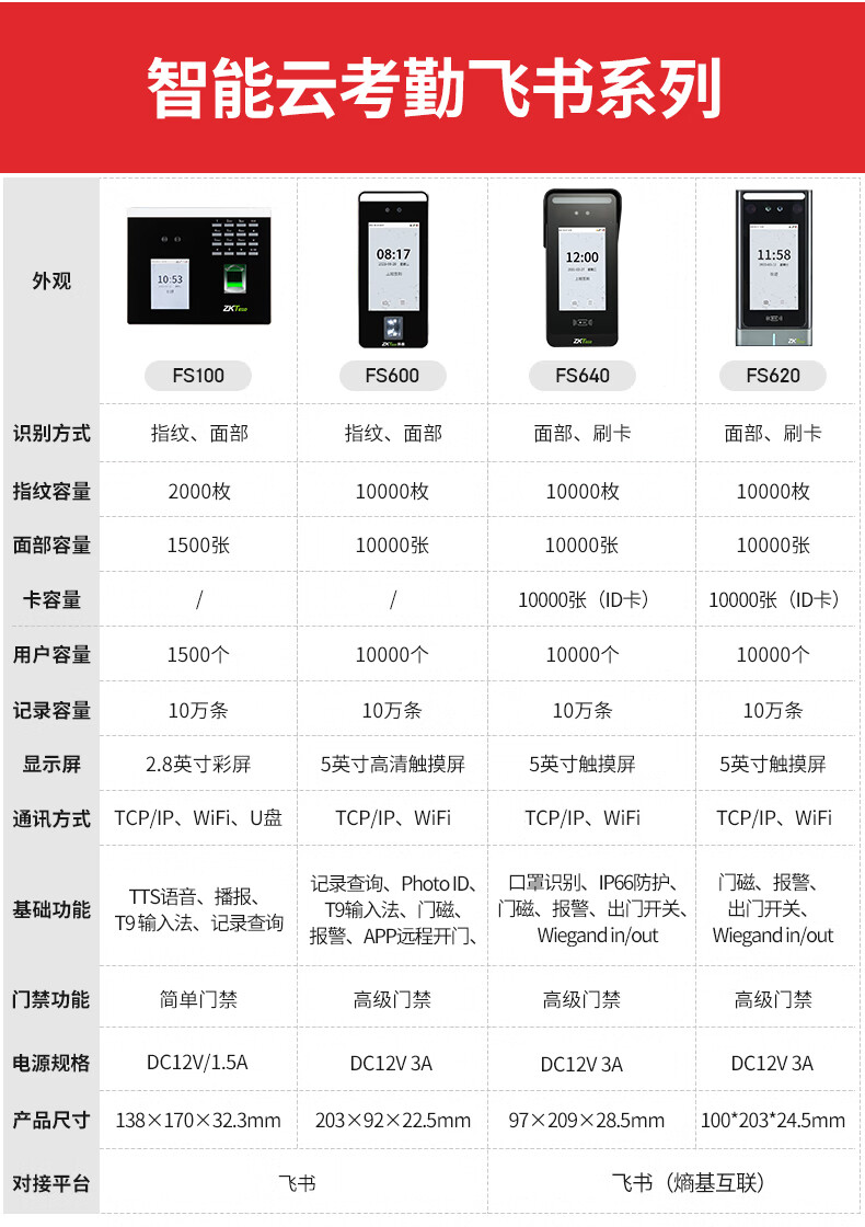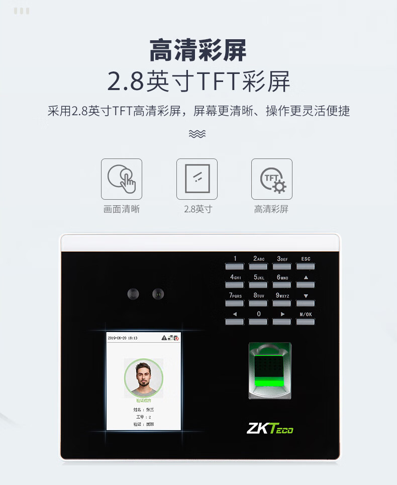 ZKTECO 熵基科技FS100飞书动态人脸+指纹识别考勤机指纹打卡机智能刷脸面部识别混合签到机 FS100 标配