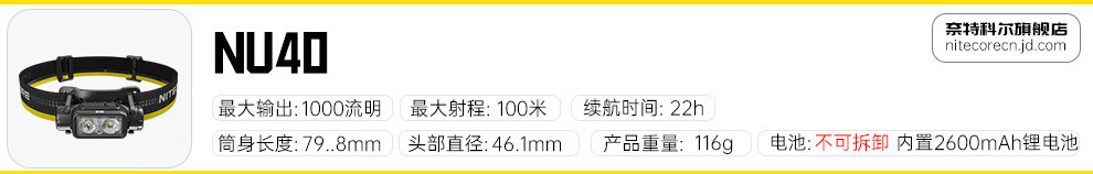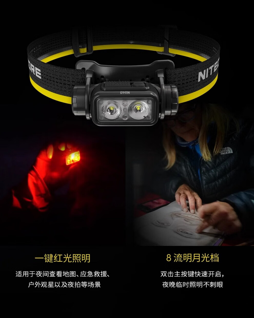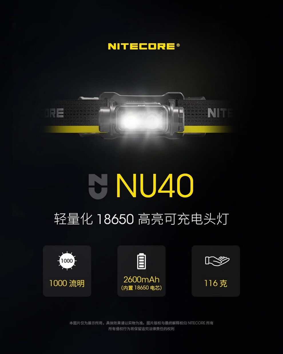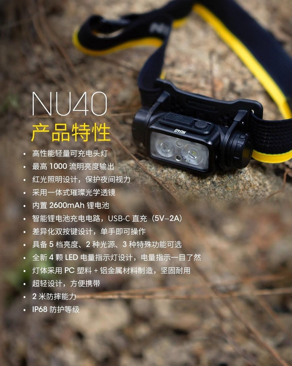 奈特科尔(NITECORE)NU40 头灯防水强光远射超长续航充电户外赶海钓鱼夜钓越野跑LED灯 NU40头灯(内置锂电)质保2年