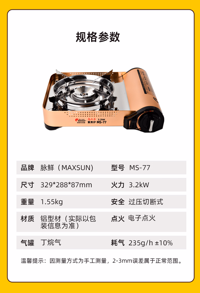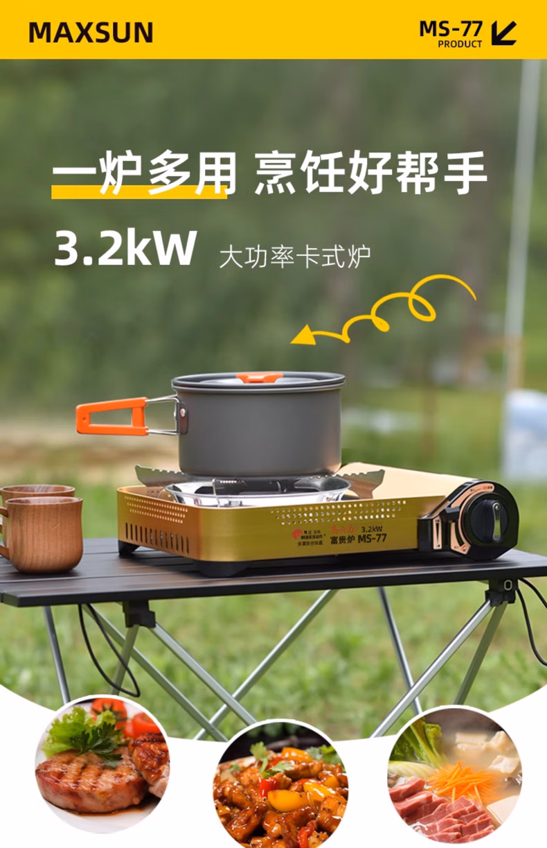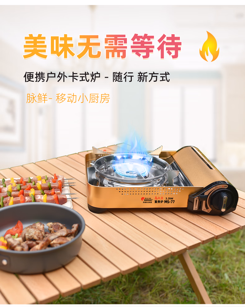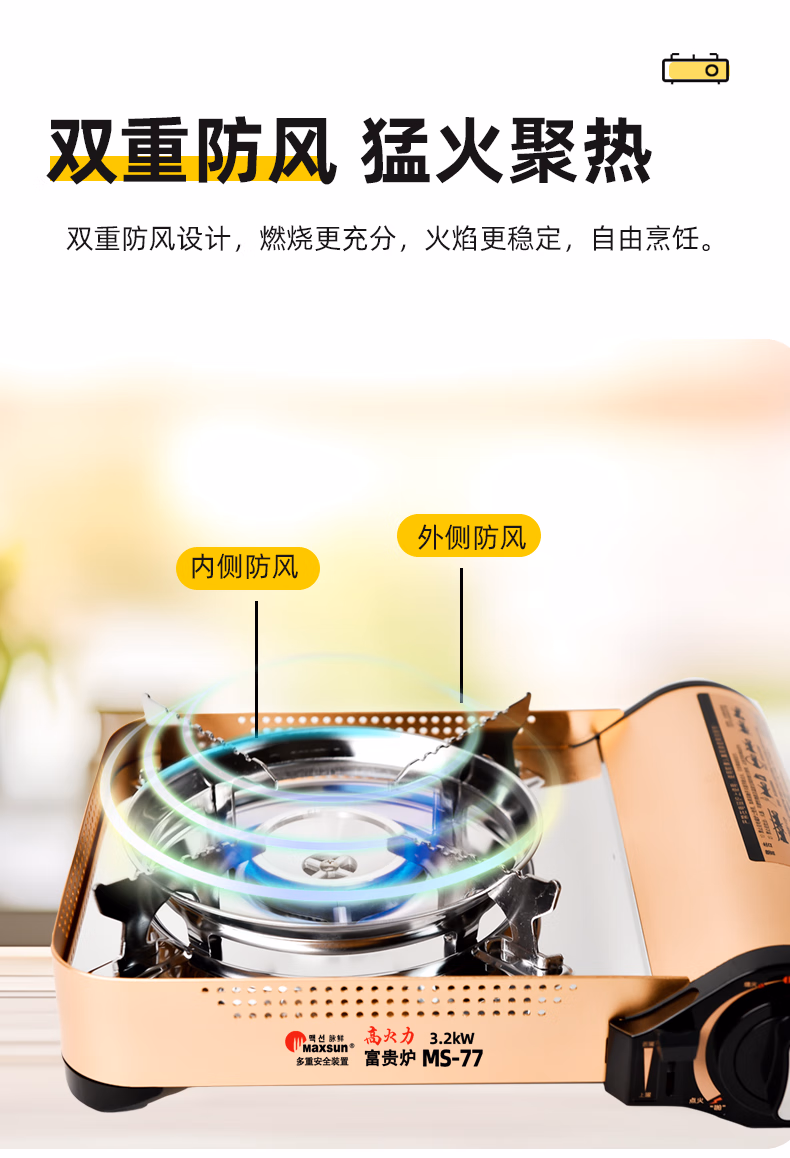 脉鲜卡式炉ms77 土豪金富贵防风炉 高端野餐 安全便携户外露营炉具 富贵荣华卡式炉+脉鲜102烤盘Φ32
