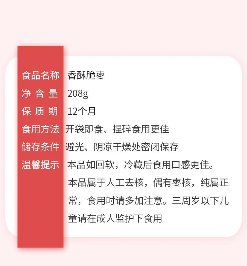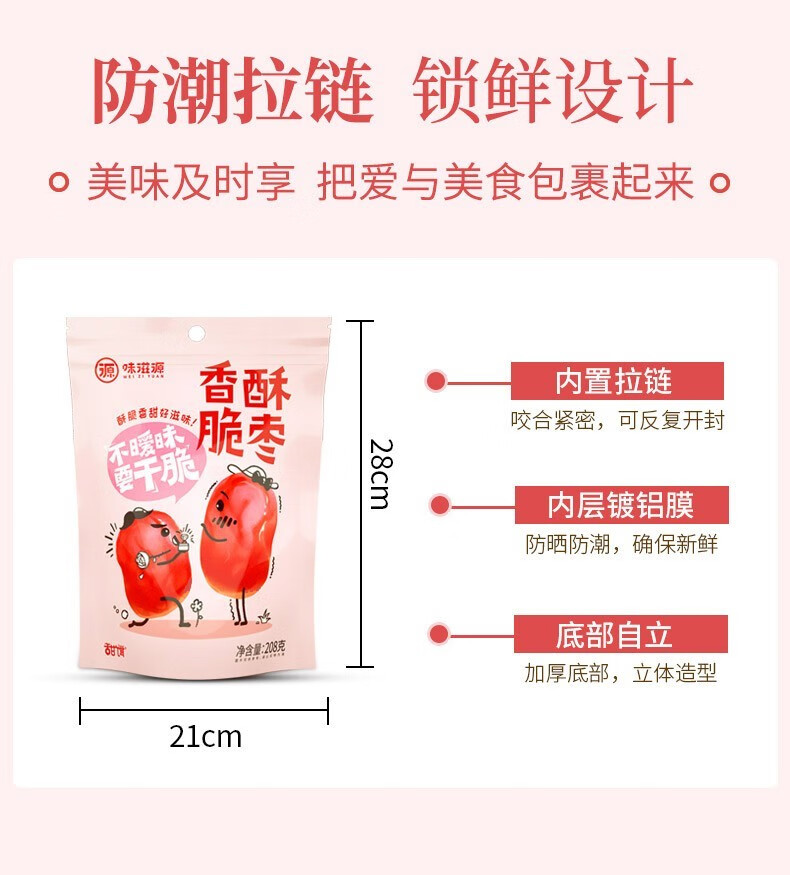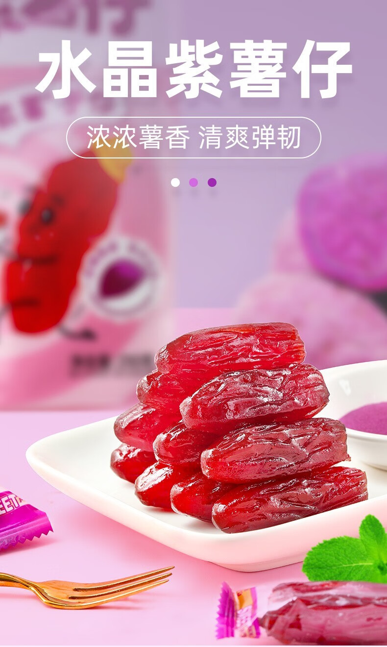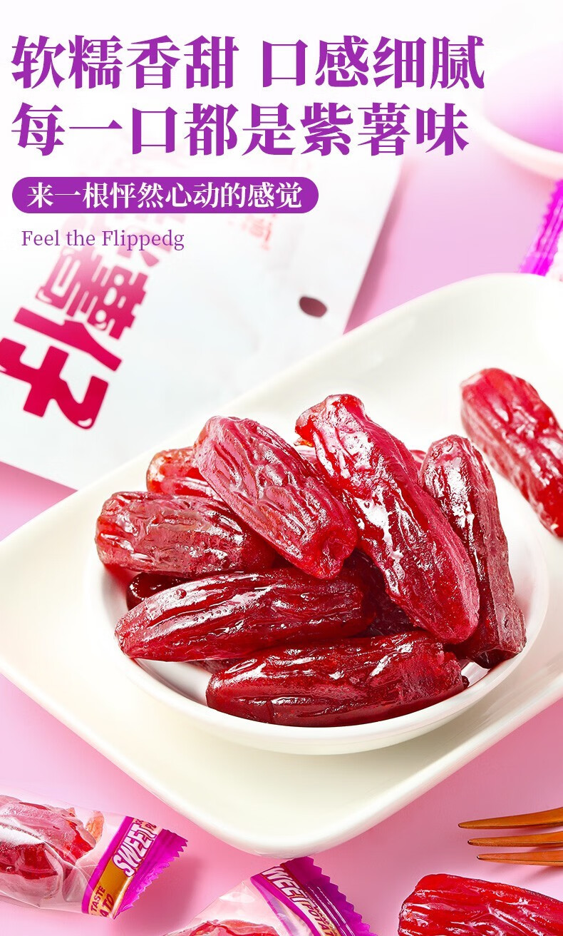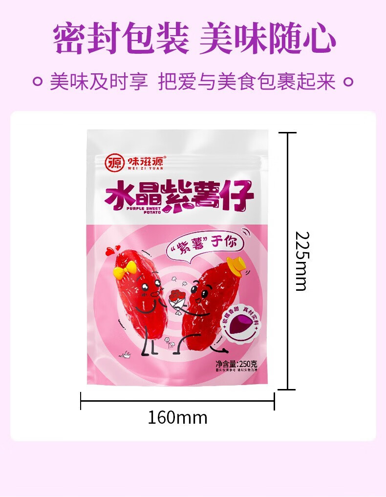 味滋源 水晶紫薯仔袋装红薯干 软糯地瓜番薯干网红休闲零食 香酥脆枣208g/袋 208g 2件