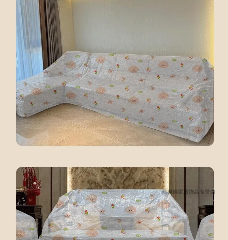 DEATKN德国无纺布沙发防尘罩全盖全包家用一次性装修散味透气家具保护罩 淡雅白【基础款】适用双人沙发 拍一发一