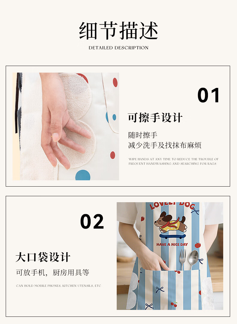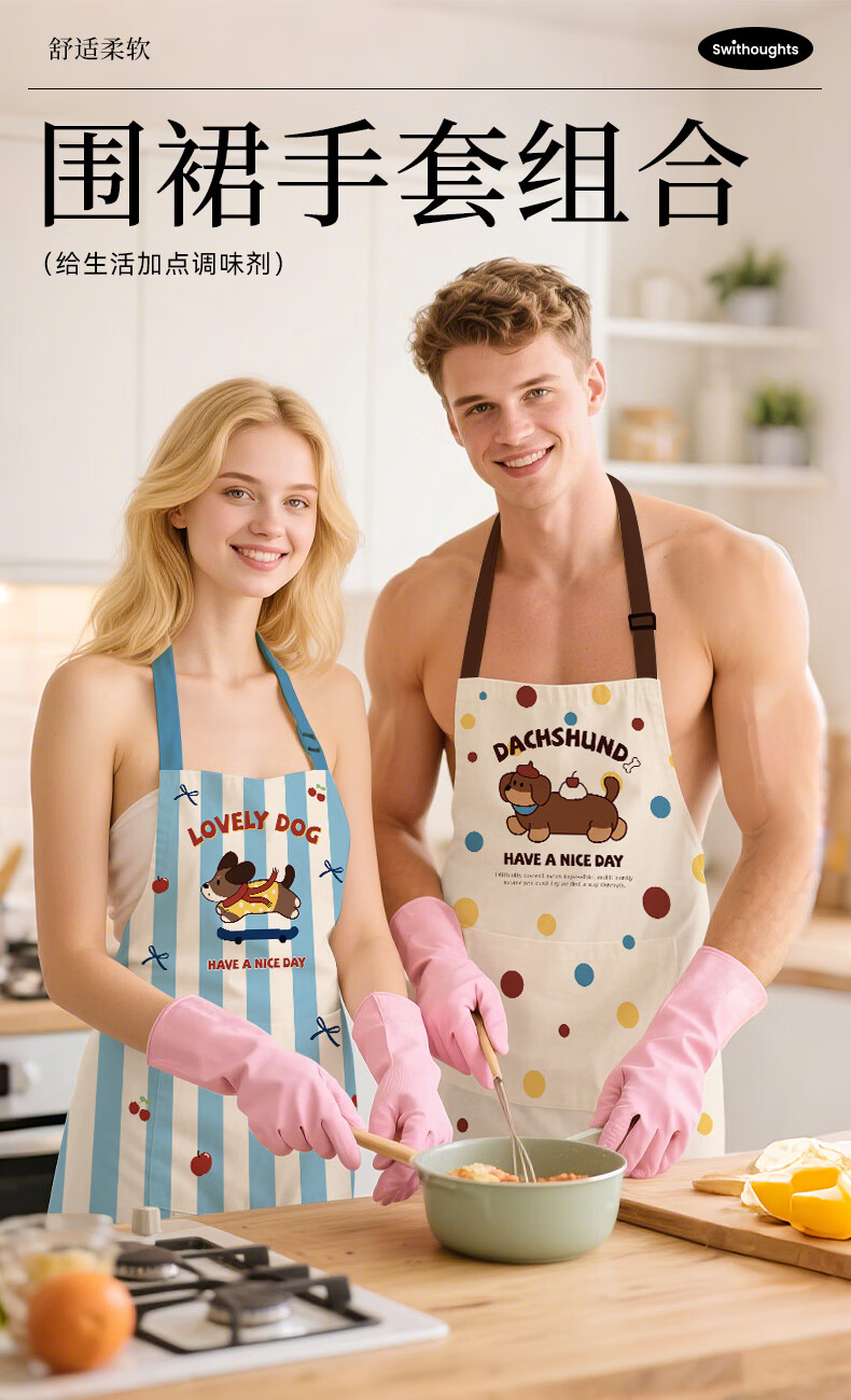 特瑞洁【热门商品】围裙家用厨房防油污防溅水耐磨耐脏罩衣家务餐厅手套