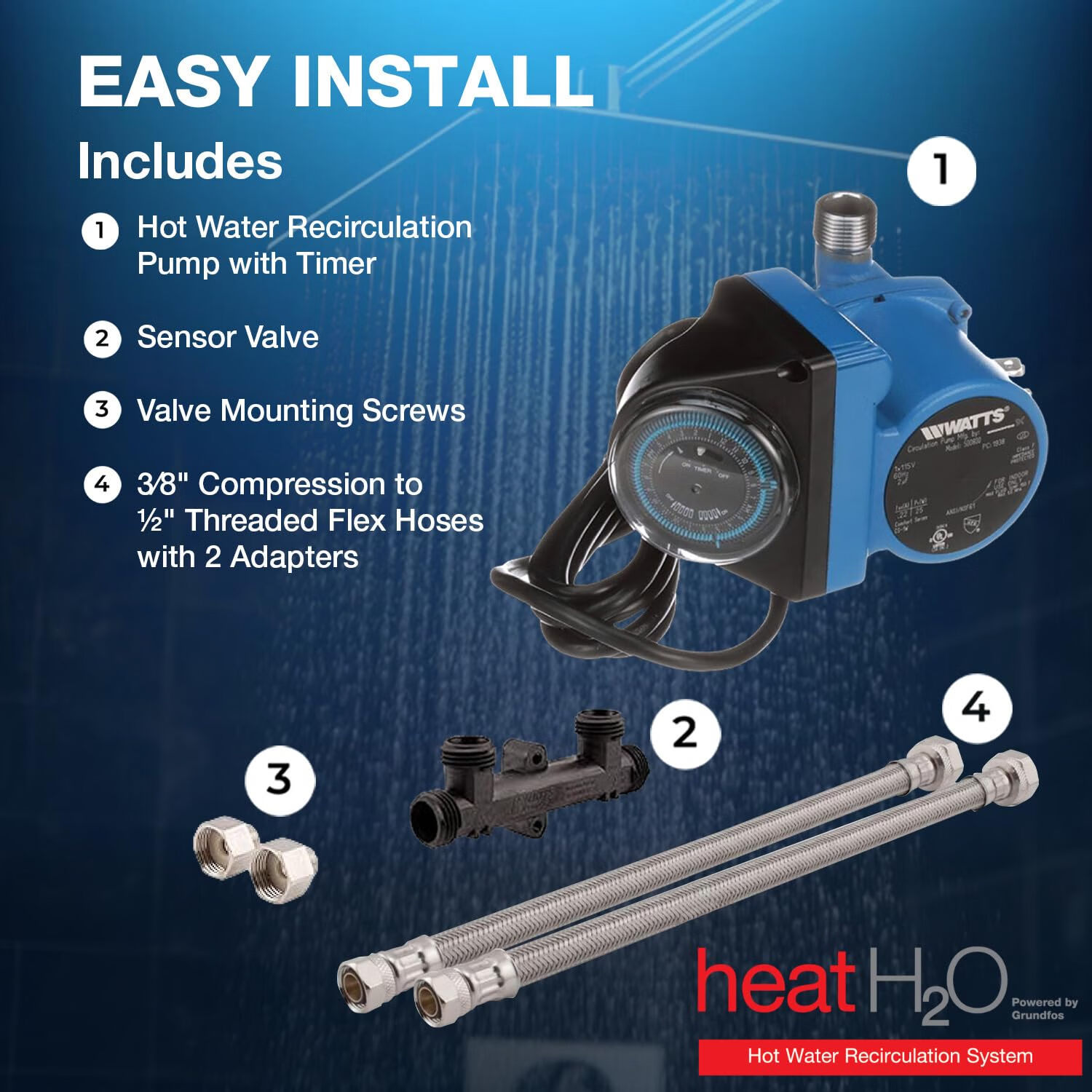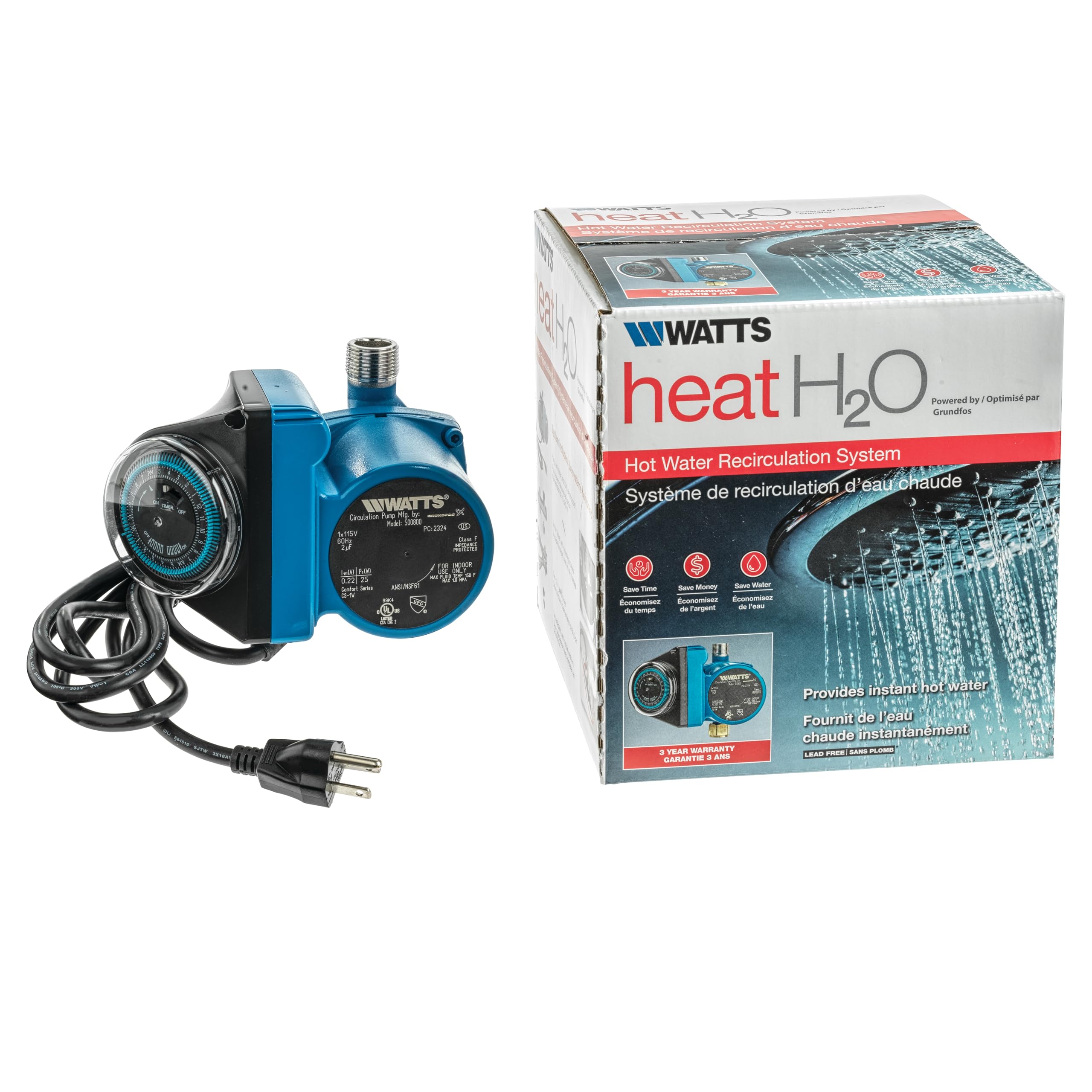 Watts Premier 热水循环系统 即热省水 定时安装 需要变压器